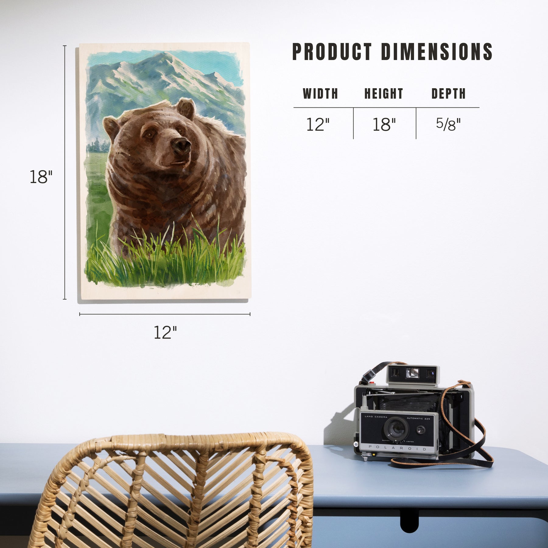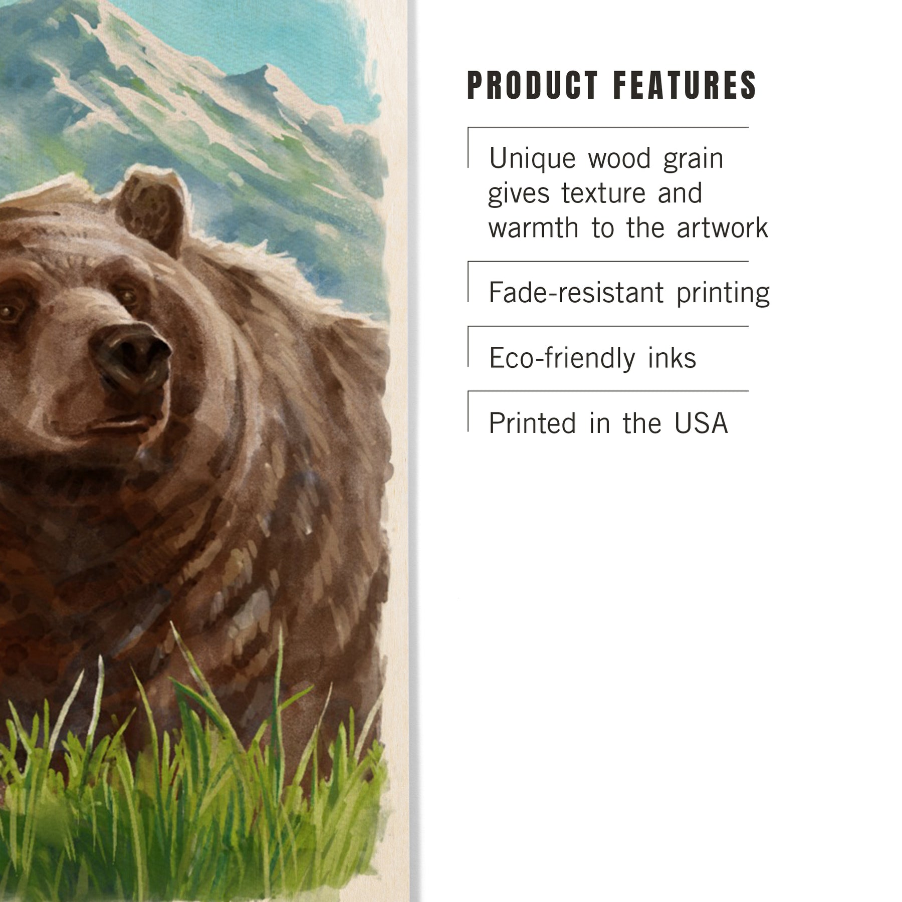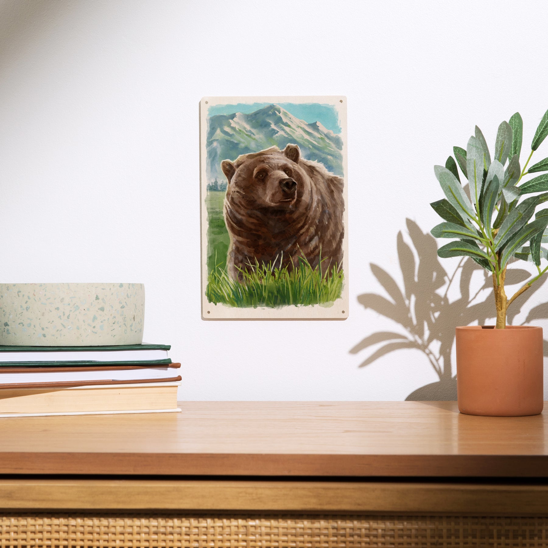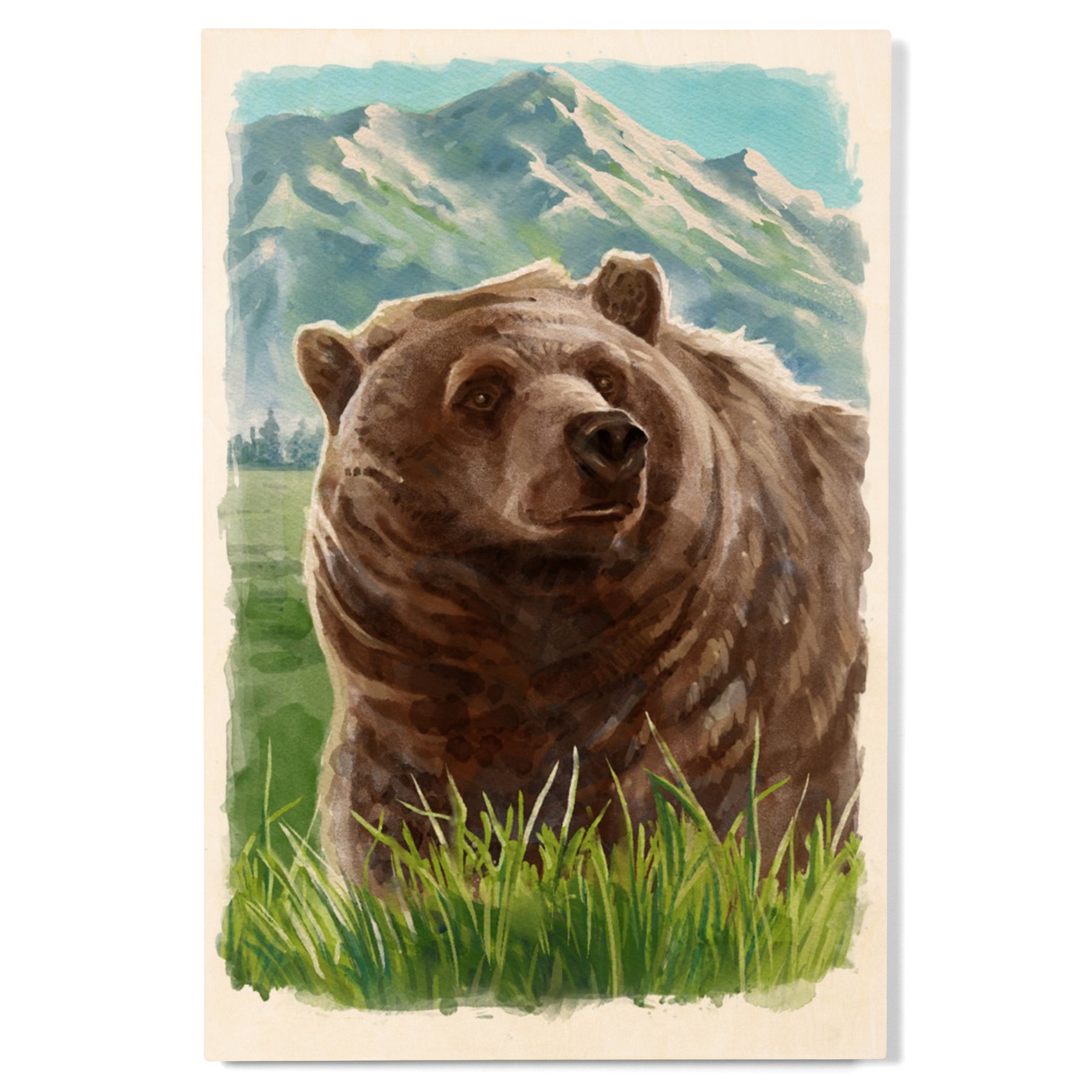Watercolor Study, Grizzly Bear with Mountain, Wood Signs and Postcards Wood Lantern Press