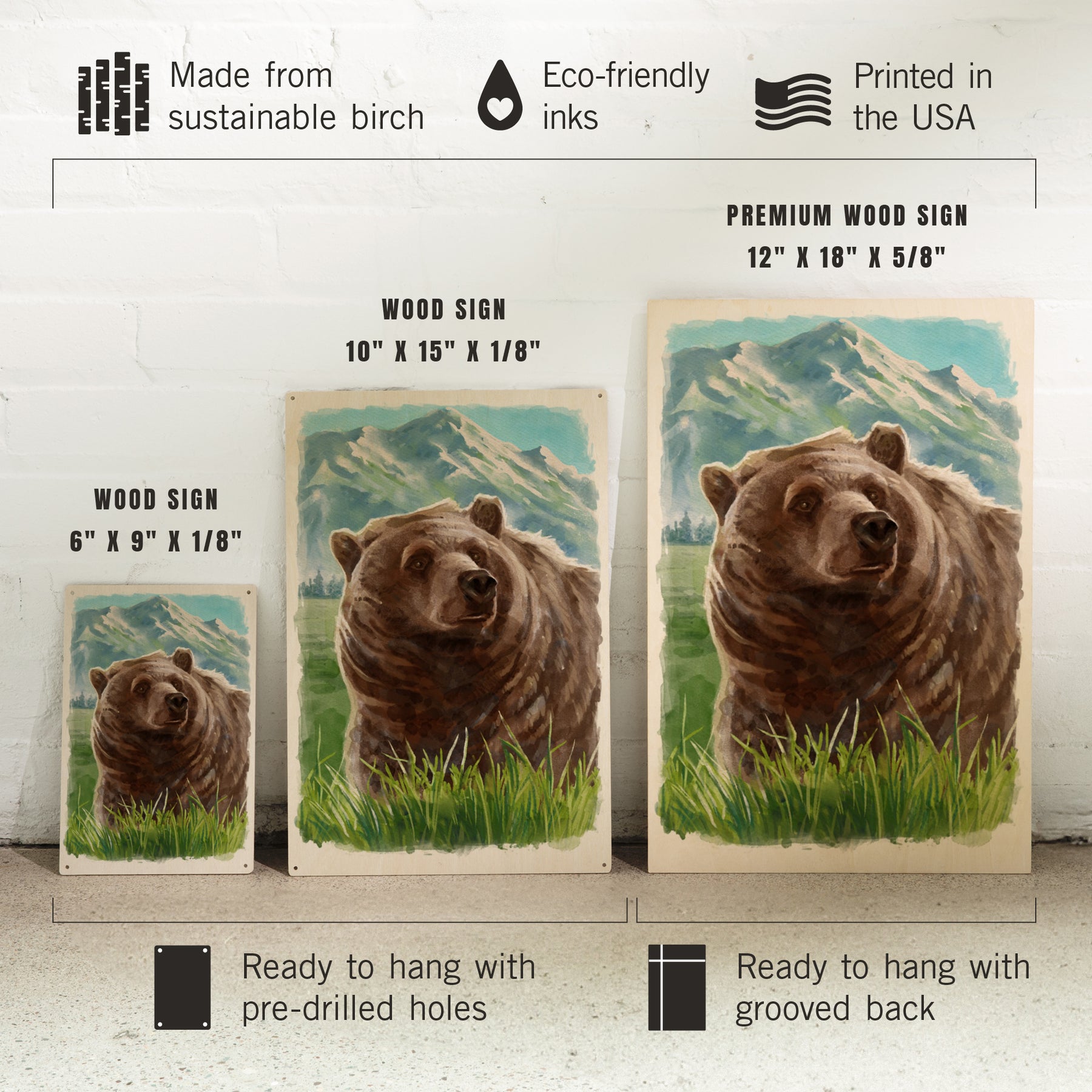 Watercolor Study, Grizzly Bear with Mountain, Wood Signs and Postcards