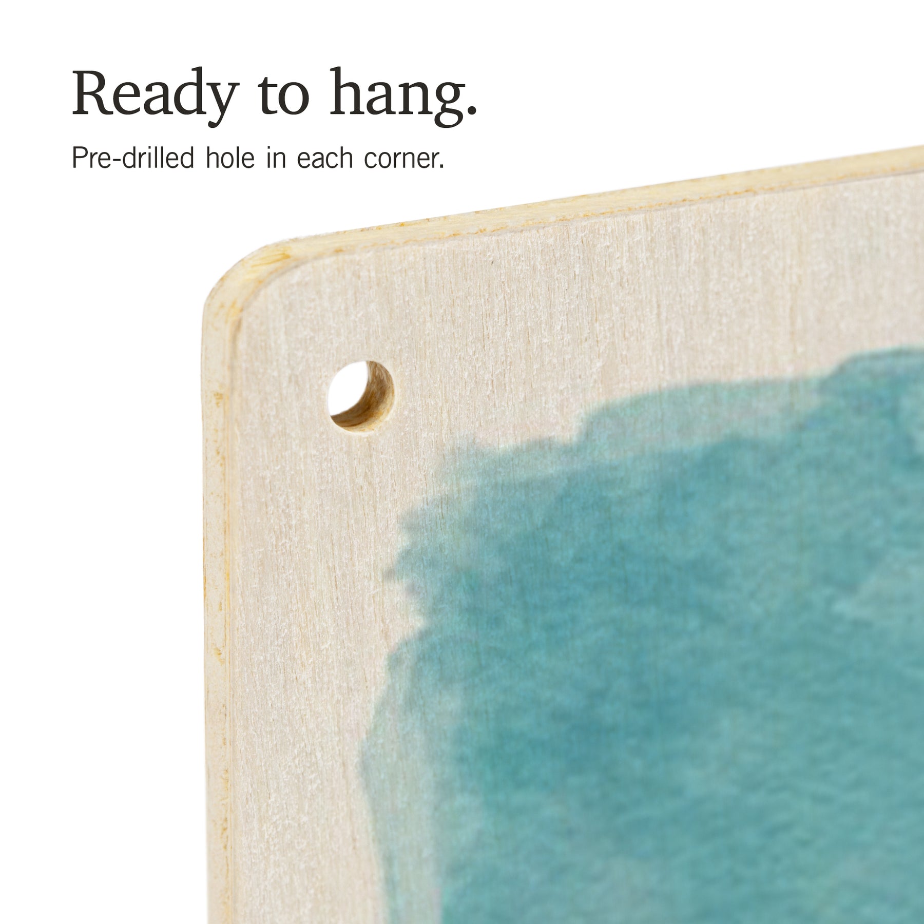 • Hole in each corner, ready to hang