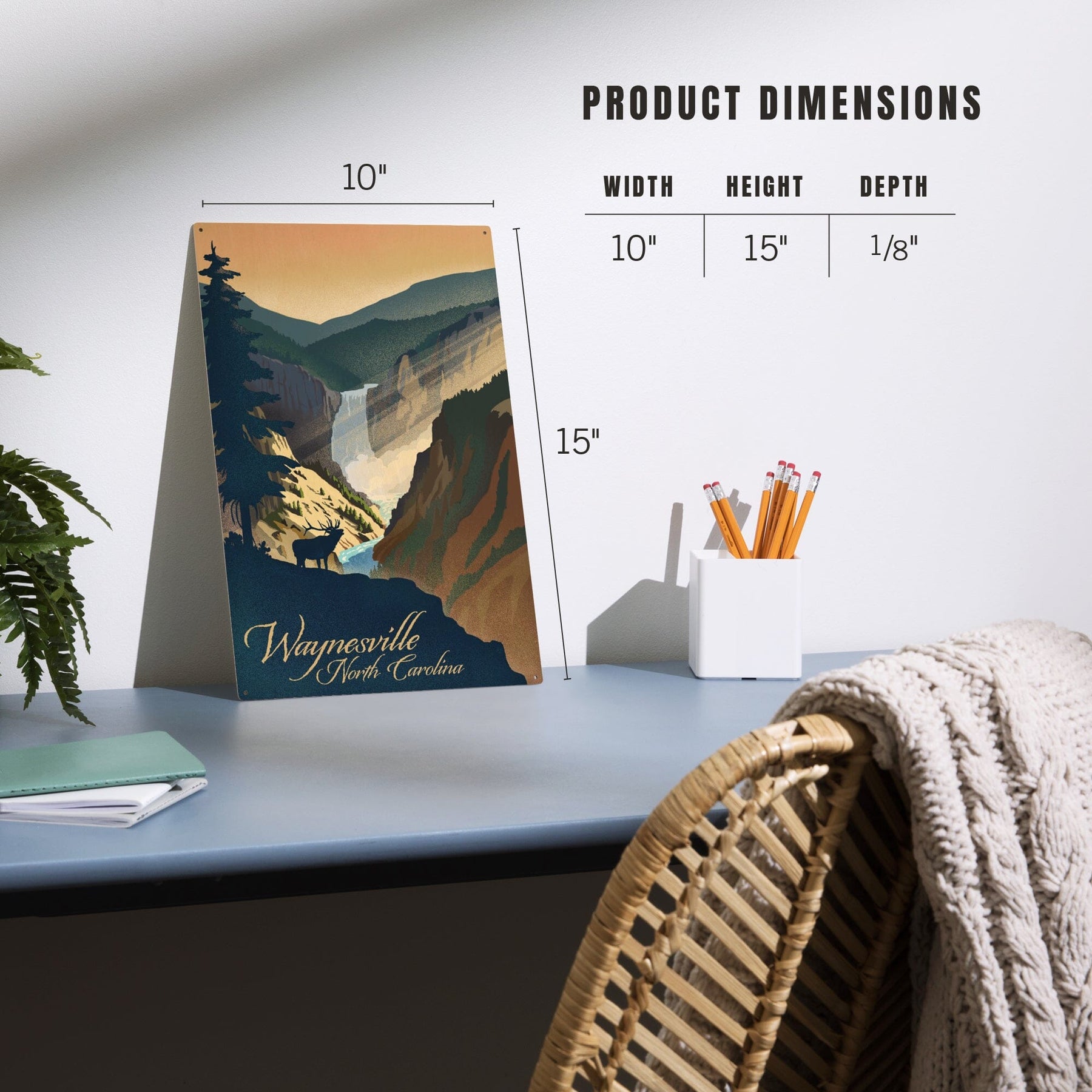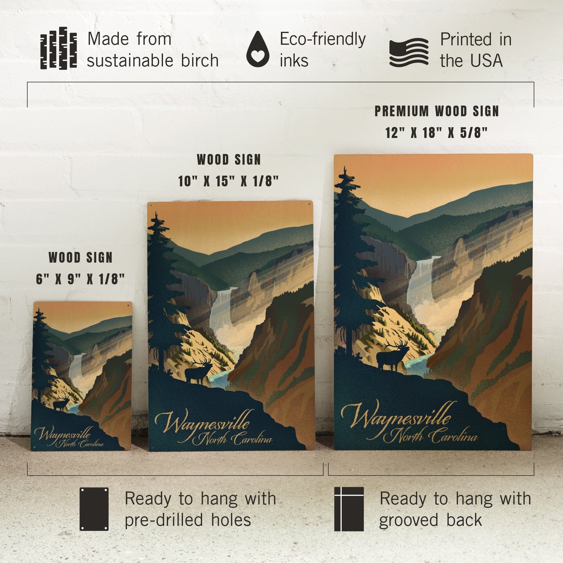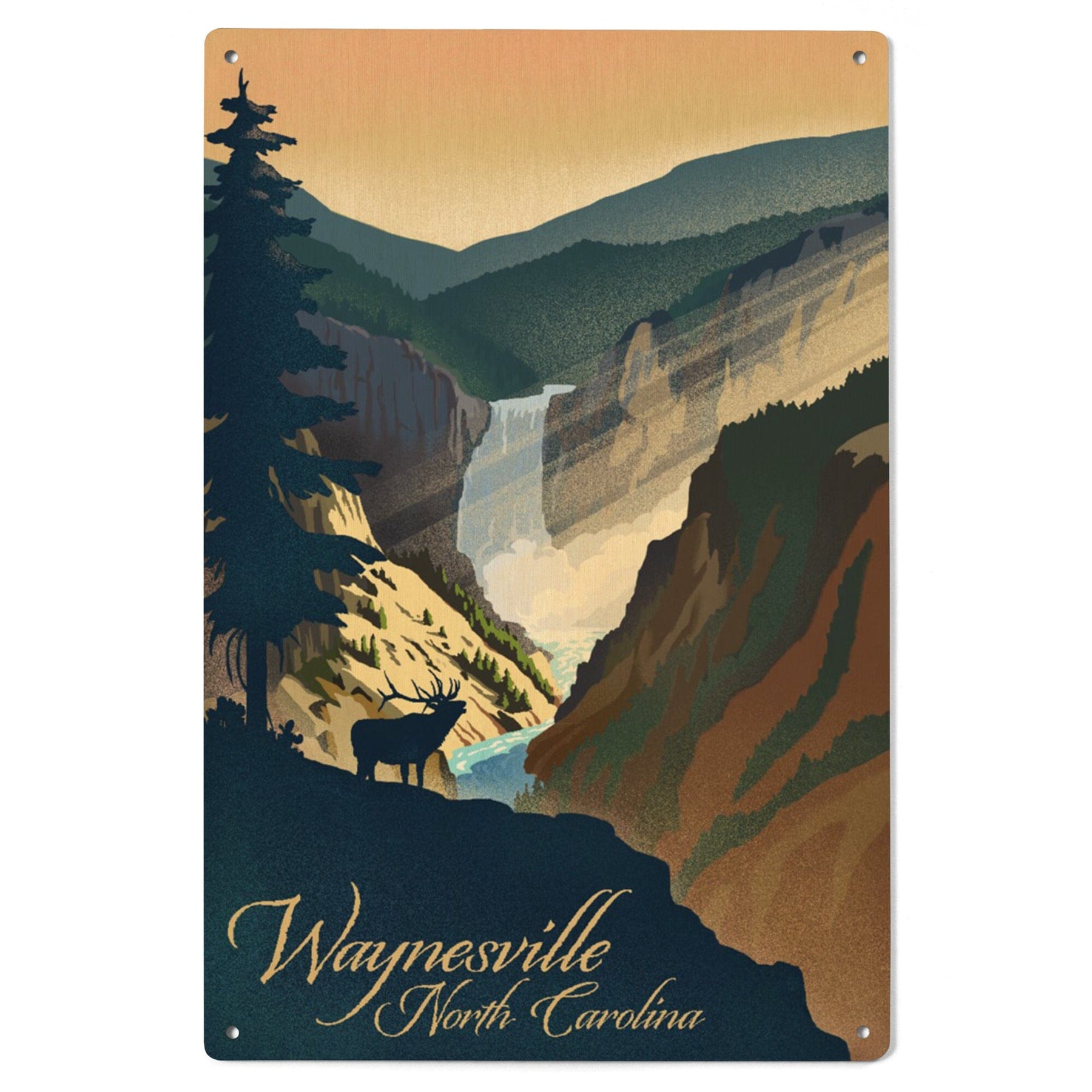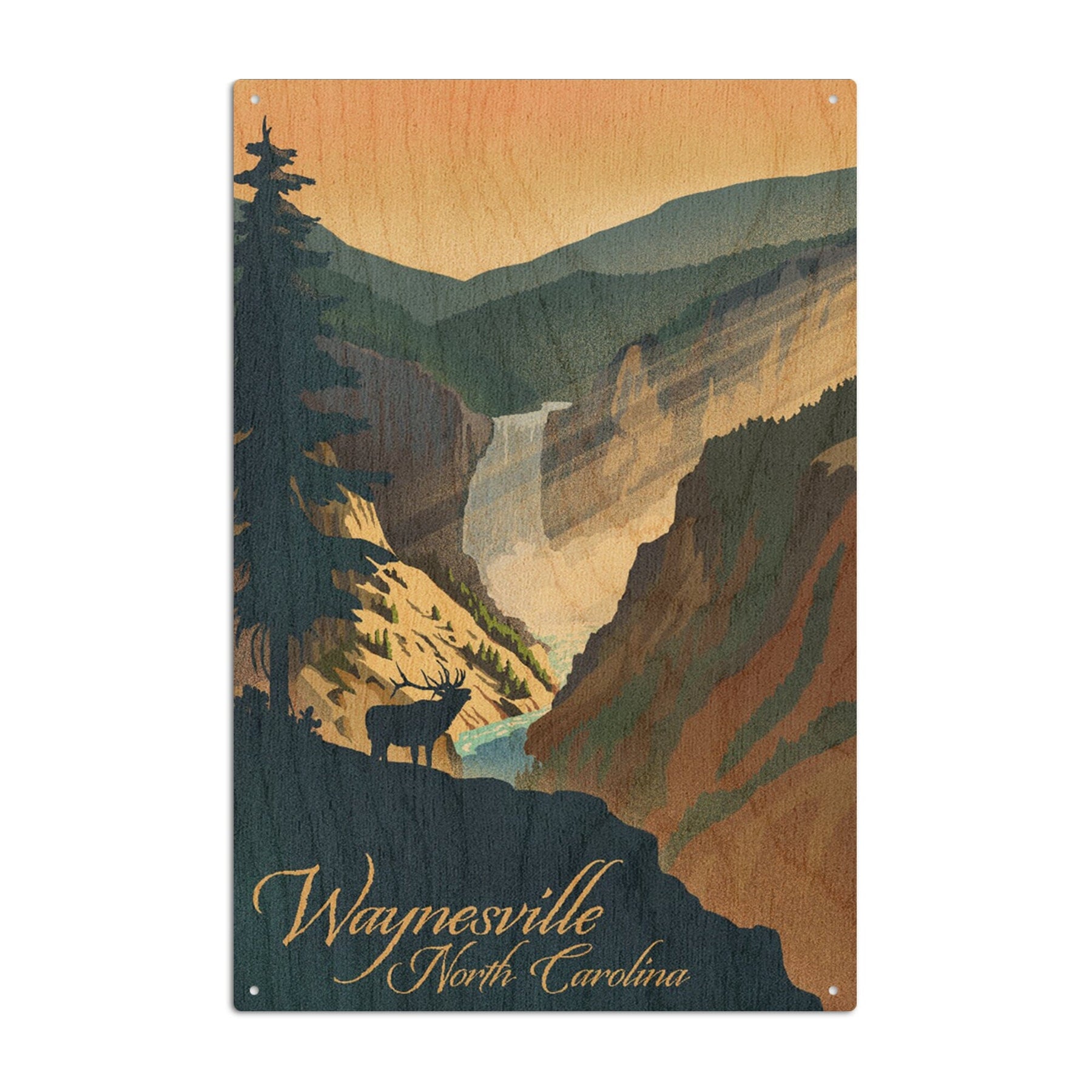 Waynesville, North Carolina, Elk & Falls, Lithograph, Lantern Press Artwork, Wood Signs and Postcards