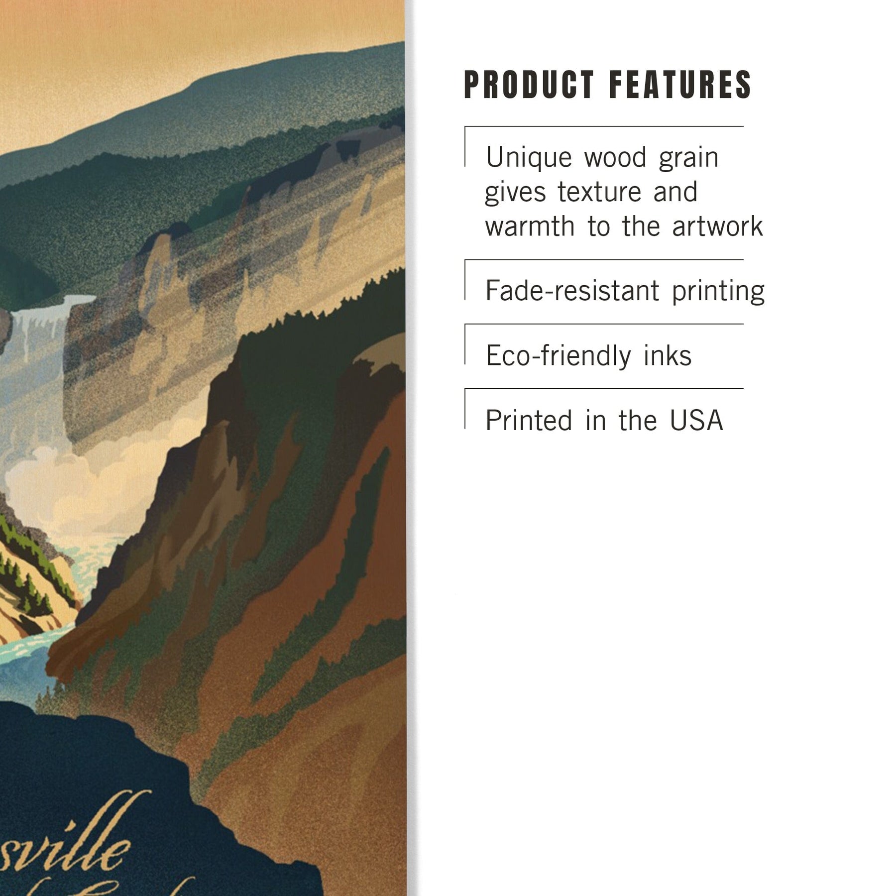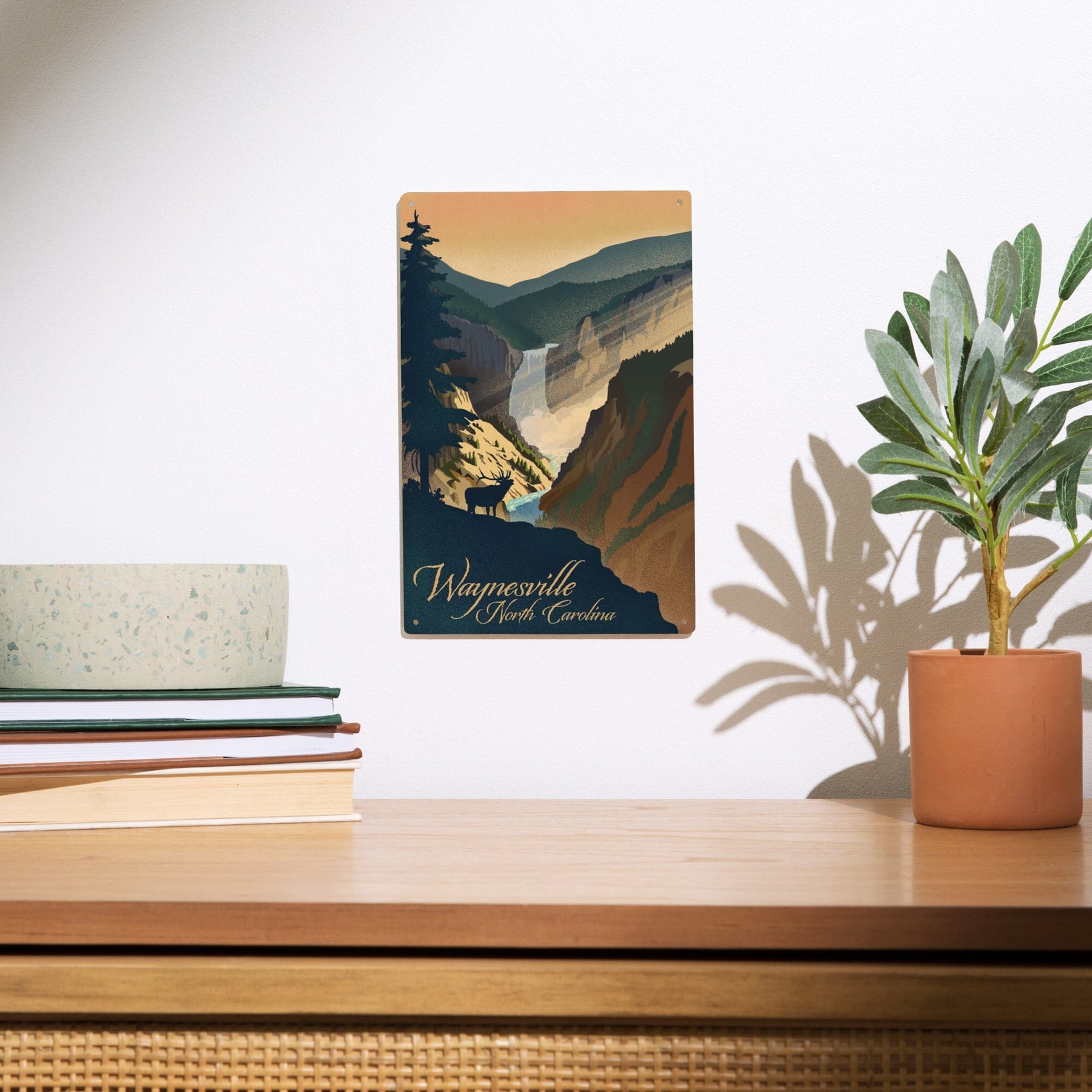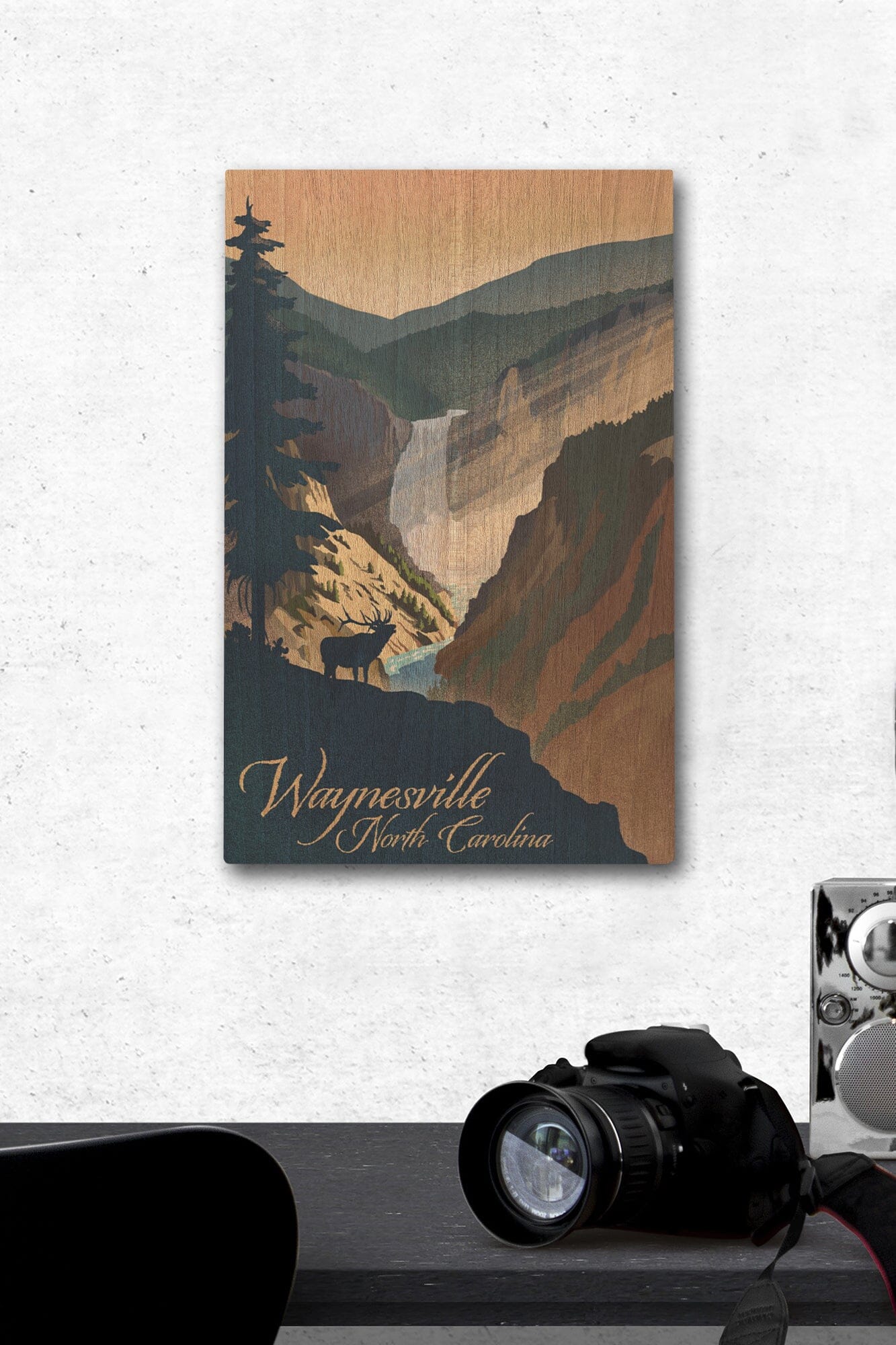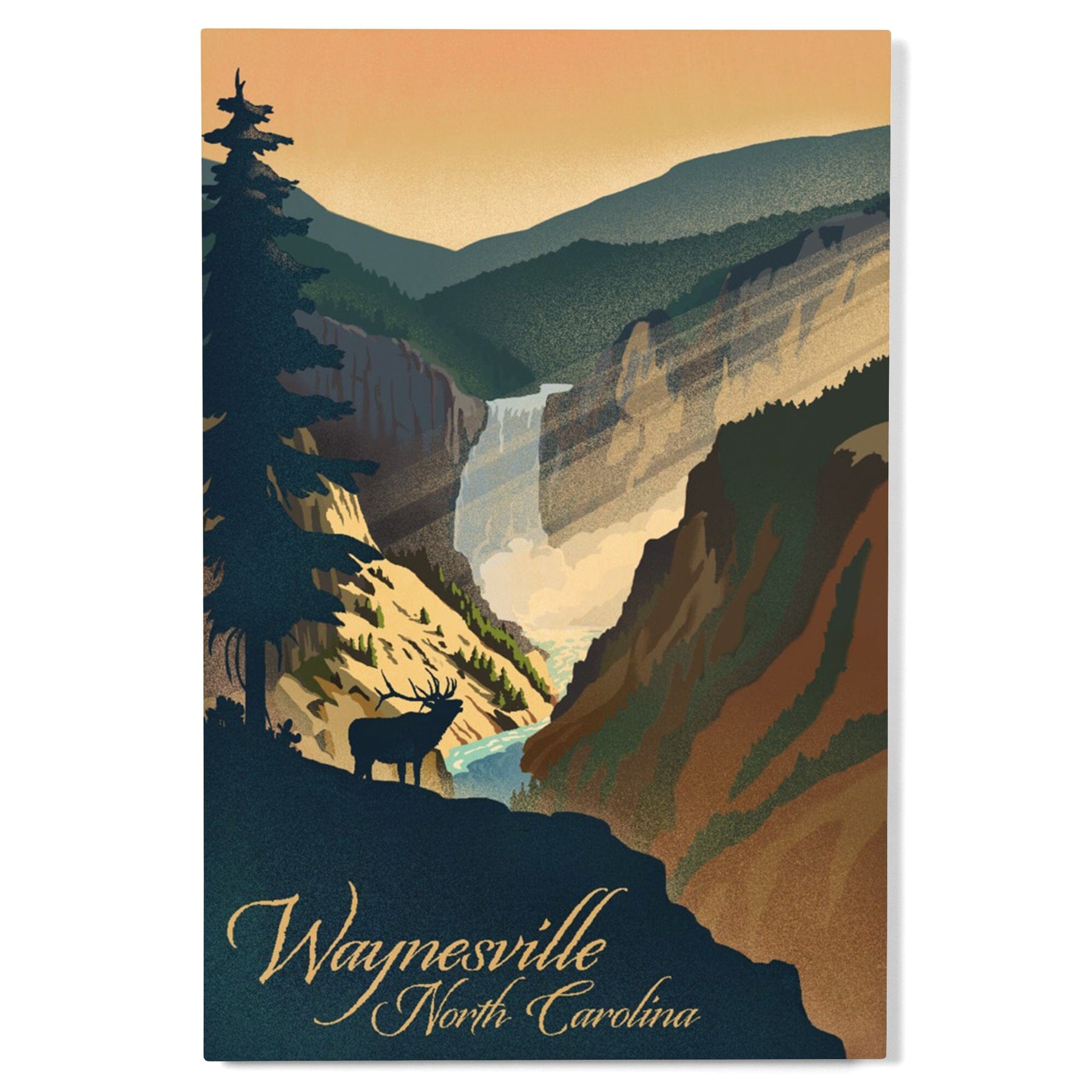 Waynesville, North Carolina, Elk & Falls, Lithograph, Lantern Press Artwork, Wood Signs and Postcards Wood Lantern Press