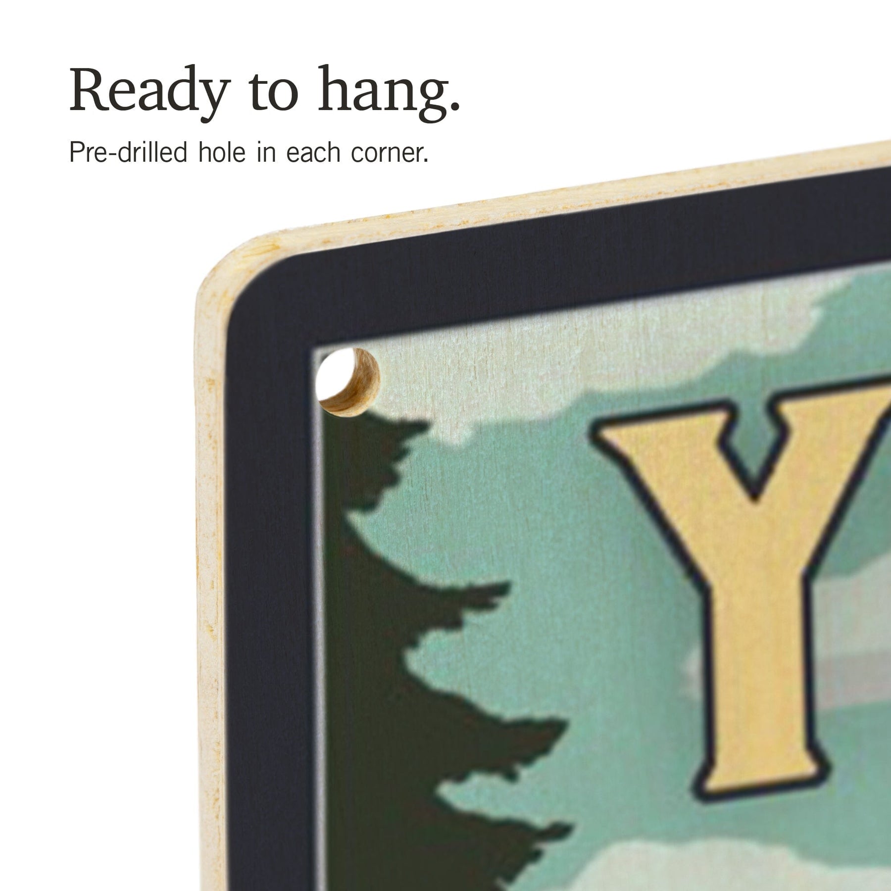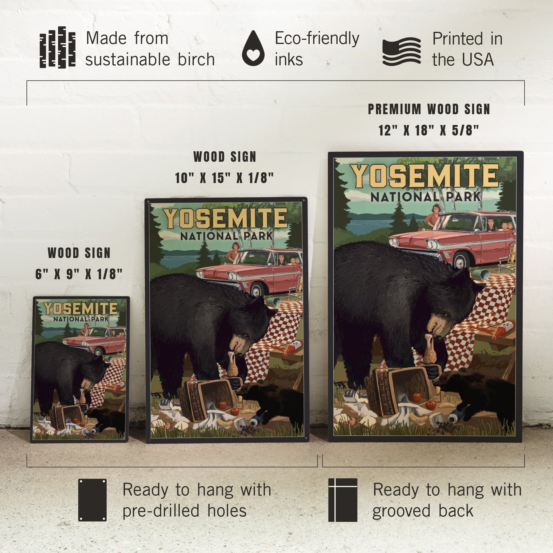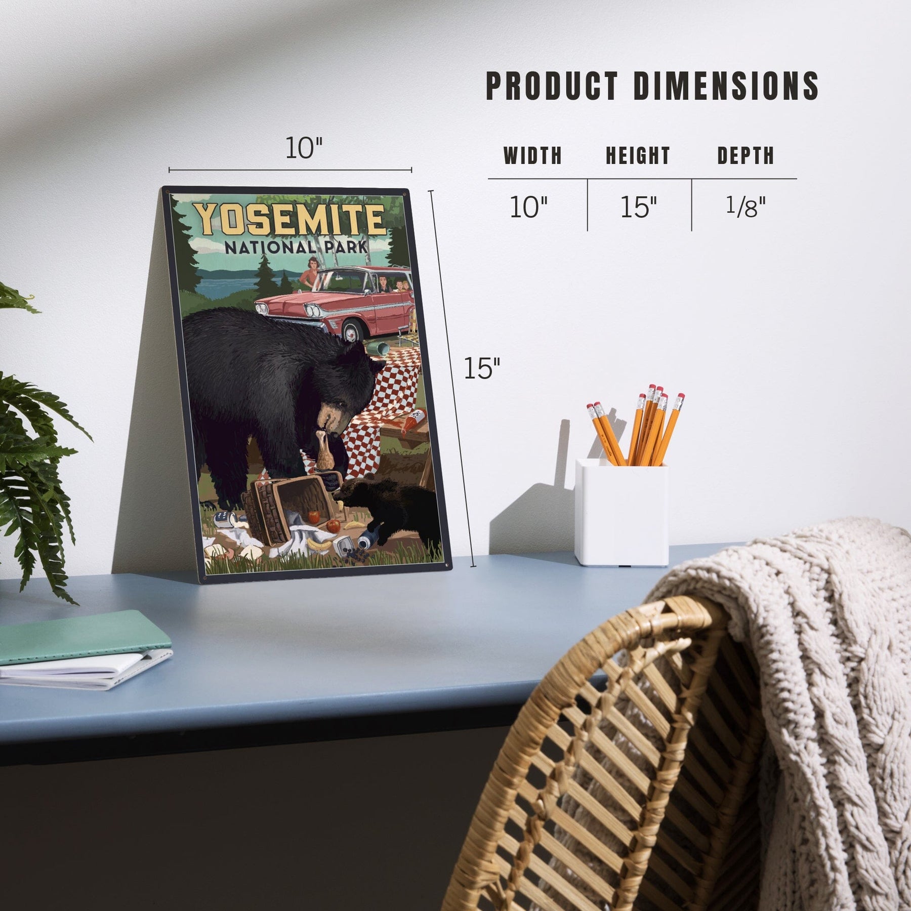 Yosemite National Park, California, Bear and Picnic Scene, Wood Signs and Postcards Wood Lantern Press
