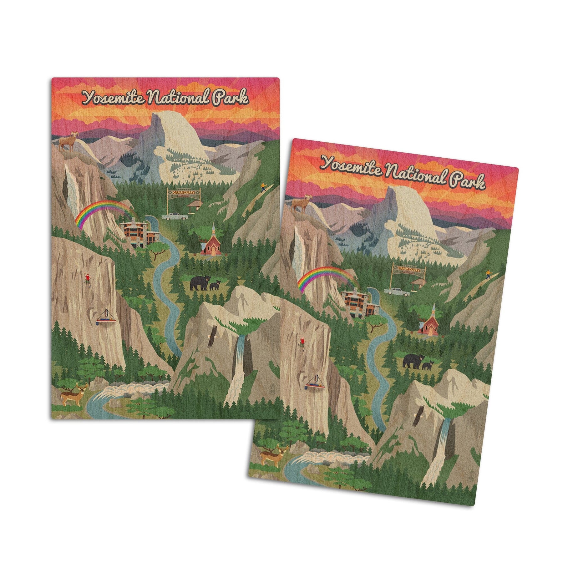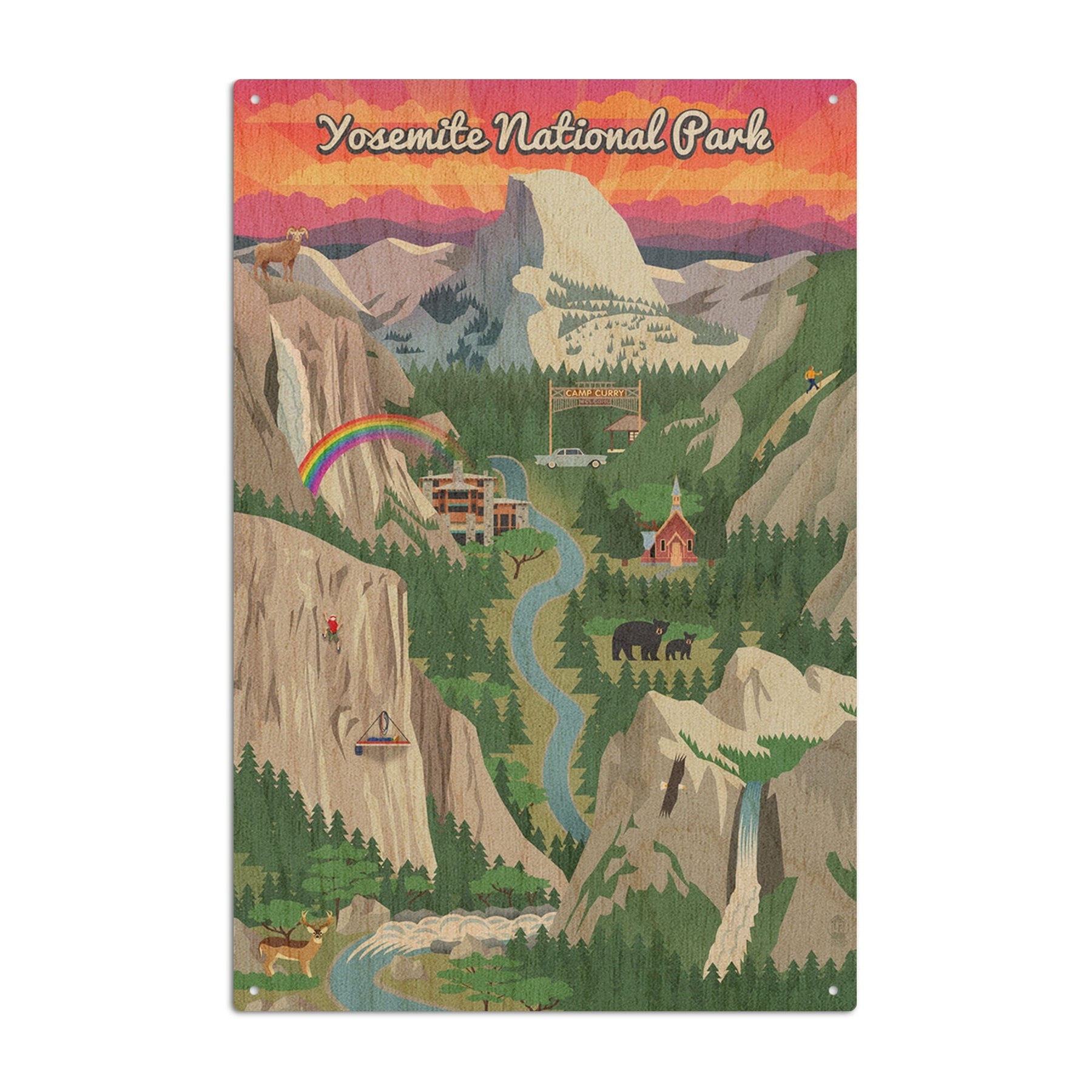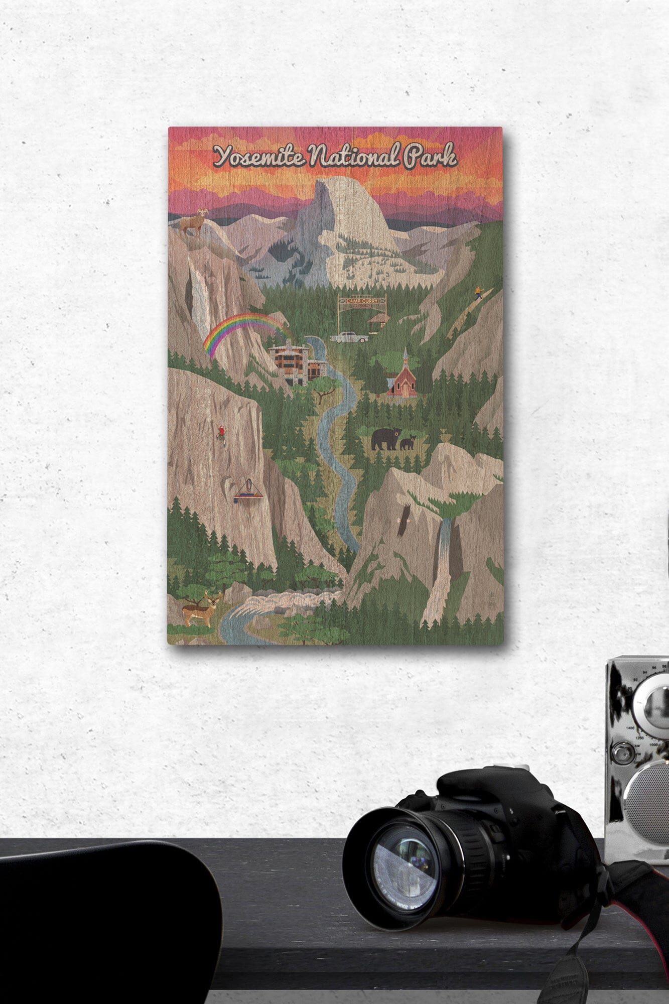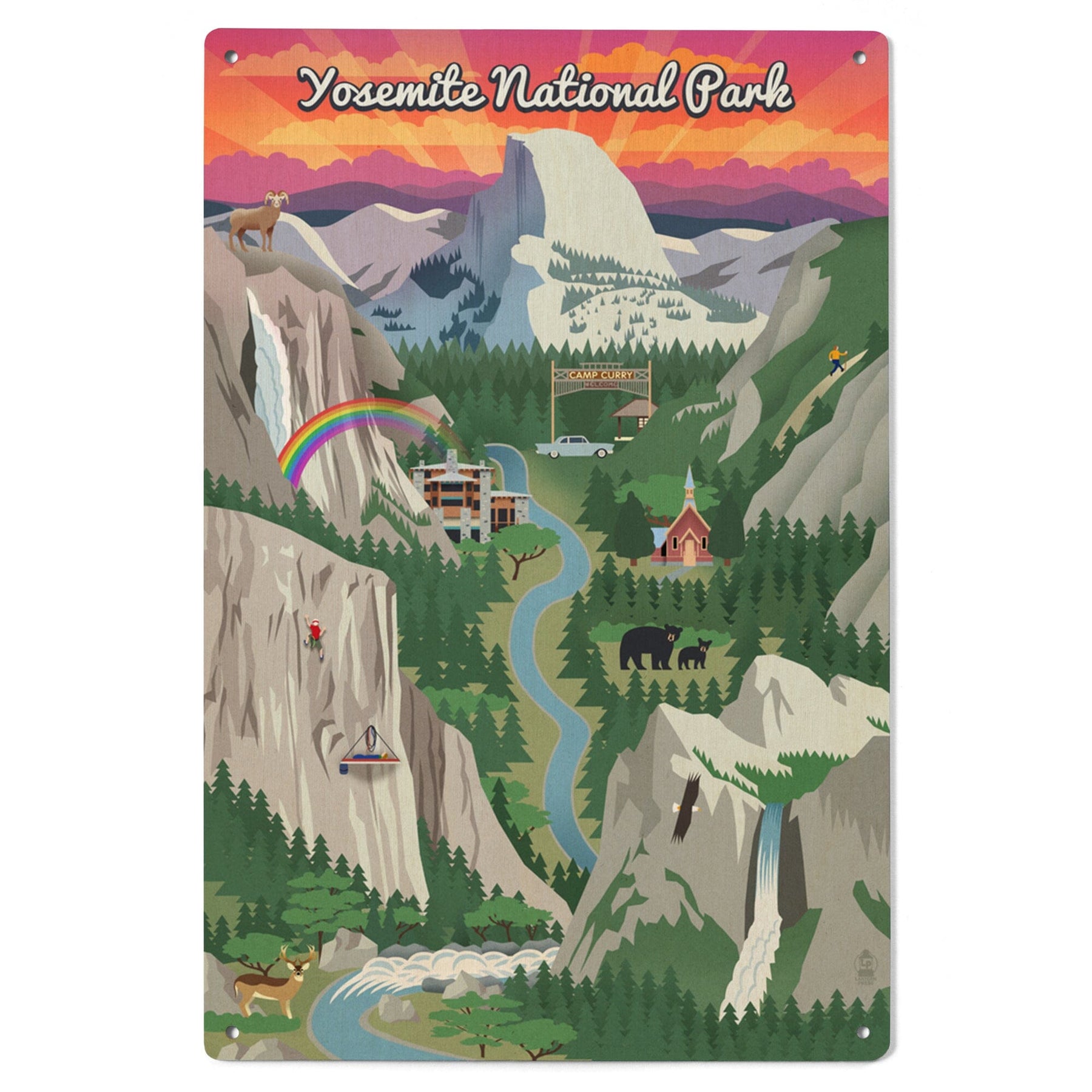 Yosemite National Park, California, Retro Views, Lantern Press Poster, Wood Signs and Postcards Wood Lantern Press