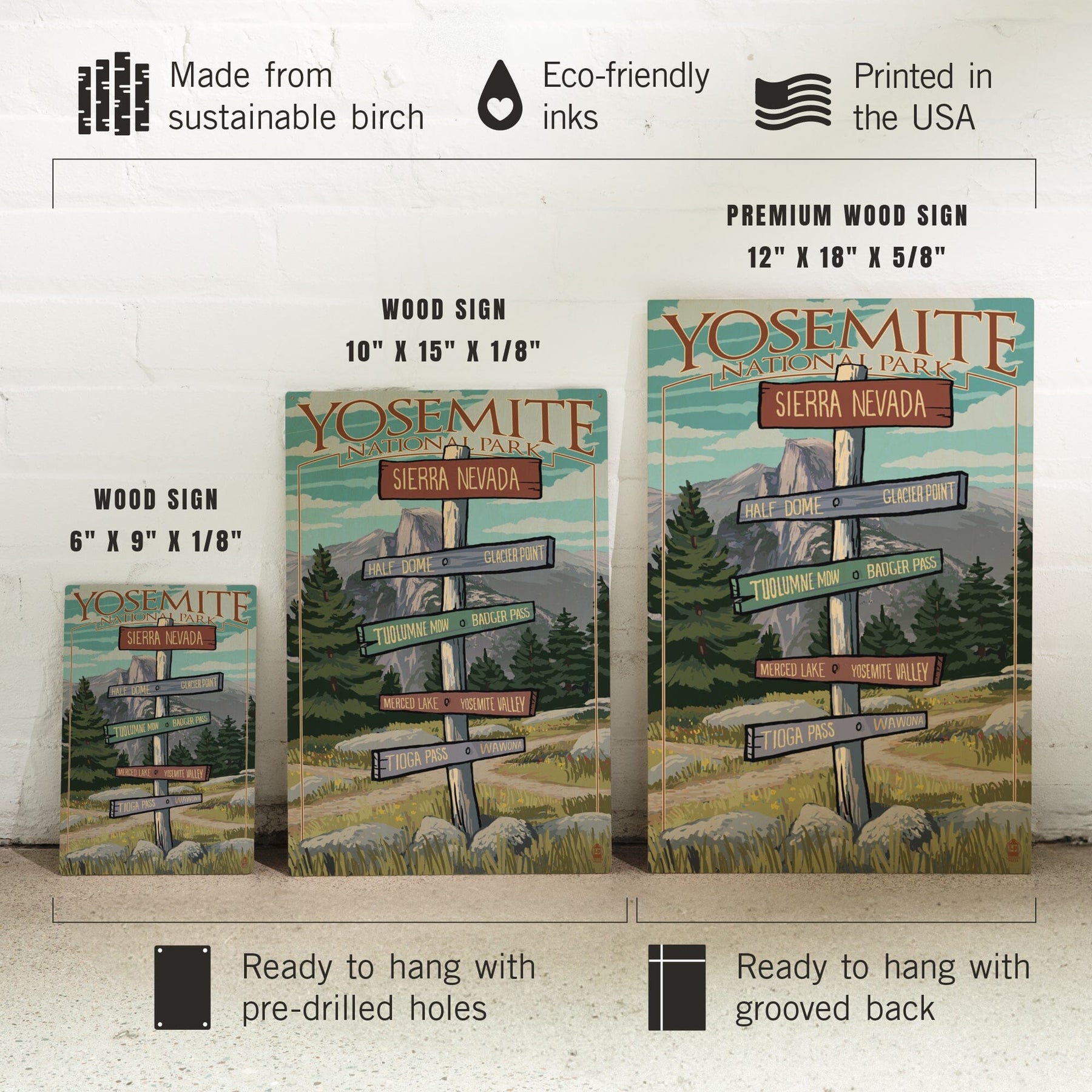 Yosemite National Park, California, Signpost, Lantern Press Artwork, Wood Signs and Postcards