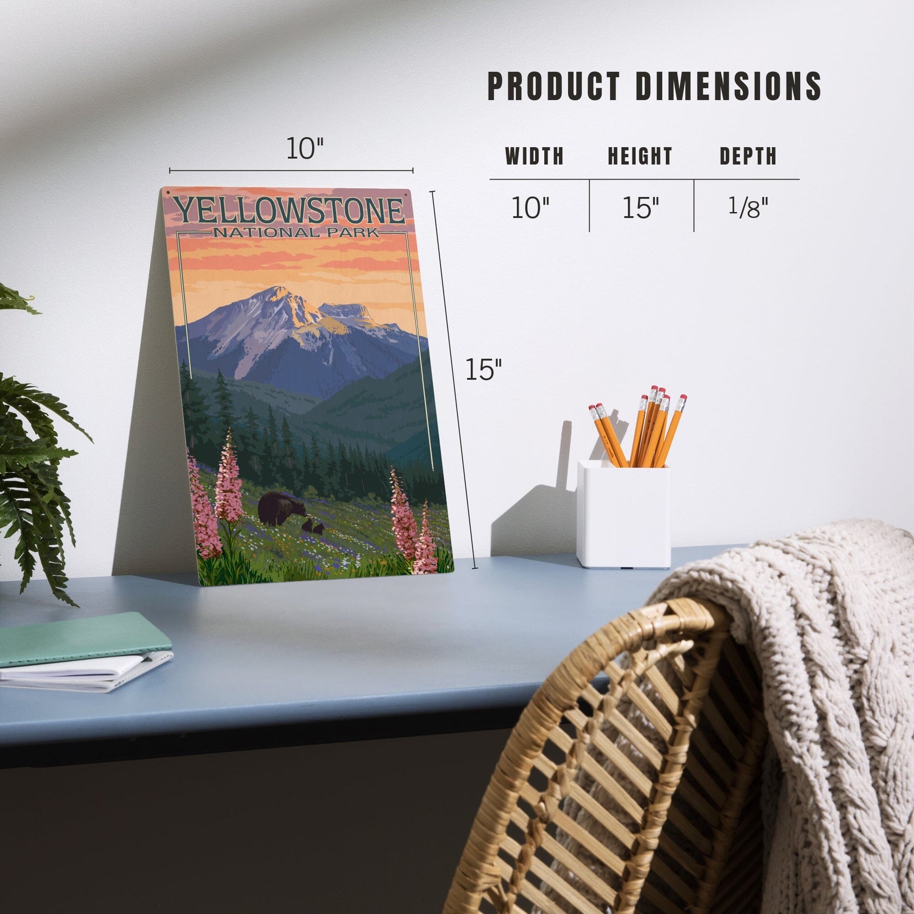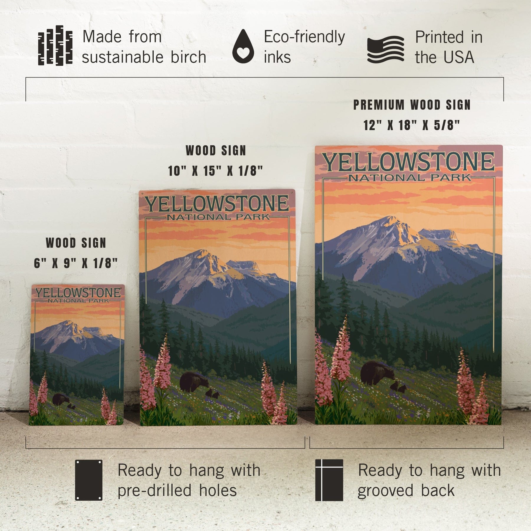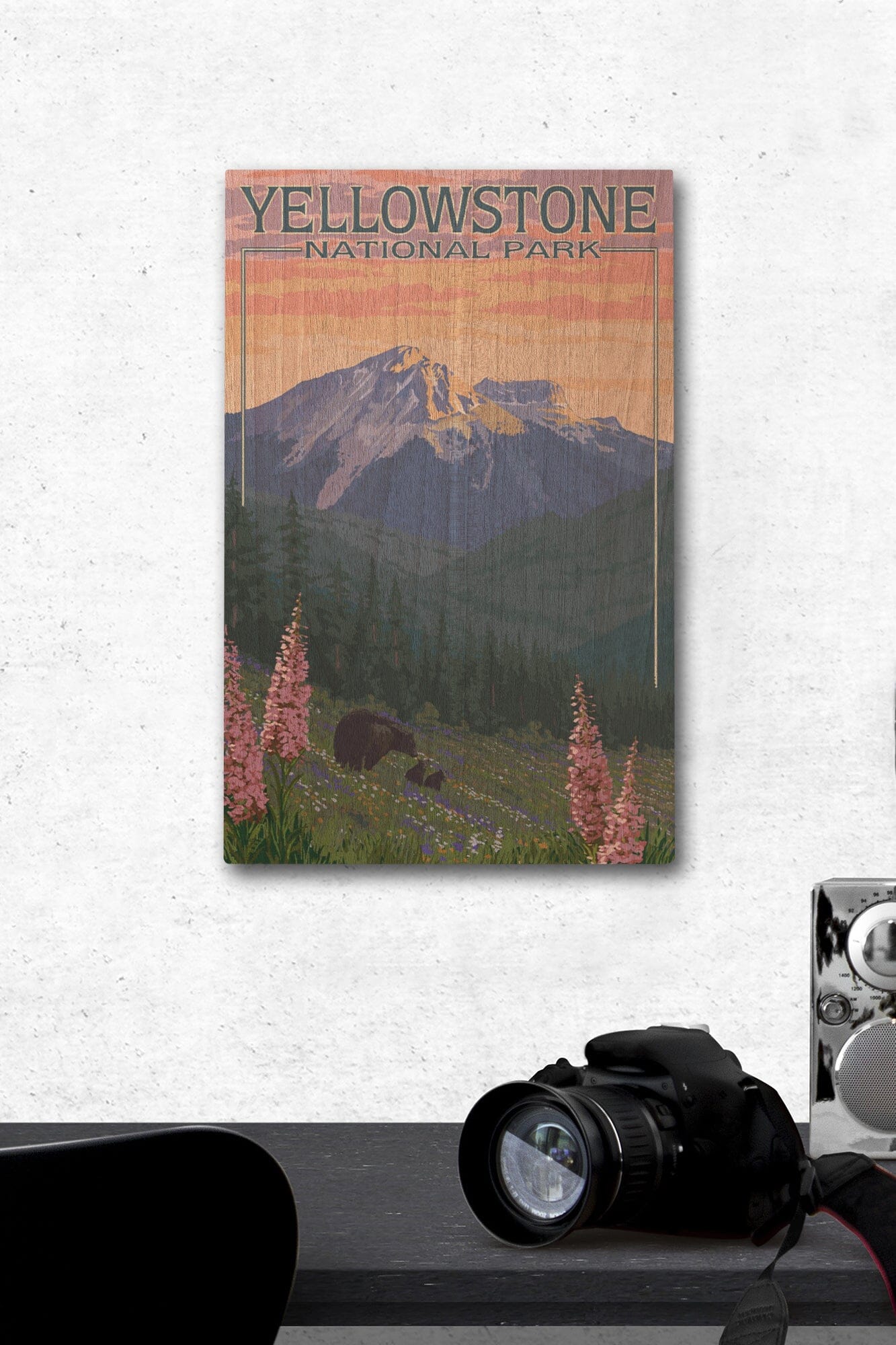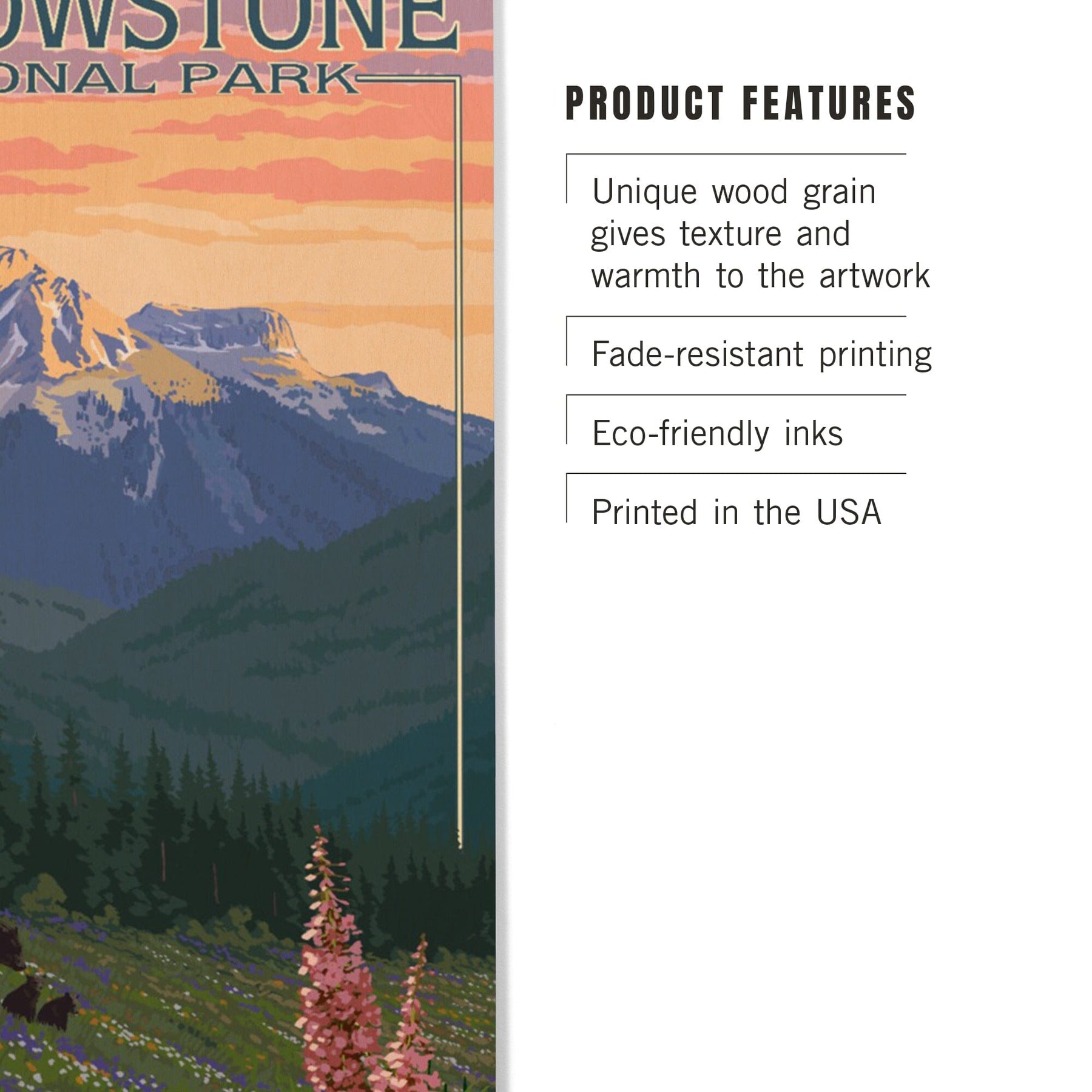Yellowstone National Park, Bear & Spring Flowers, Lantern Press Artwork, Wood Signs and Postcards Wood Lantern Press