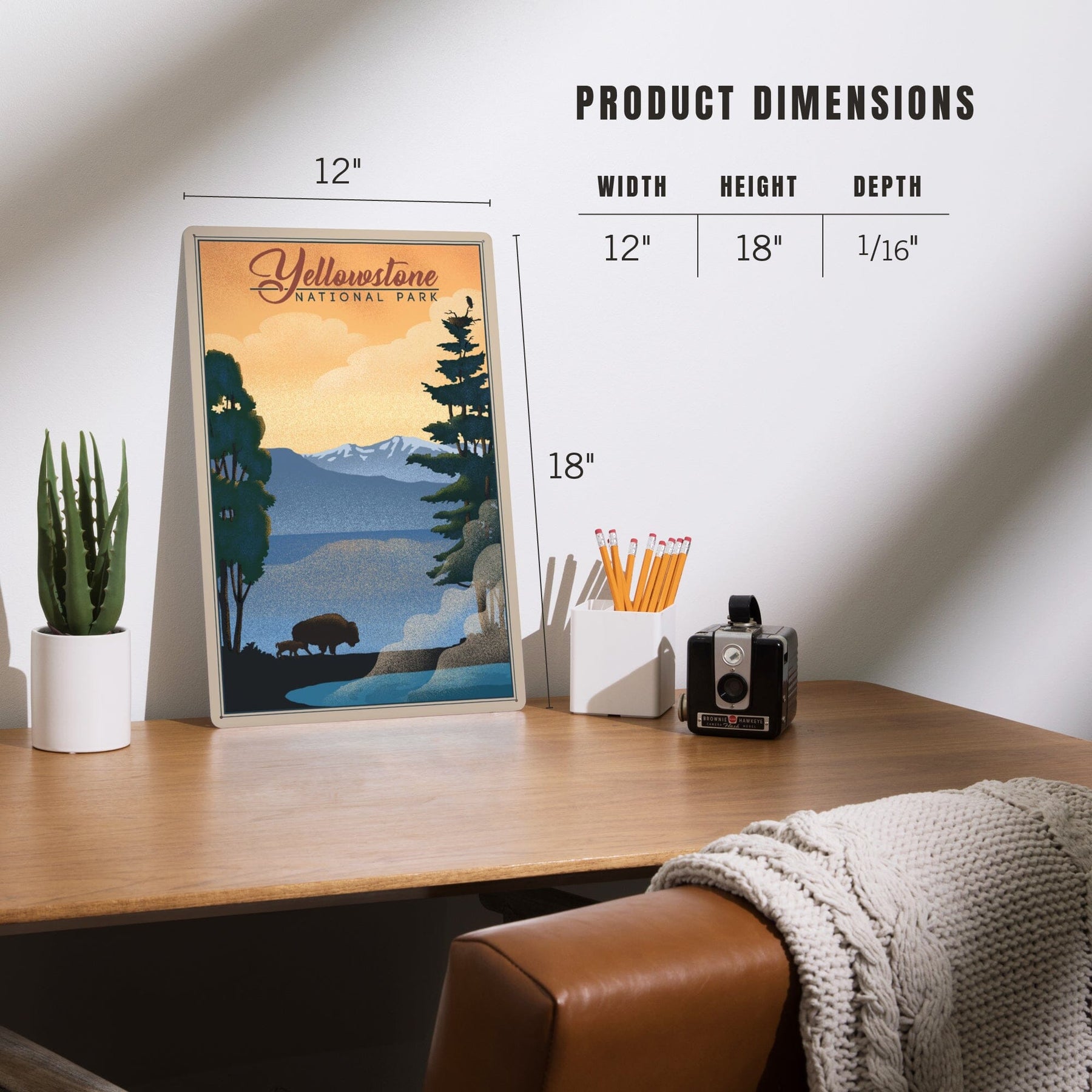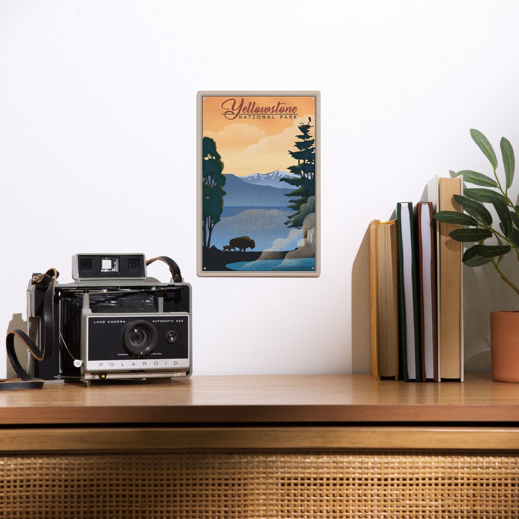 Yellowstone National Park, Bison and Lake, Lithograph National Park Series, Metal Signs