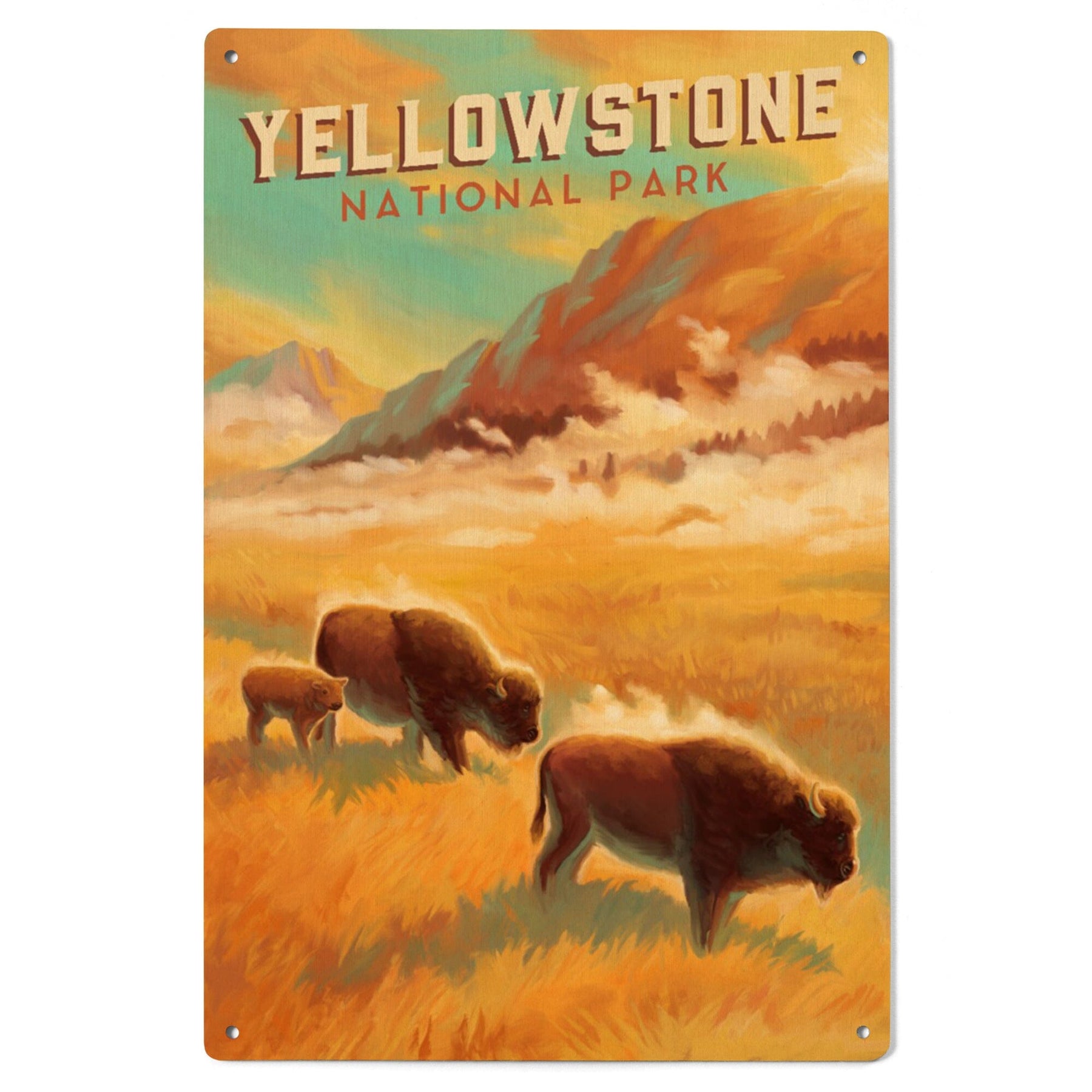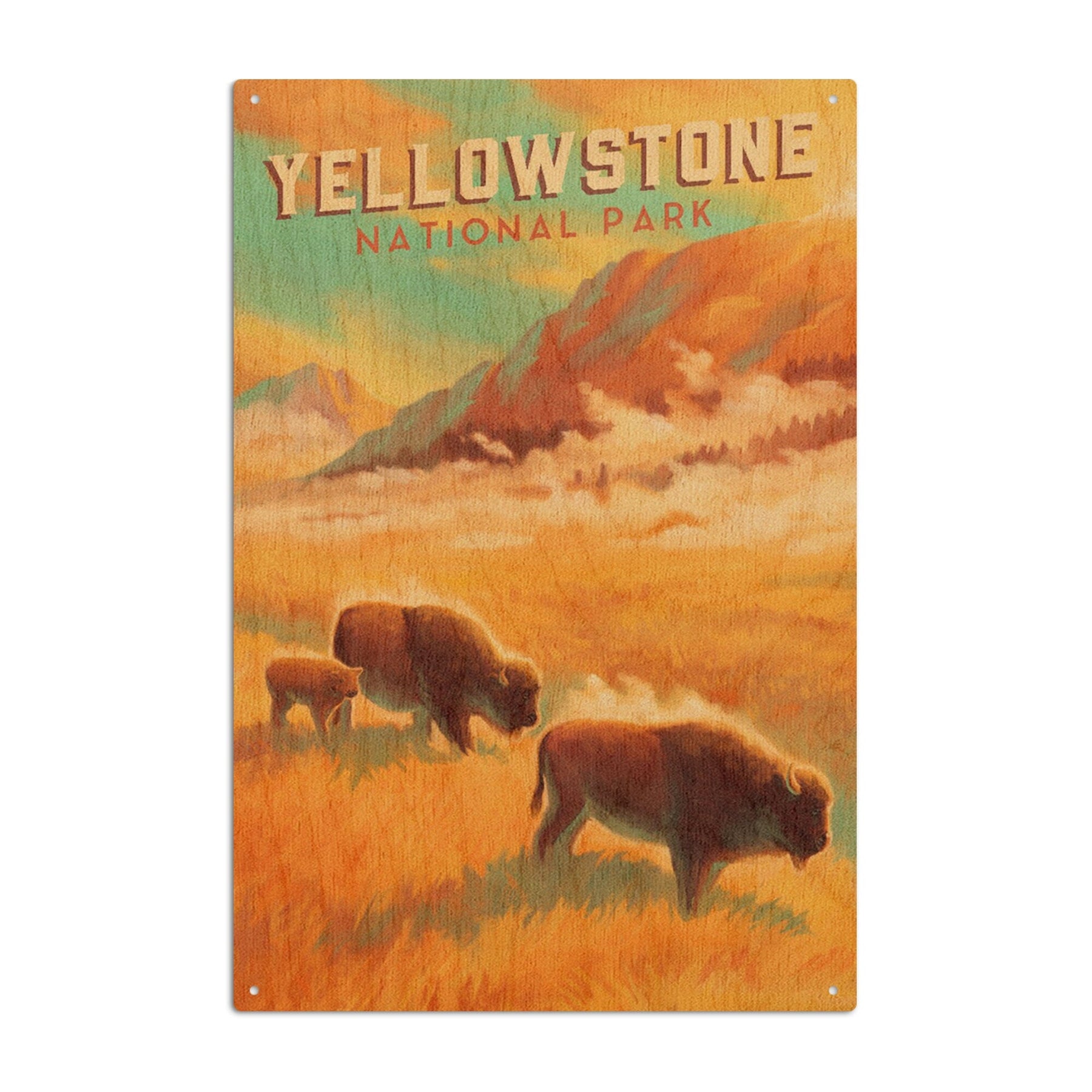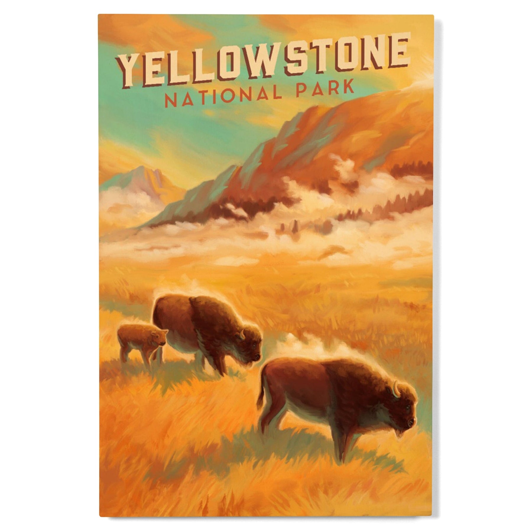 Yellowstone National Park, Bison Family, Oil Painting, Lantern Press Artwork, Wood Signs and Postcards Wood Lantern Press