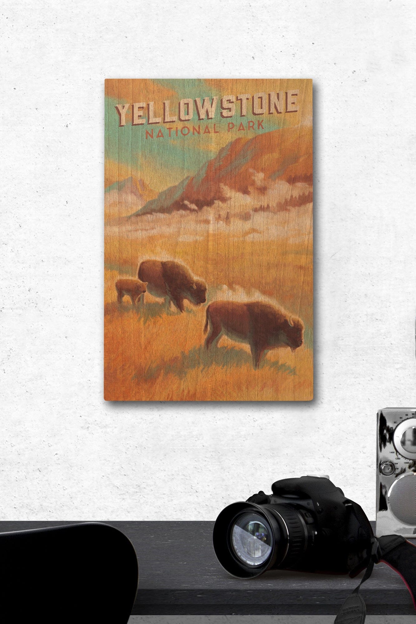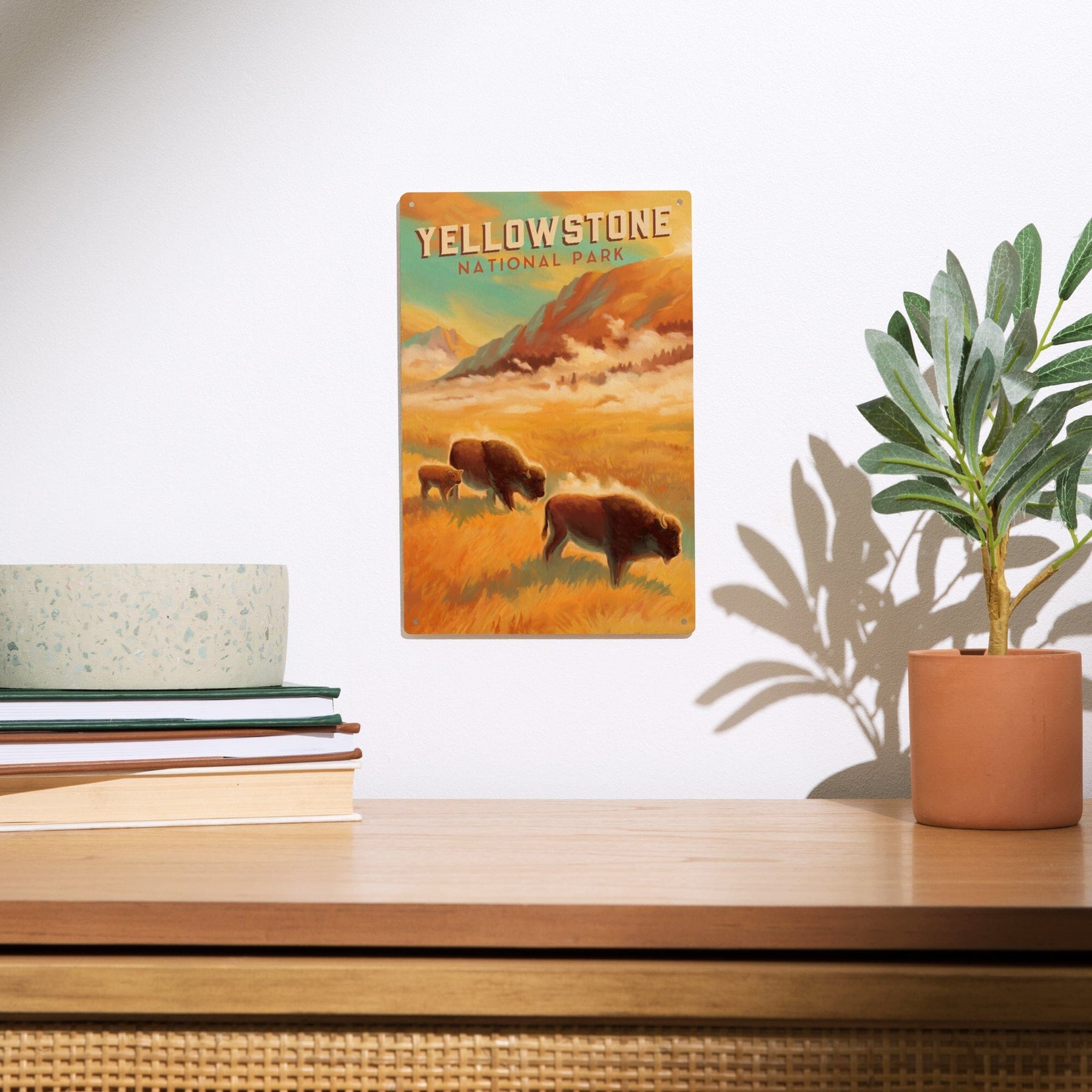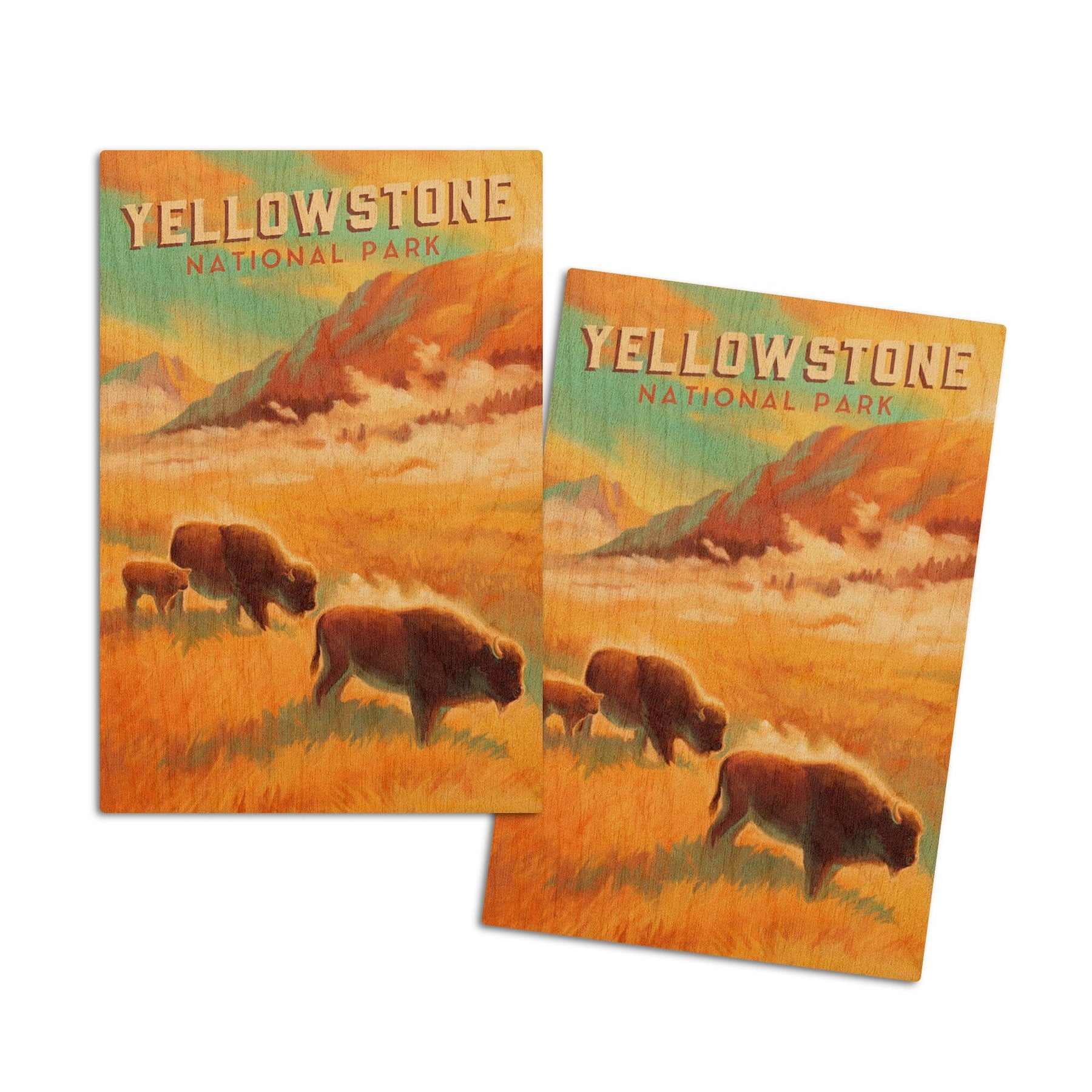 Yellowstone National Park, Bison Family, Oil Painting, Lantern Press Artwork, Wood Signs and Postcards Wood Lantern Press