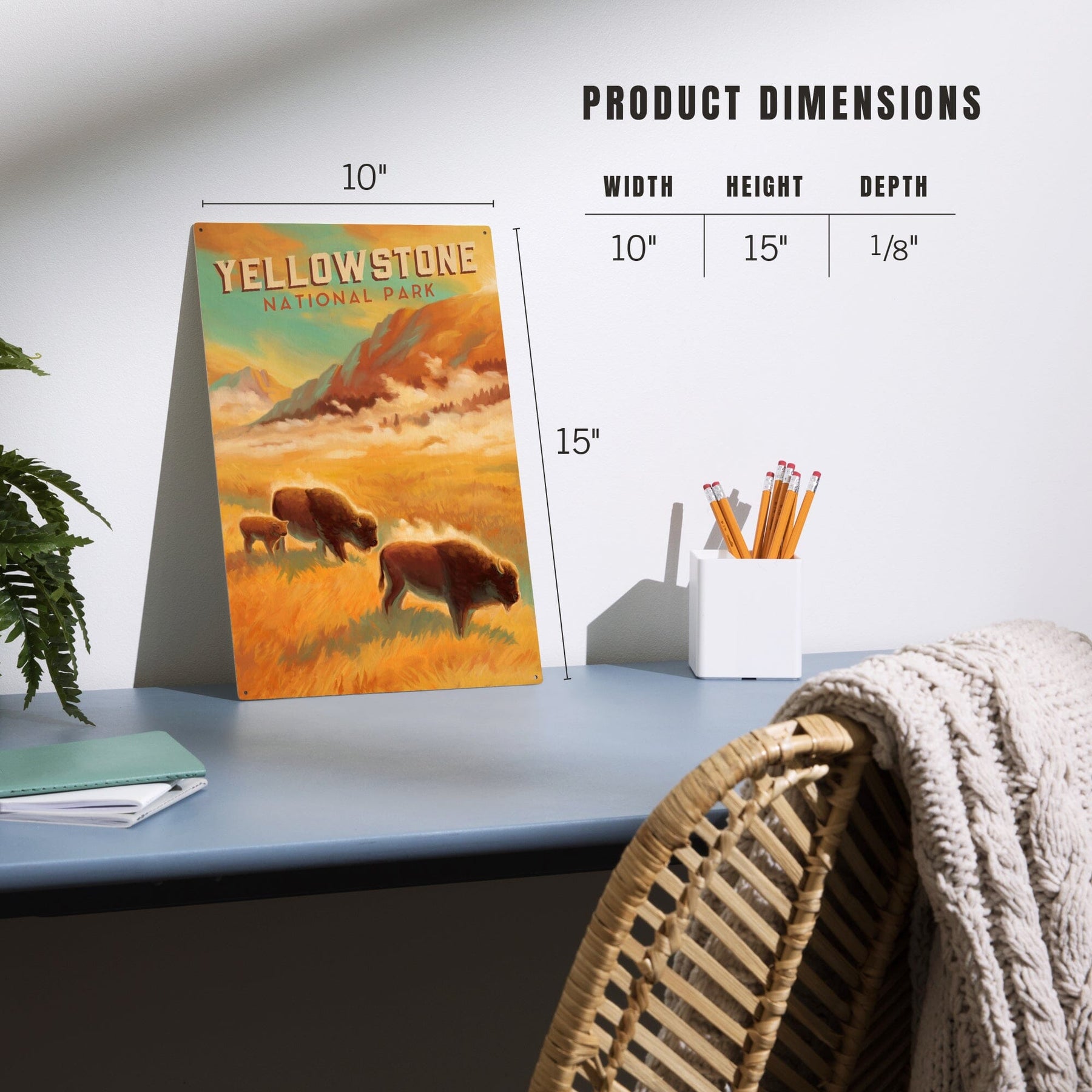 Yellowstone National Park, Wyoming, Painterly National Park Series, Bison and Geyser, Art & Giclee Prints Art Lantern Press 8 x 12 Art Print