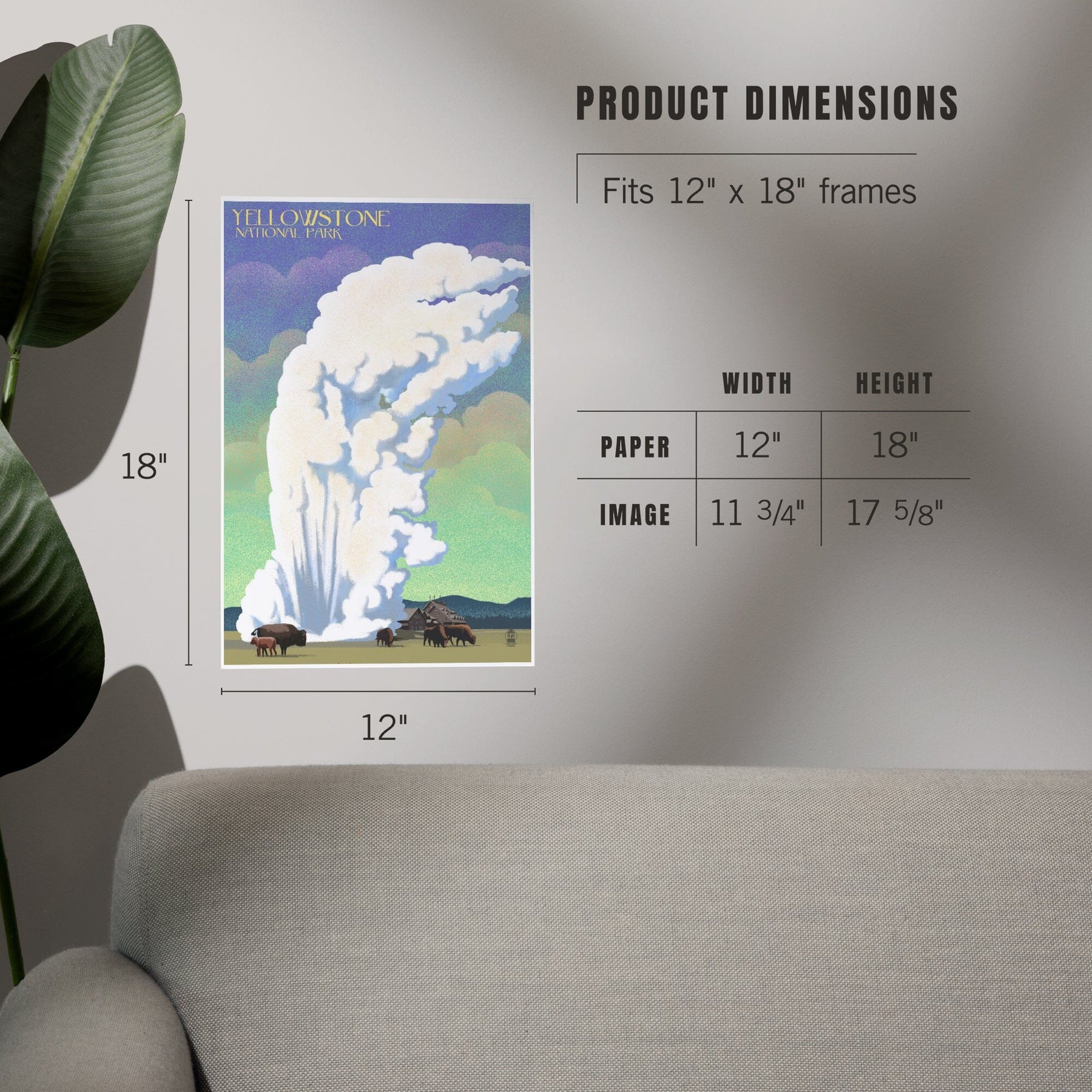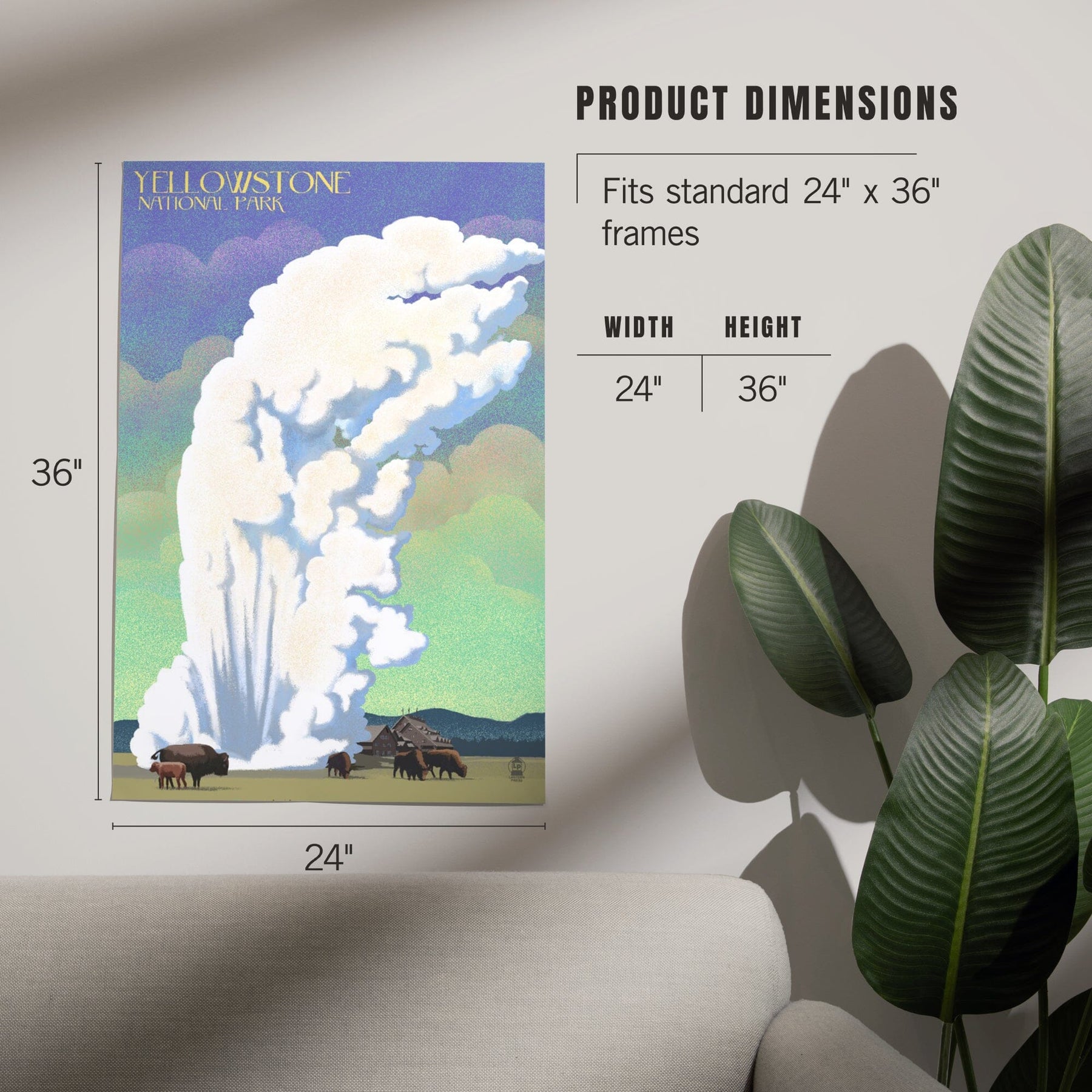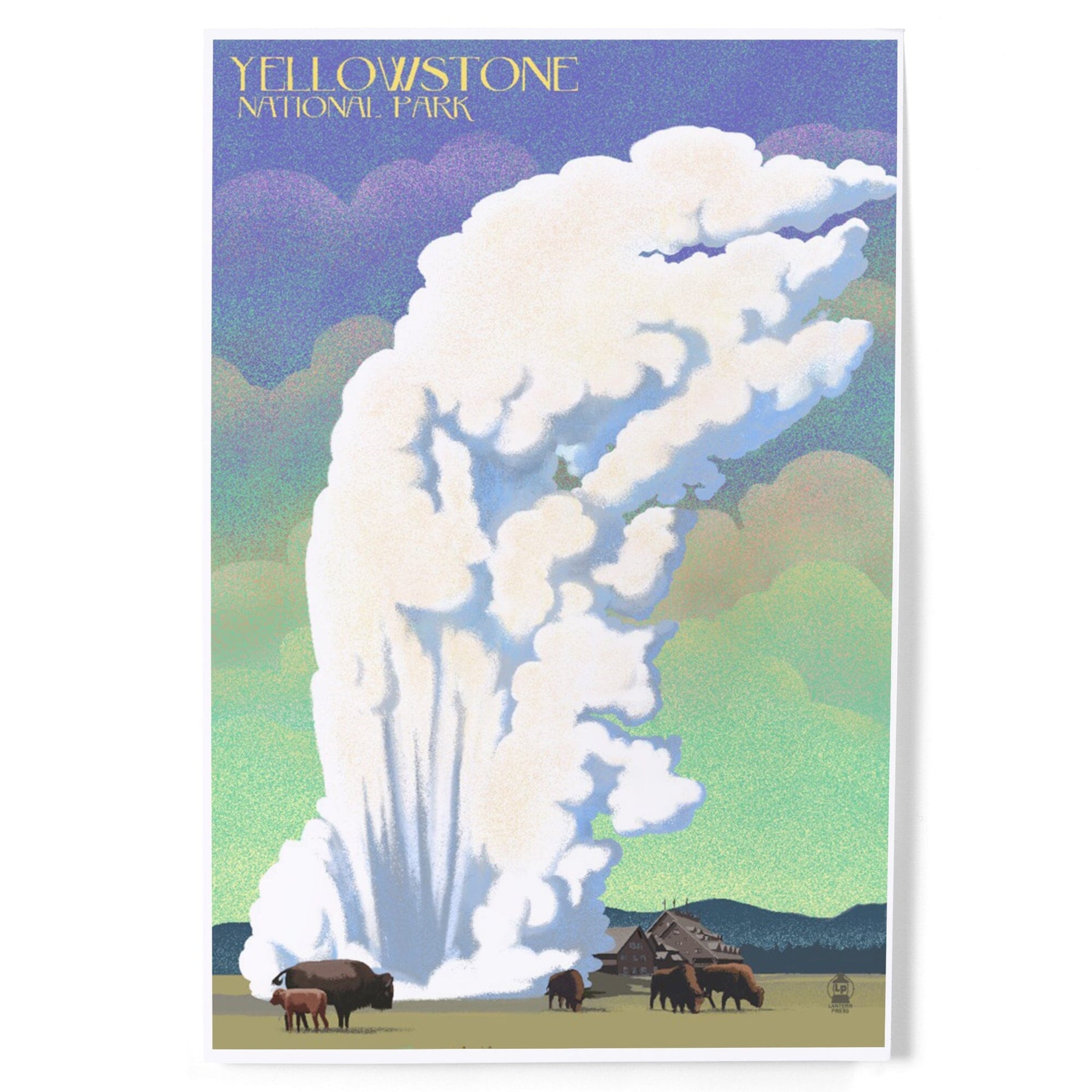 Yellowstone National Park, Old Faithful and Bison, Lithograph, Art & Giclee Prints Art Lantern Press