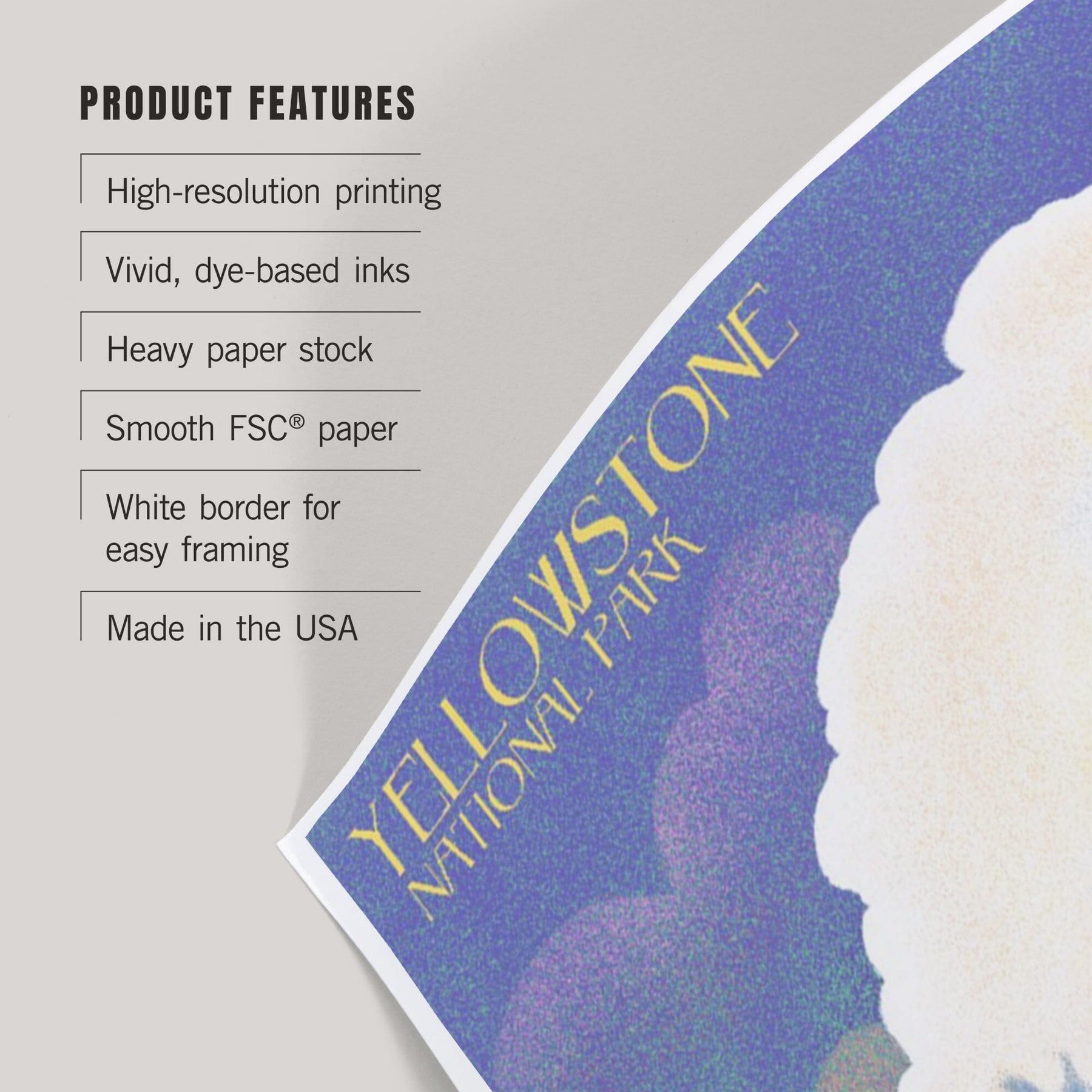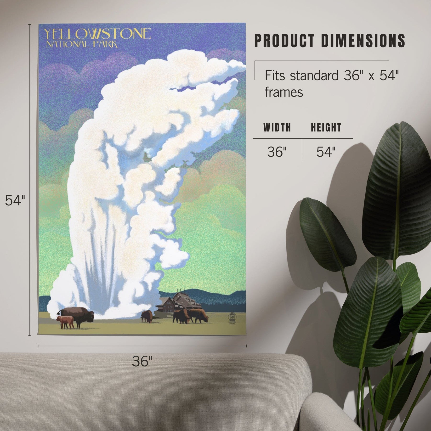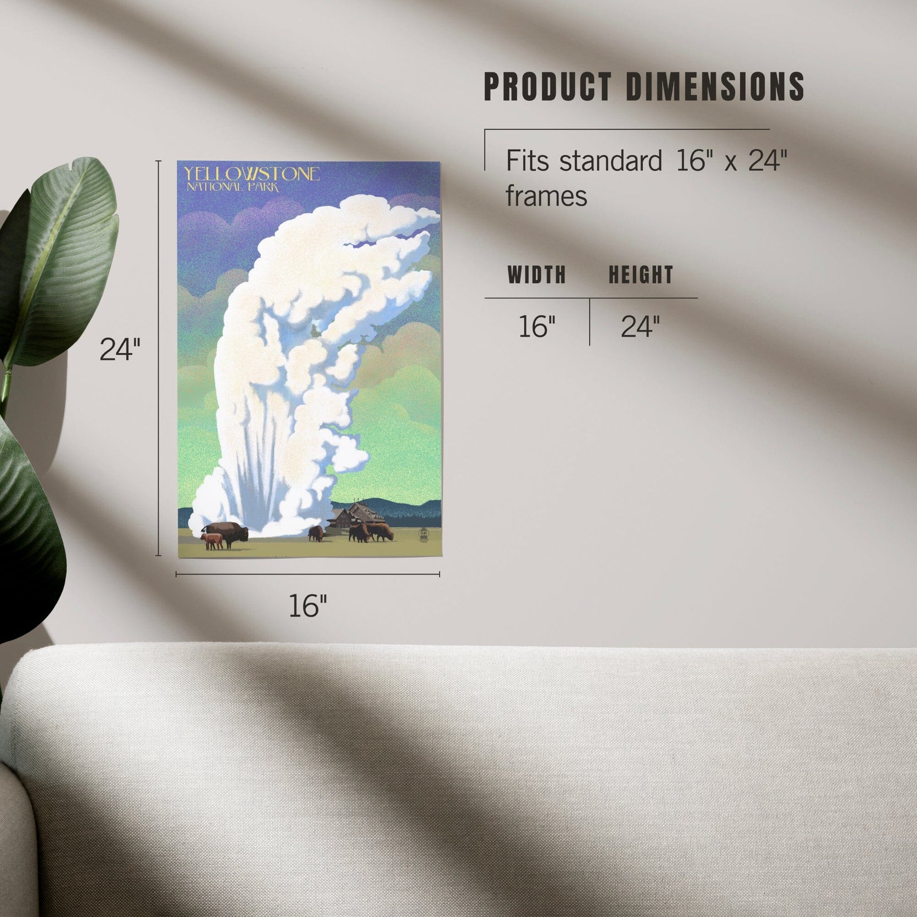 Yellowstone National Park, Old Faithful and Bison, Lithograph, Art & Giclee Prints Art Lantern Press