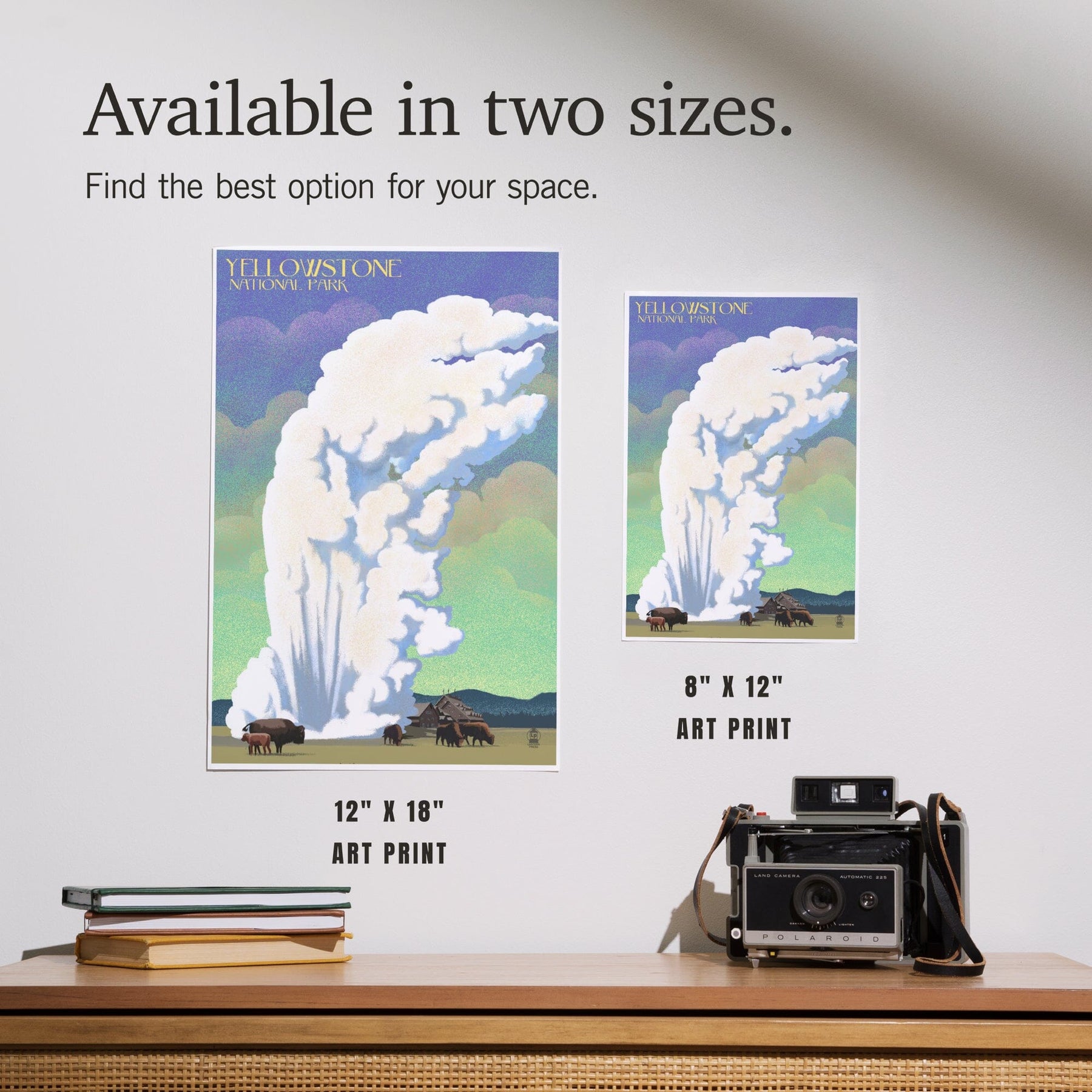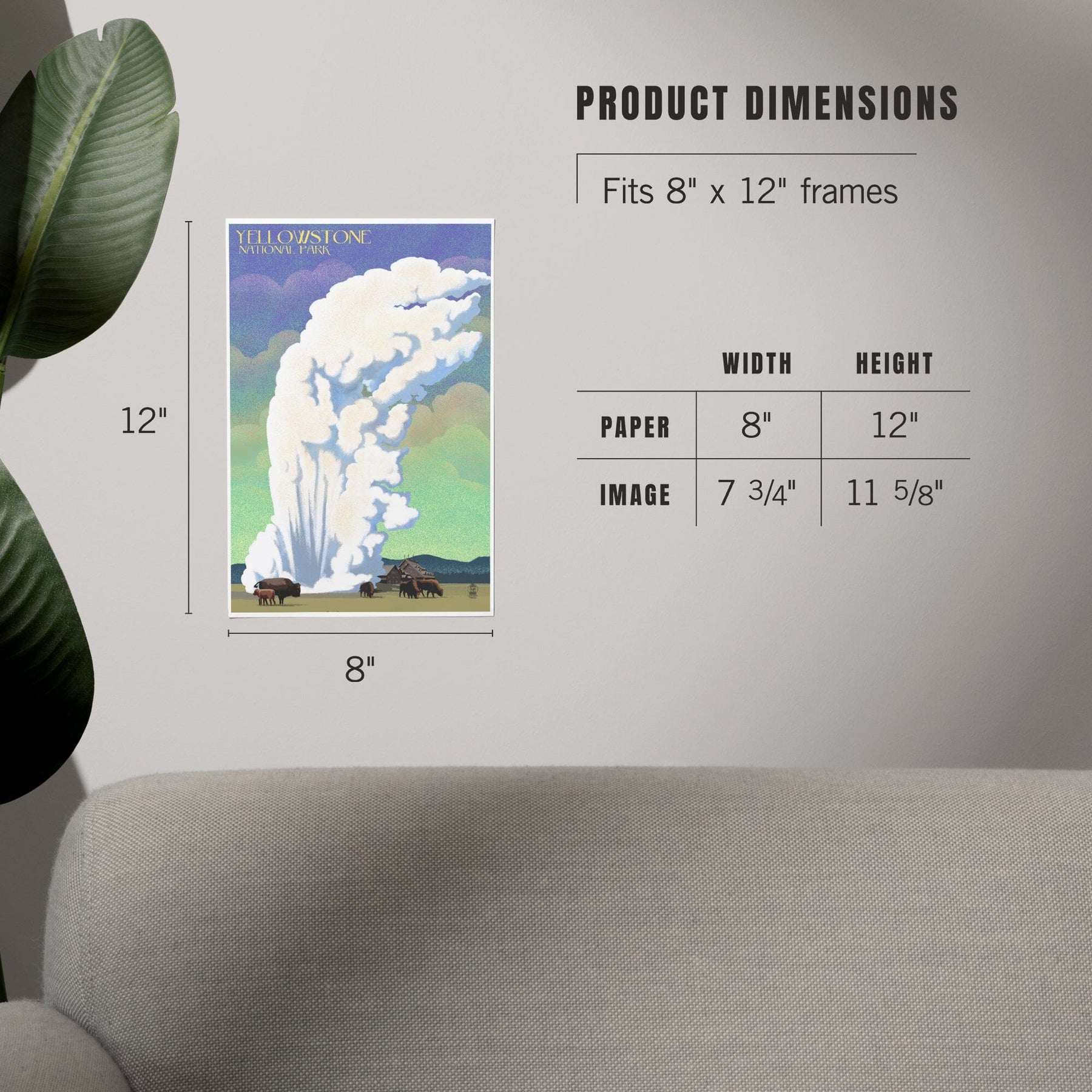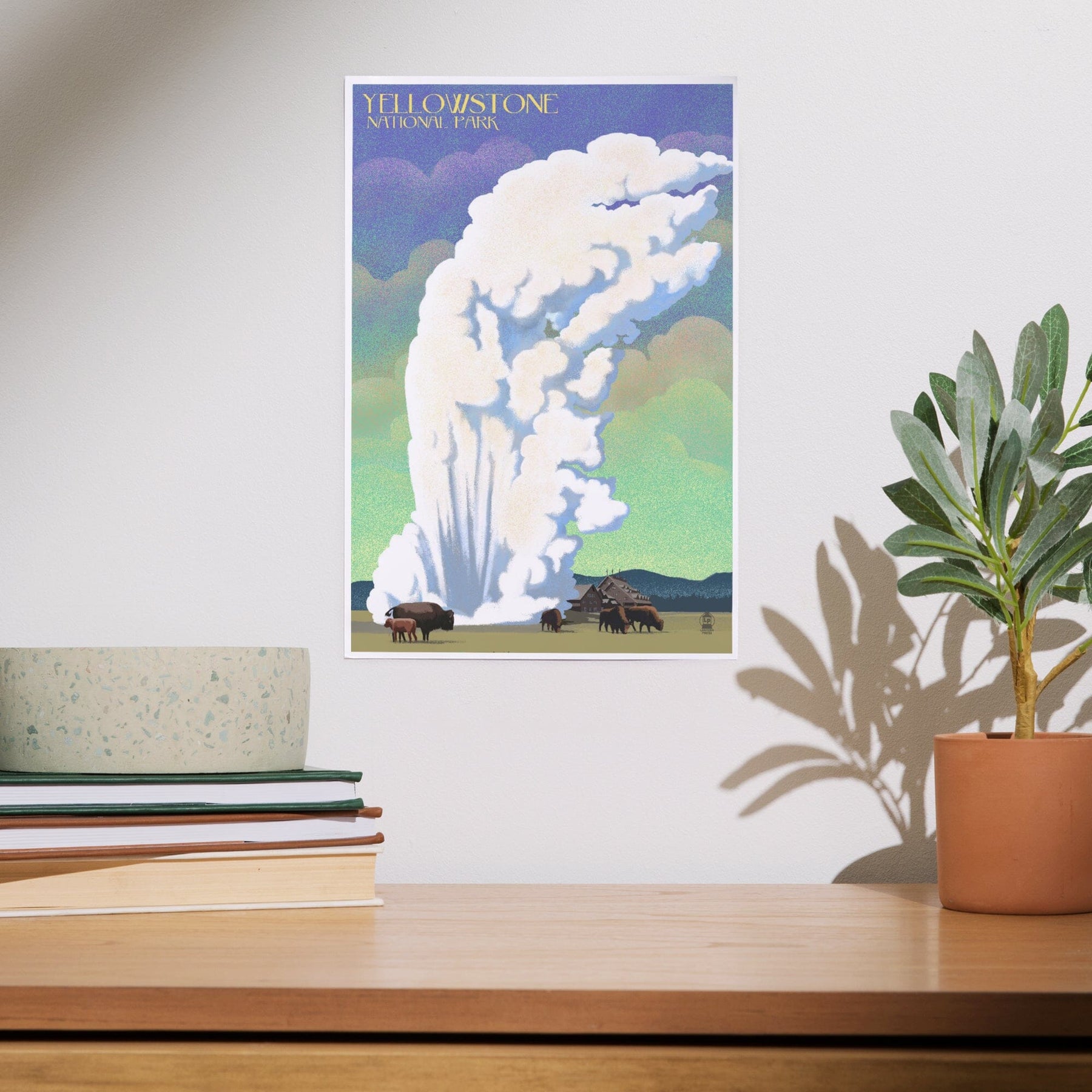Yellowstone National Park, Wyoming, Painterly National Park Series, Bison and Geyser, Art & Giclee Prints Art Lantern Press 8 x 12 Art Print
