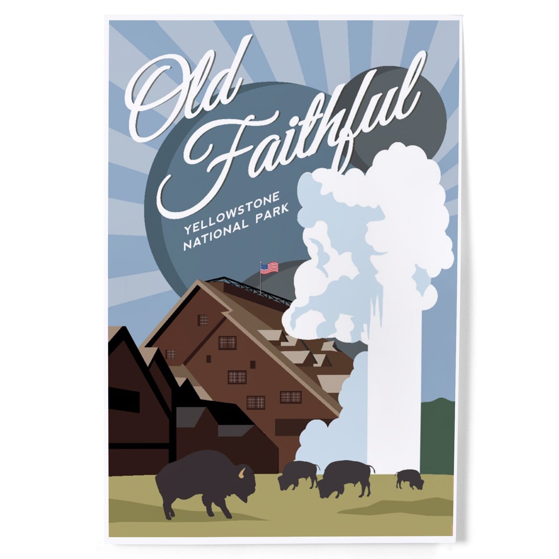 Yellowstone National Park, Wyoming, Old Faithful Geyser and Bison Herd, Art & Giclee Prints Art Lantern Press