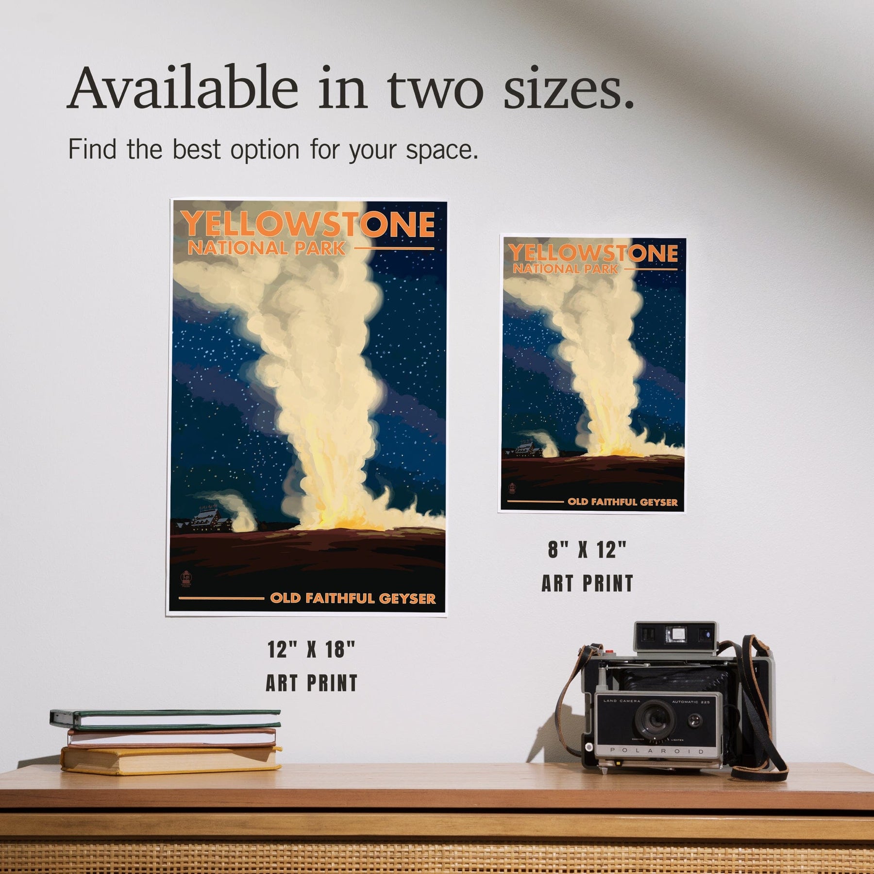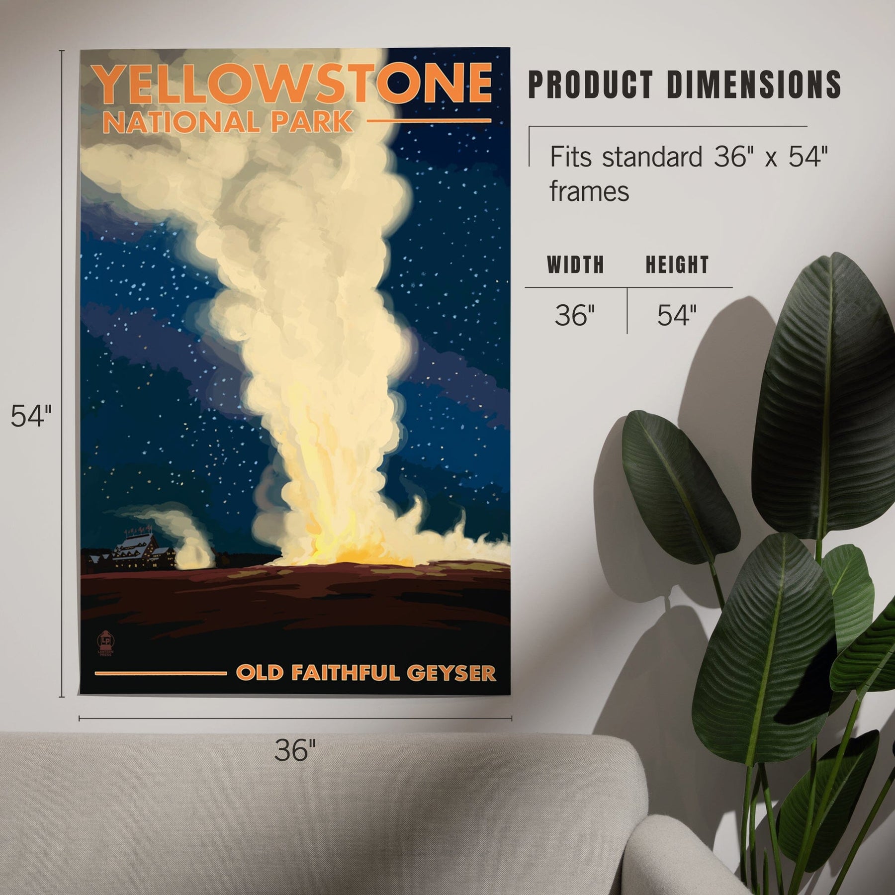 Yellowstone National Park, Wyoming, Old Faithful at Night, Art & Giclee Prints Art Lantern Press