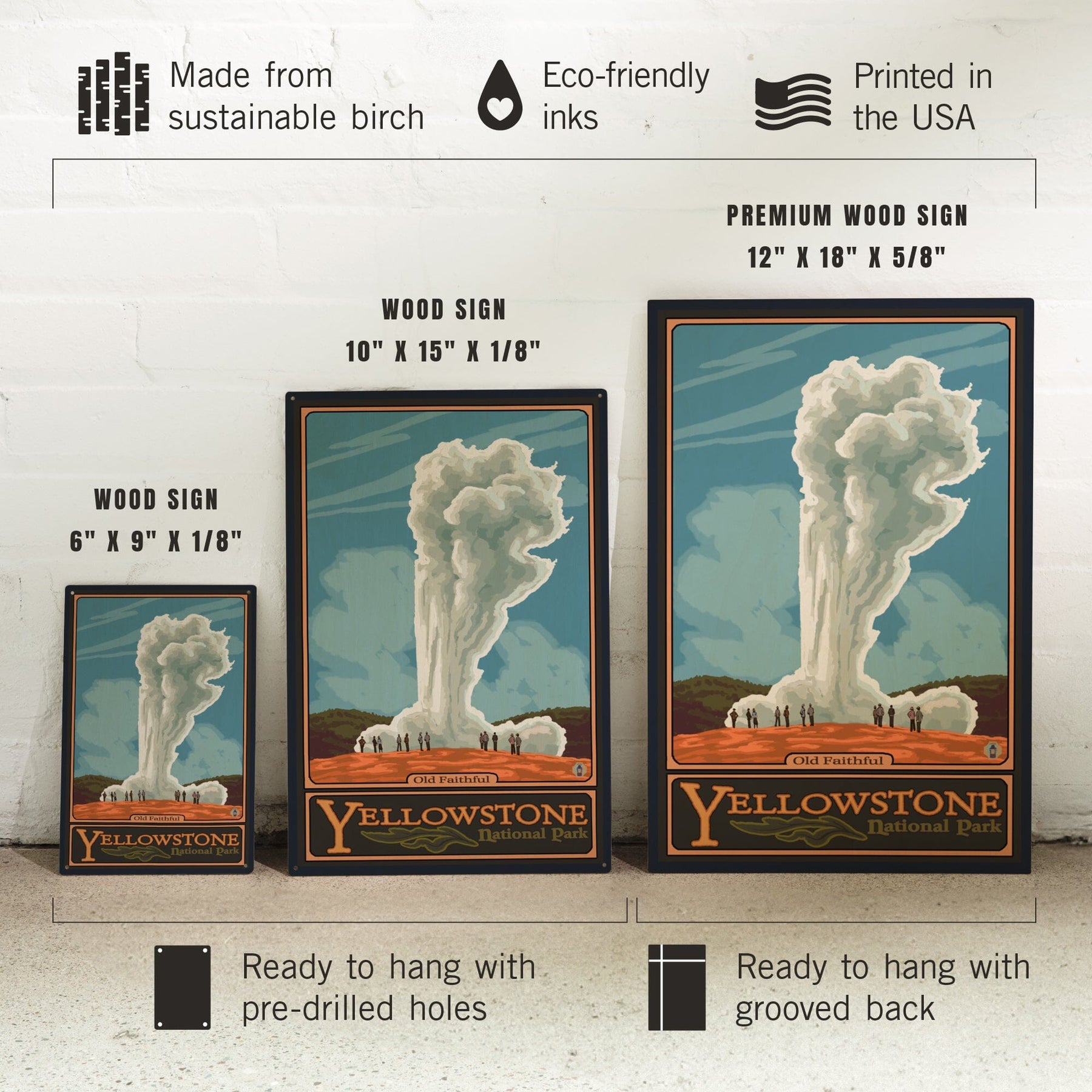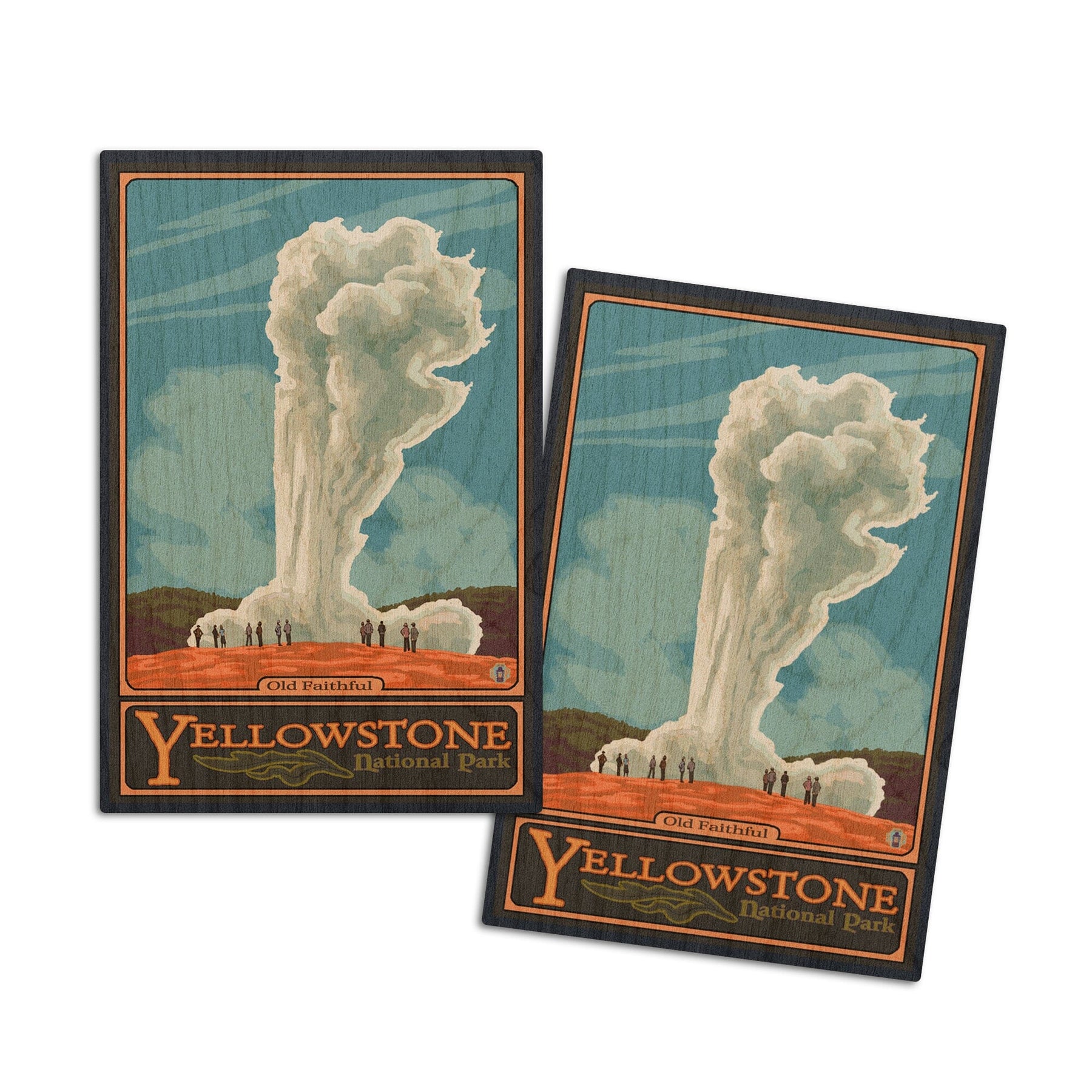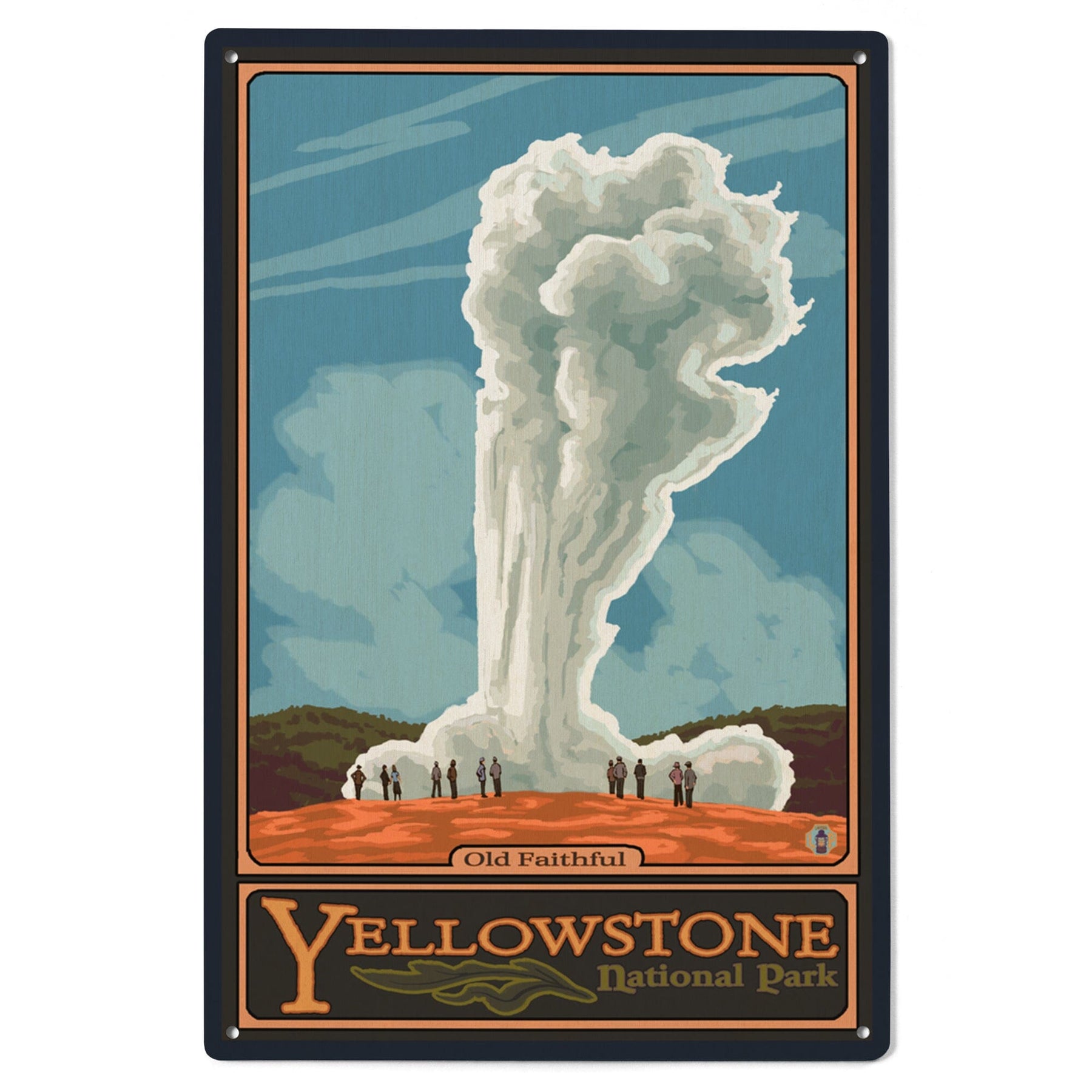 Yellowstone National Park, Wyoming, Old Faithful Geyser, Lantern Press Artwork, Wood Signs and Postcards Wood Lantern Press
