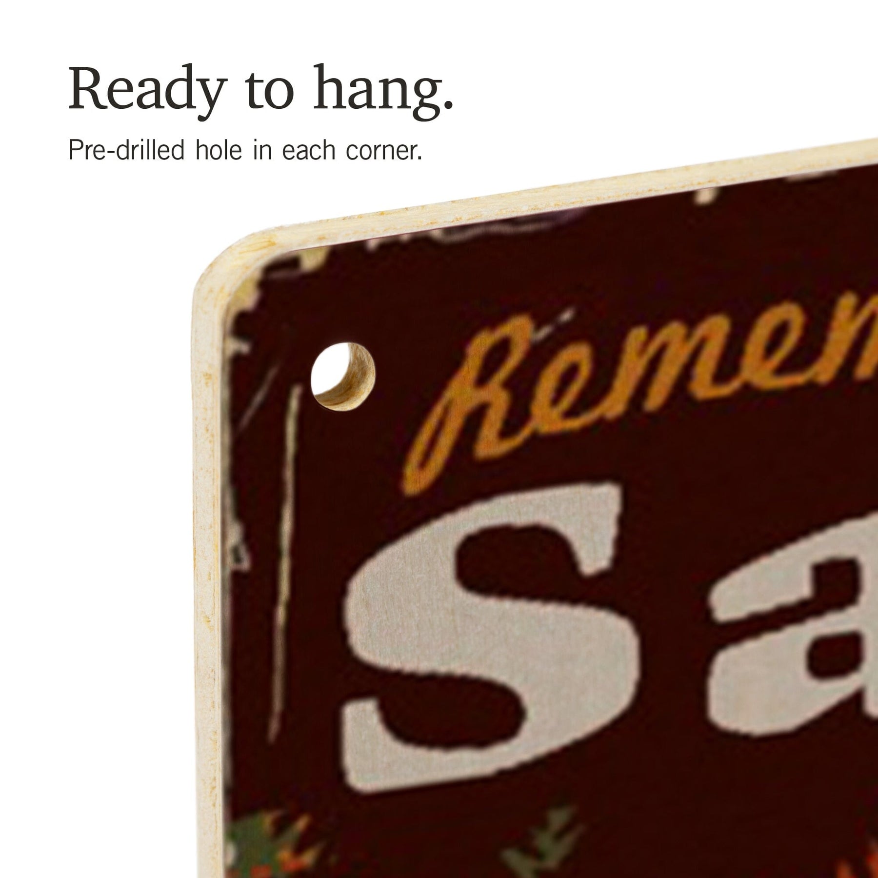 • Hole in each corner, ready to hang