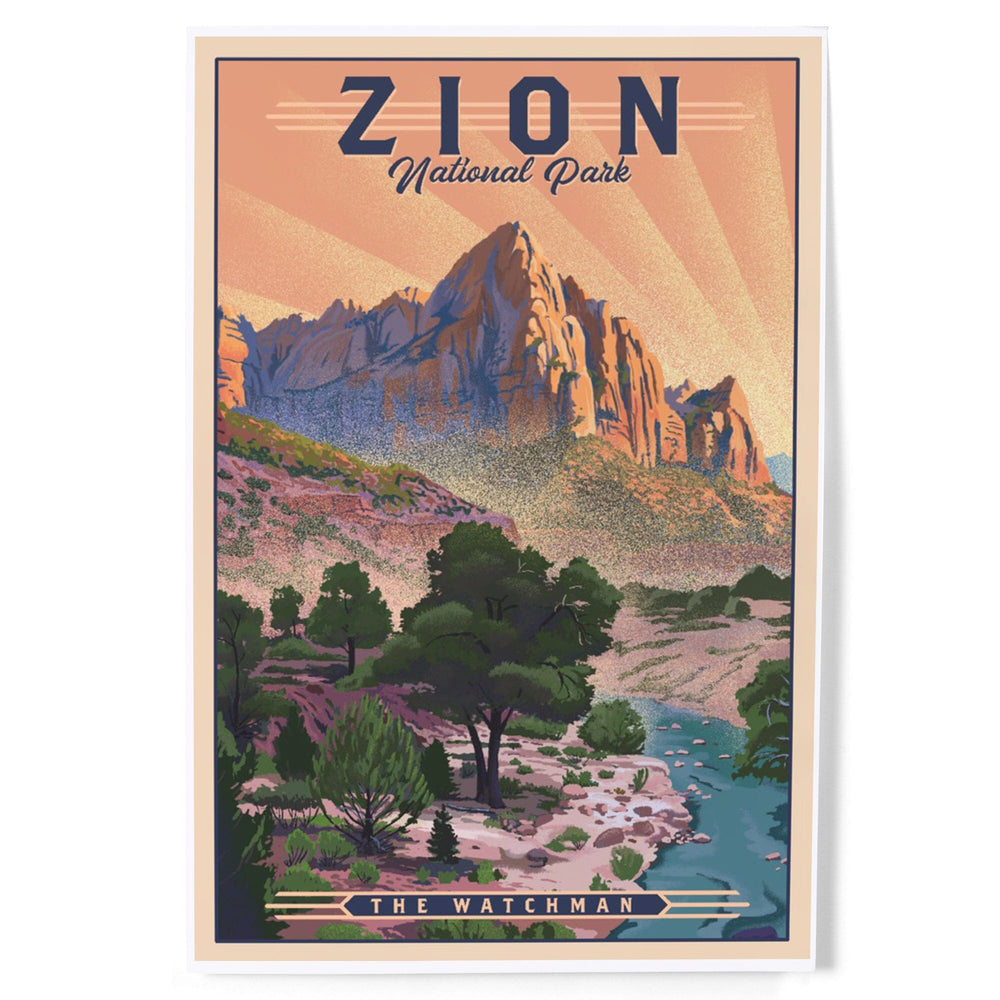 Zion National Park, Utah, The Watchman, Lithograph National Park Series, Art & Giclee Prints Art Lantern Press 8 x 12 Art Print