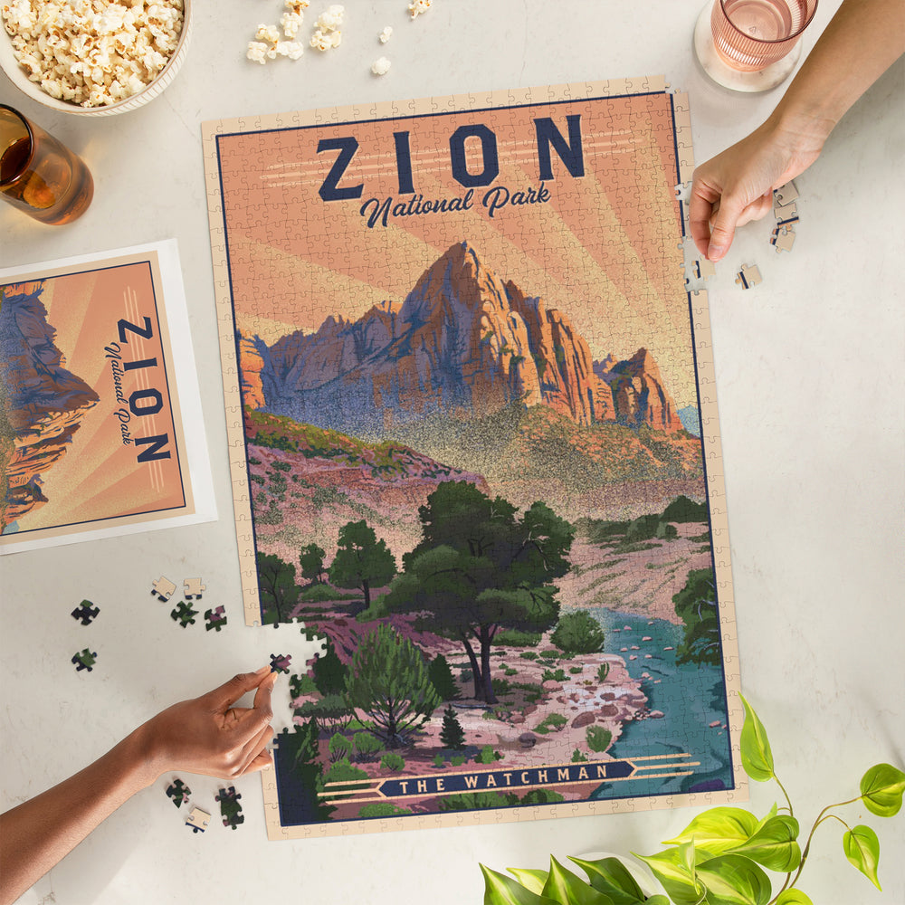 Zion National Park, Utah, The Watchman, Lithograph National Park Series, Art & Giclee Prints Art Lantern Press