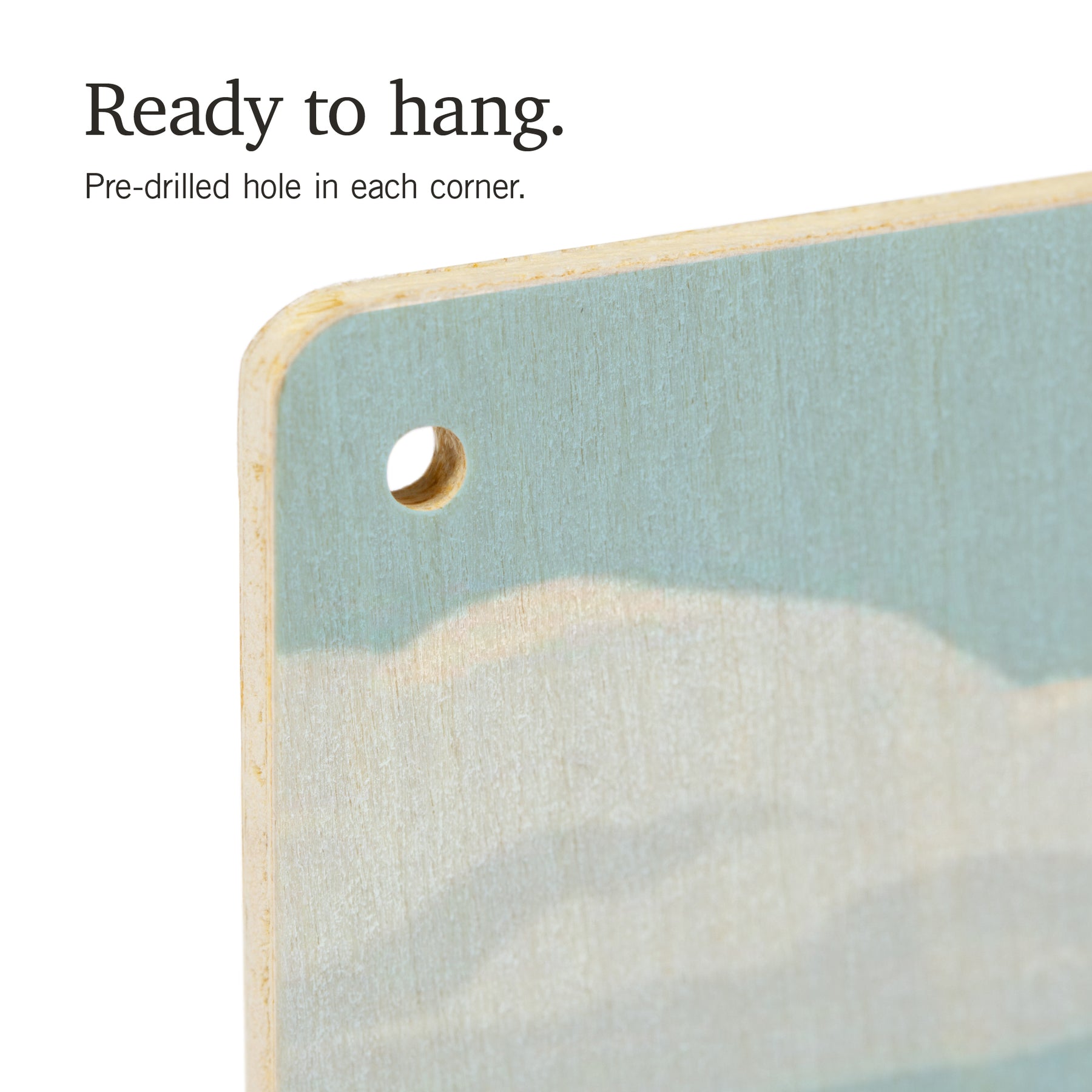 • Hole in each corner, ready to hang