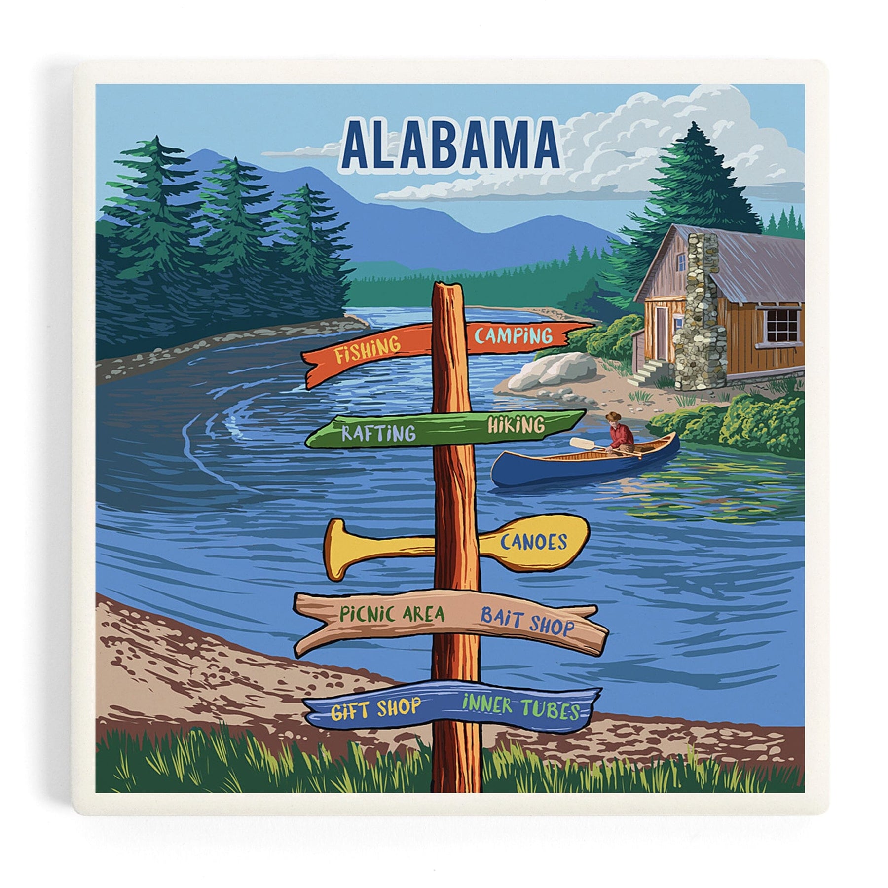 Alabama, Signpost, River, Coasters Coasters Lantern Press