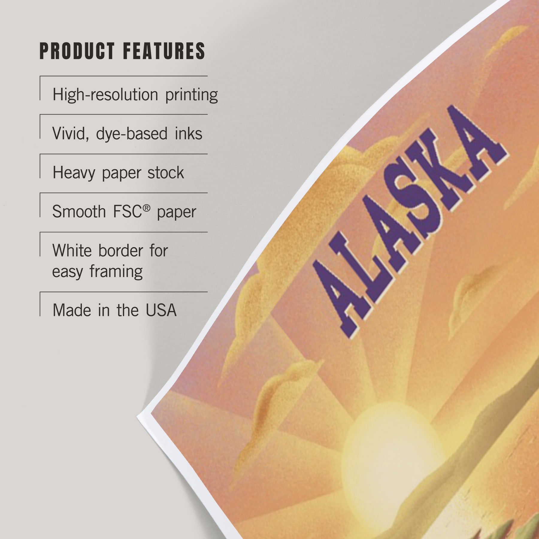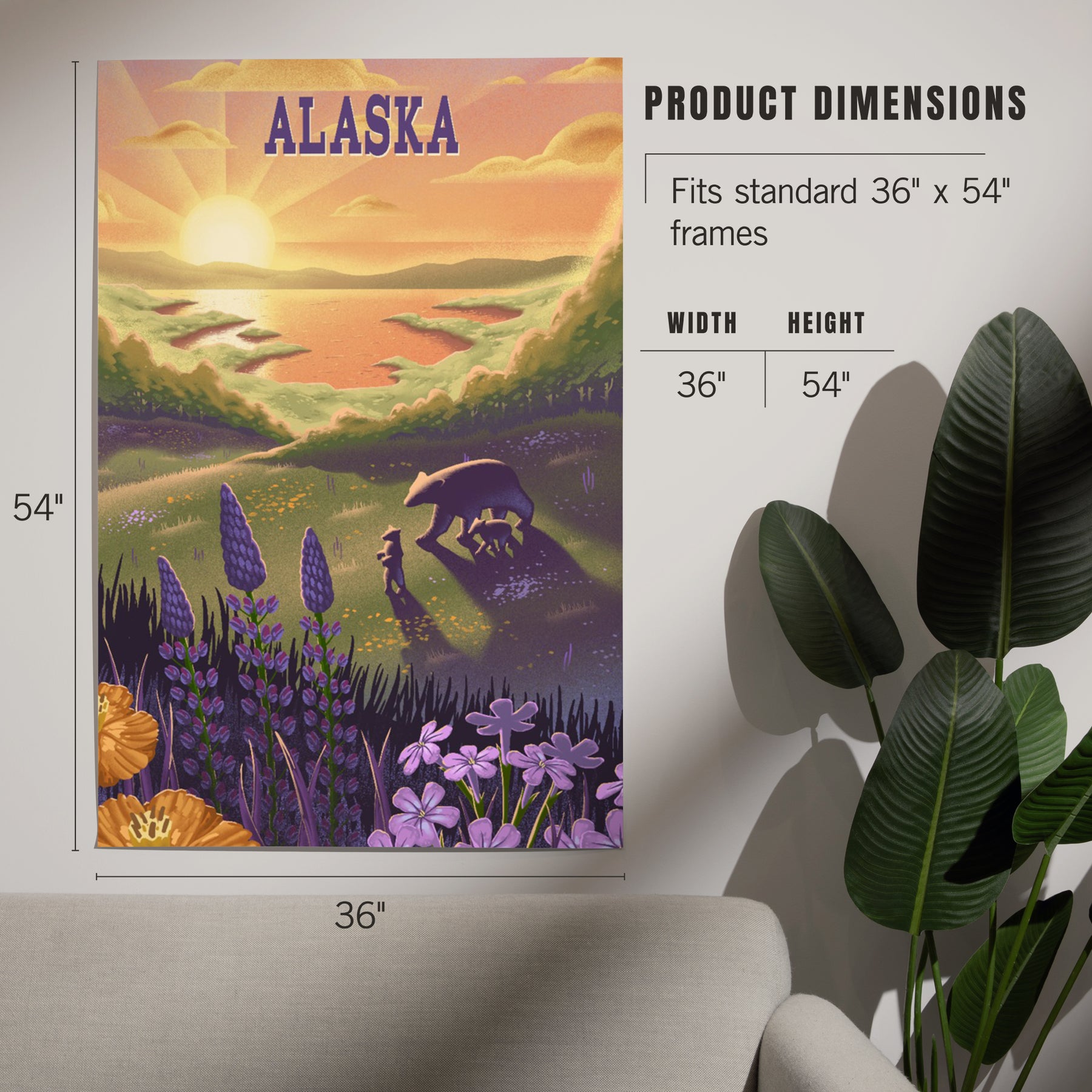 Alaska, Lithograph, Bear and Spring Flowers, Lake, Art & Giclee Prints Art Lantern Press