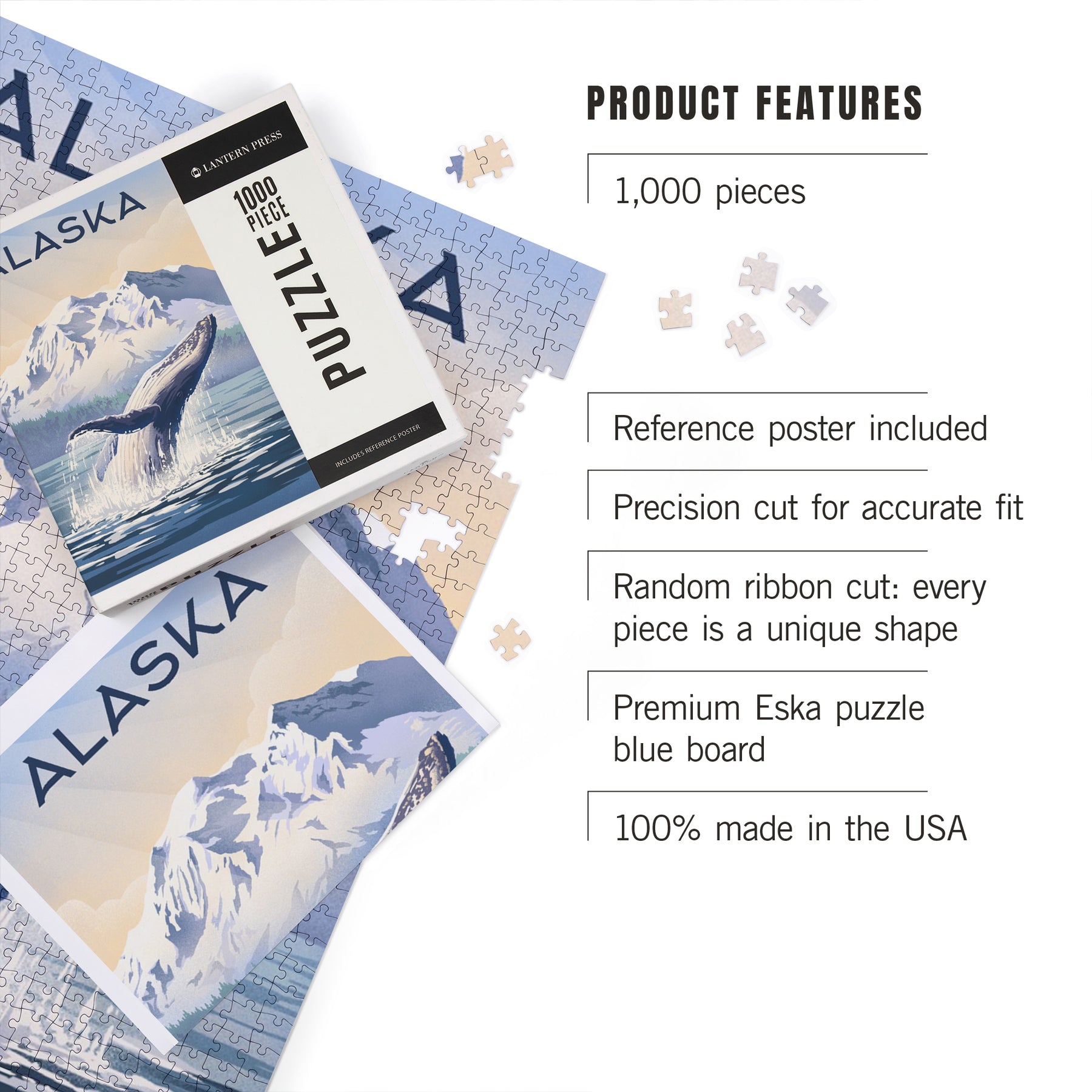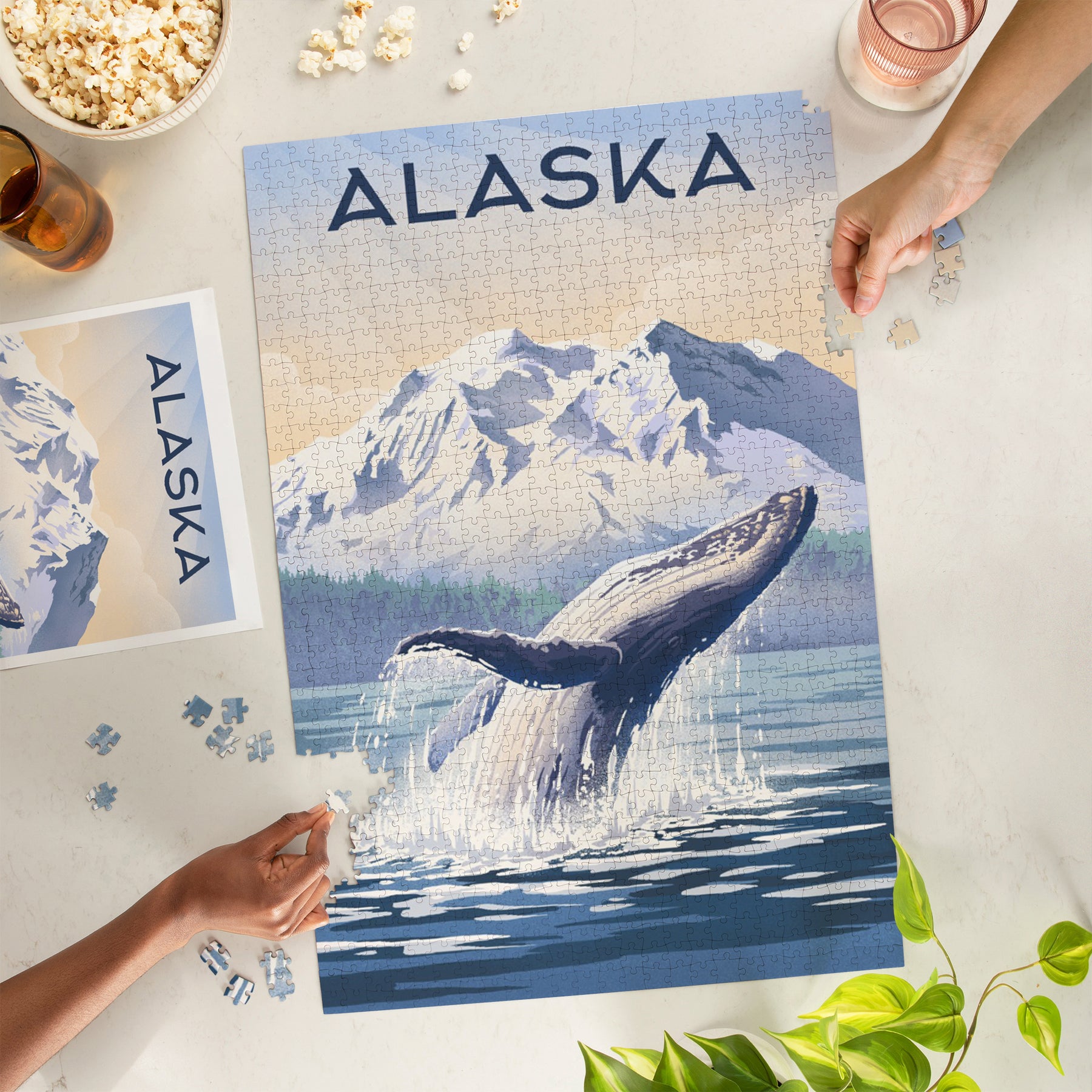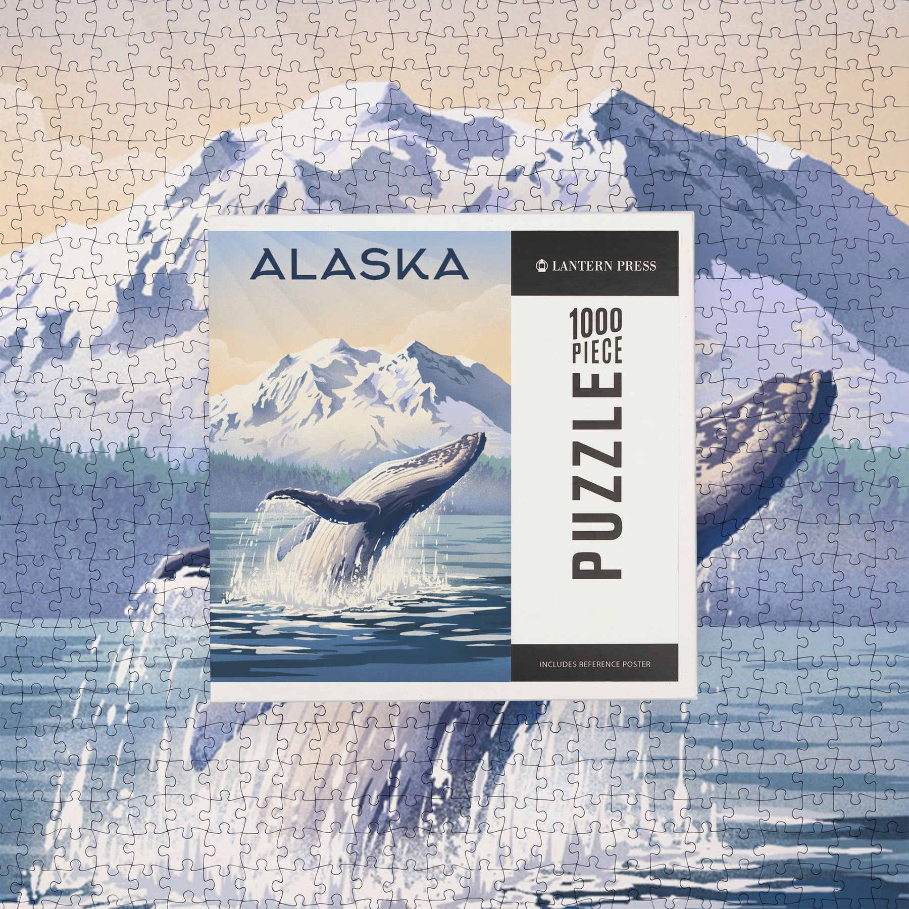 Alaska, Lithograph, Breaching Humpback Whale, Jigsaw Puzzle Puzzle Lantern Press