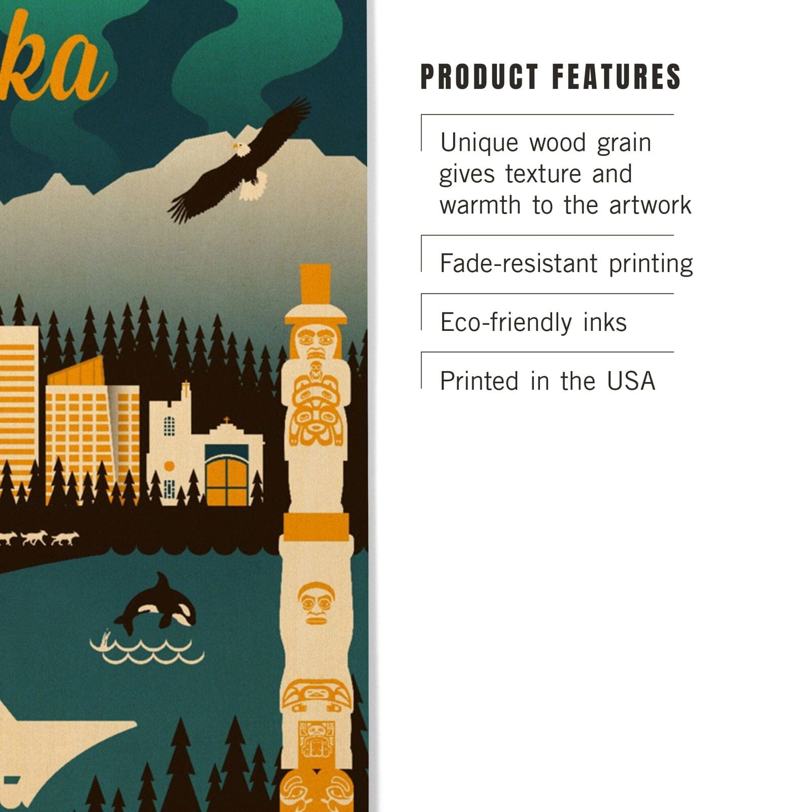 Alaska, Retro Skyline, Lantern Press Artwork, Wood Signs and Postcards Wood Lantern Press