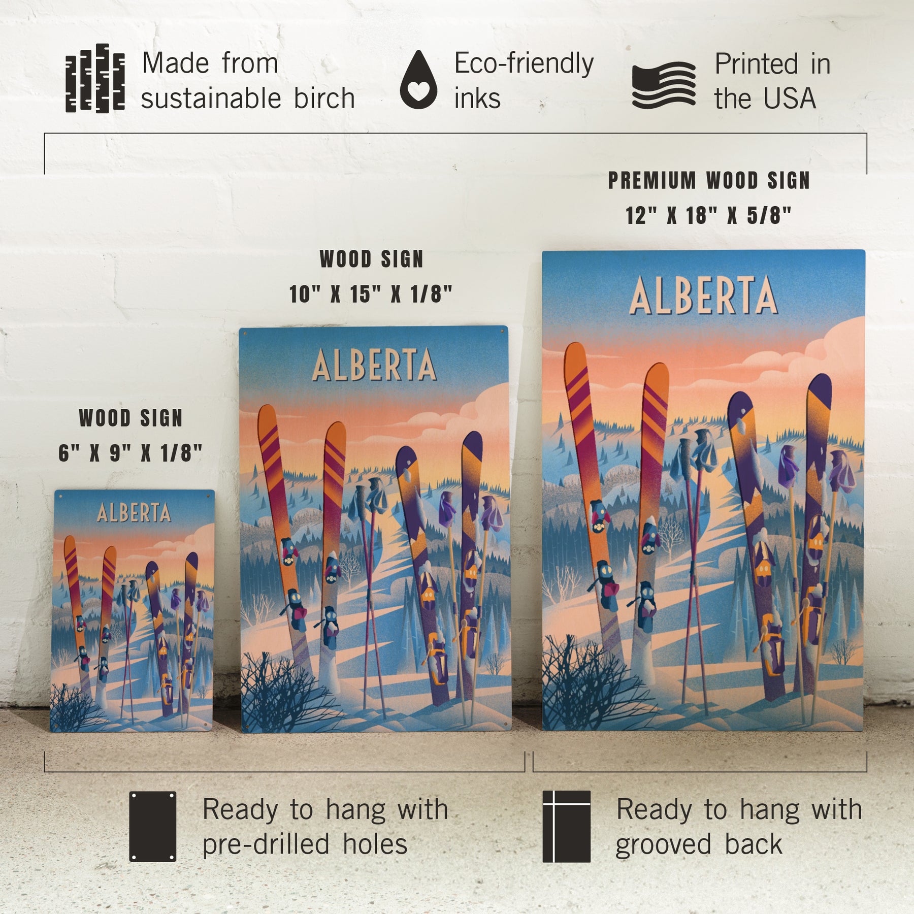 Alberta, Prepare for Takeoff, Skis in Snowbank, Wood Signs and Postcards