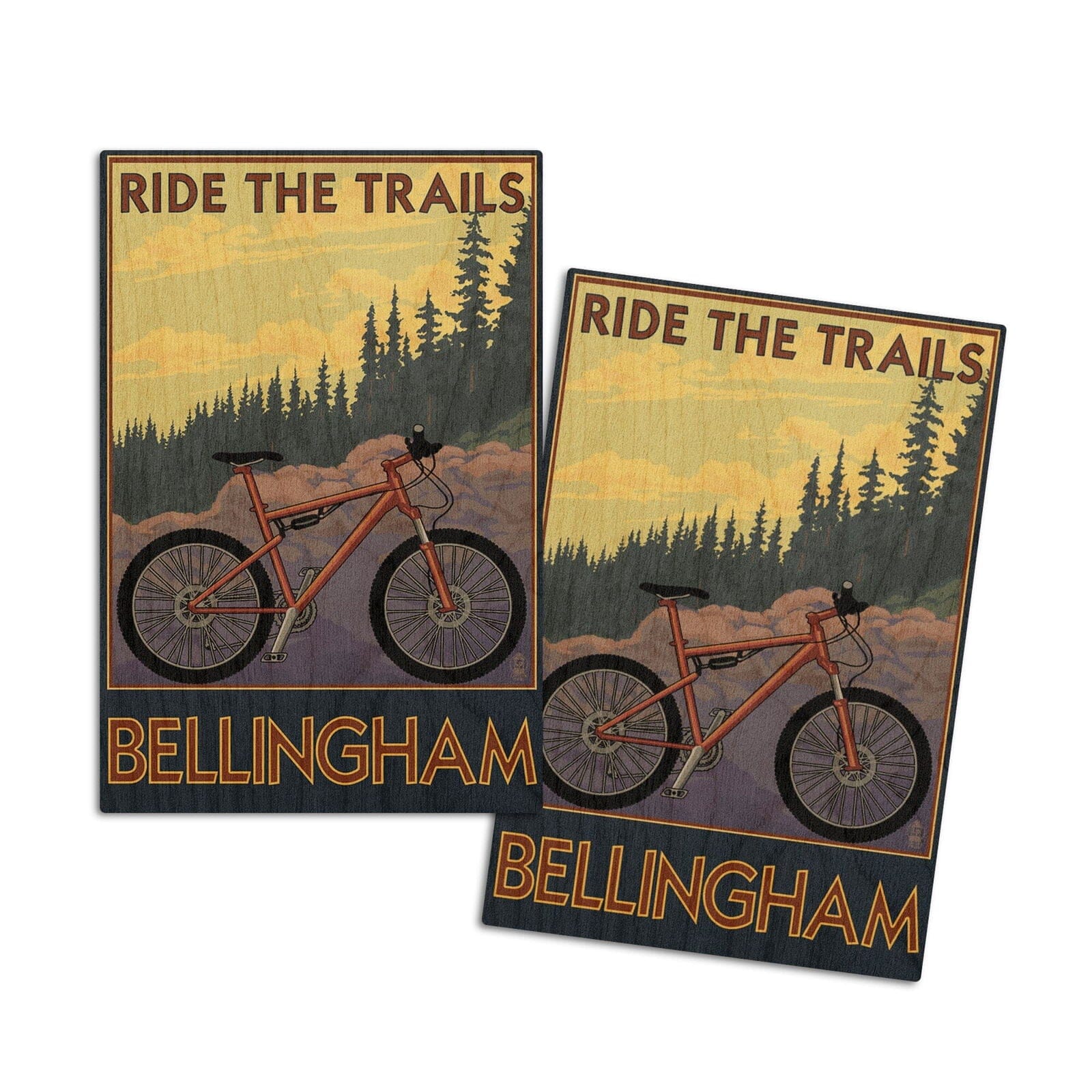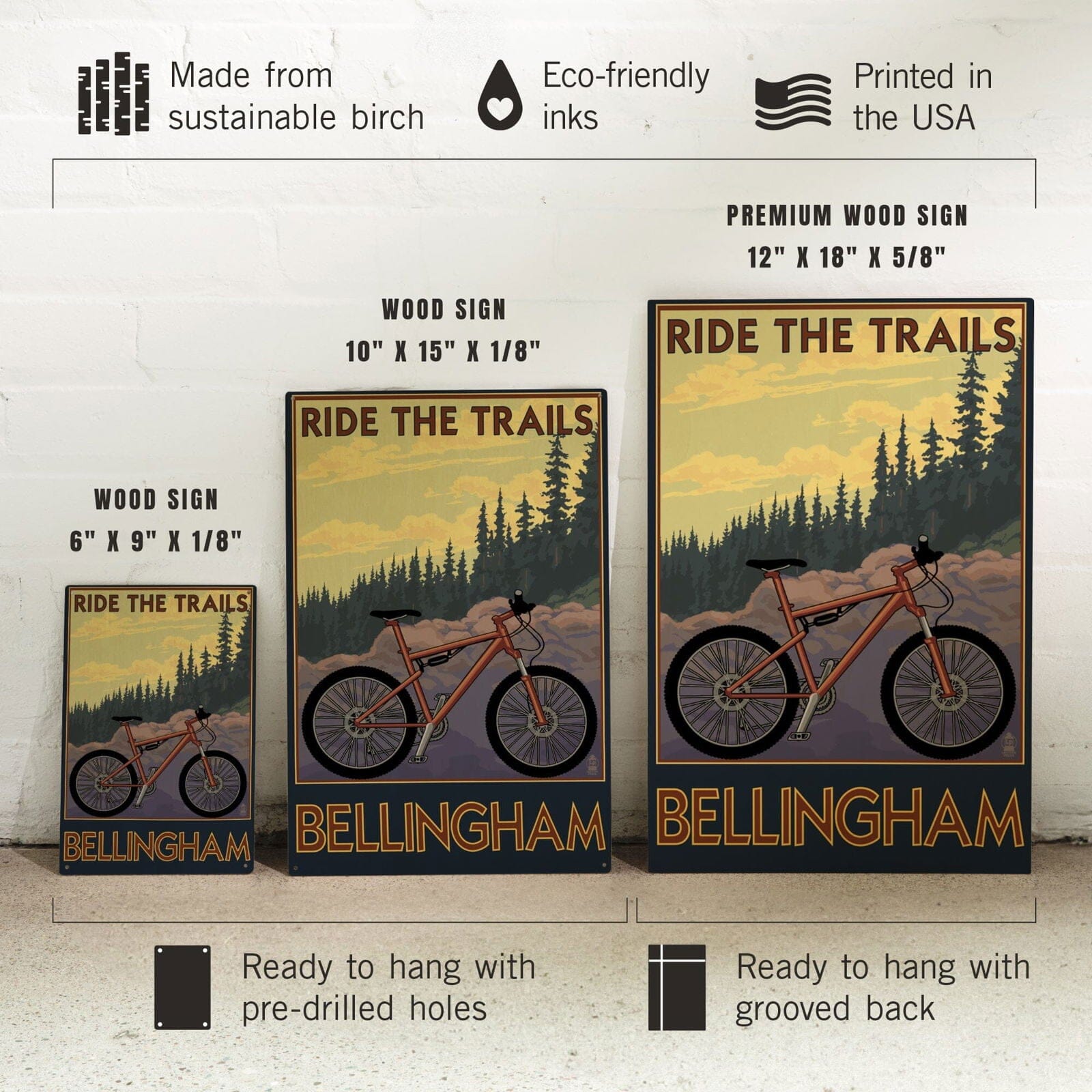 Bellingham, Washington, Ride the Trails, Lantern Press Artwork, Wood Signs and Postcards
