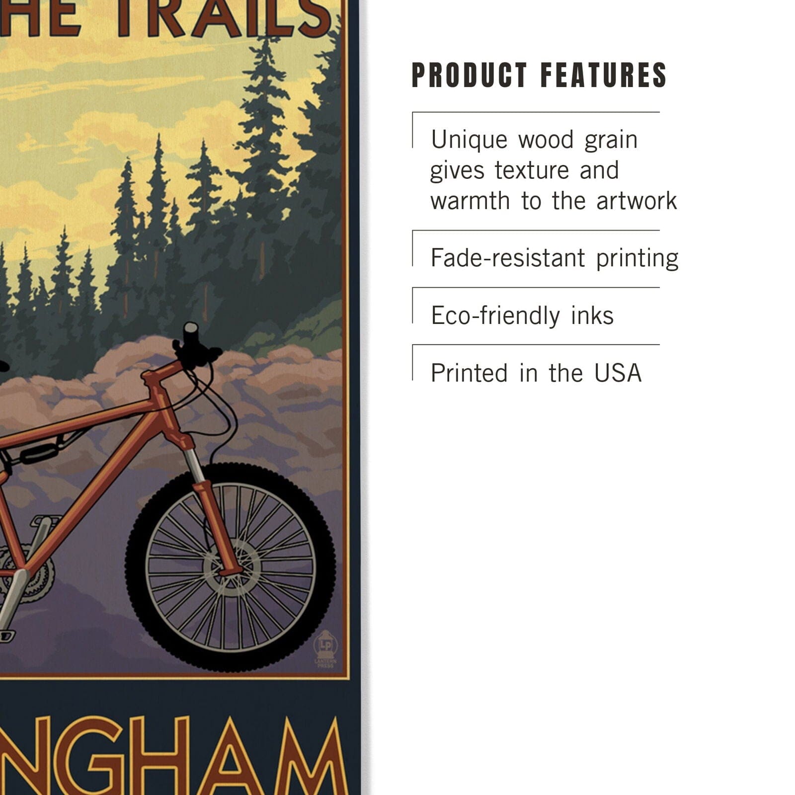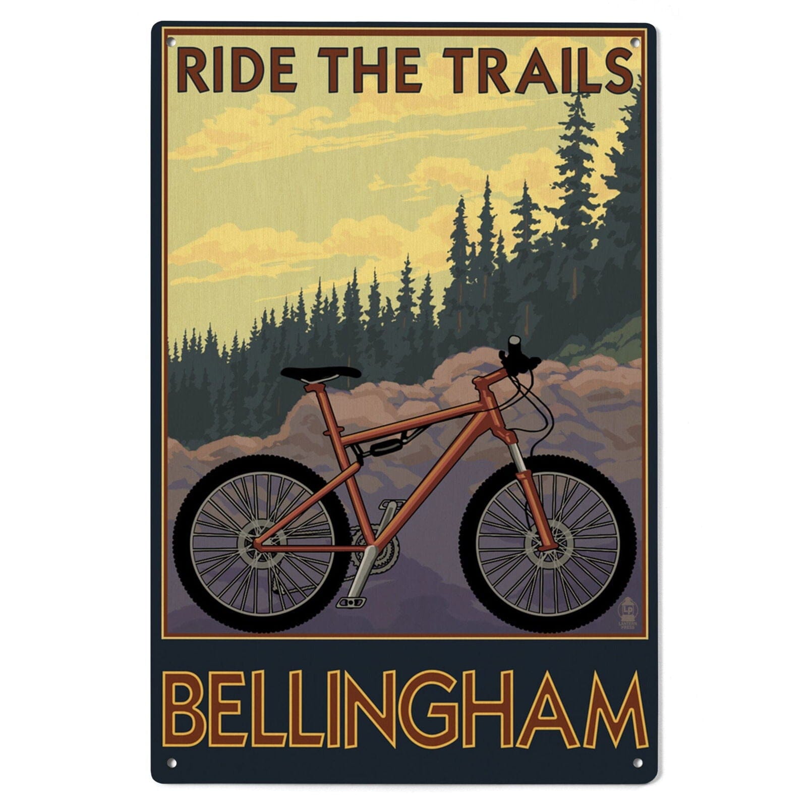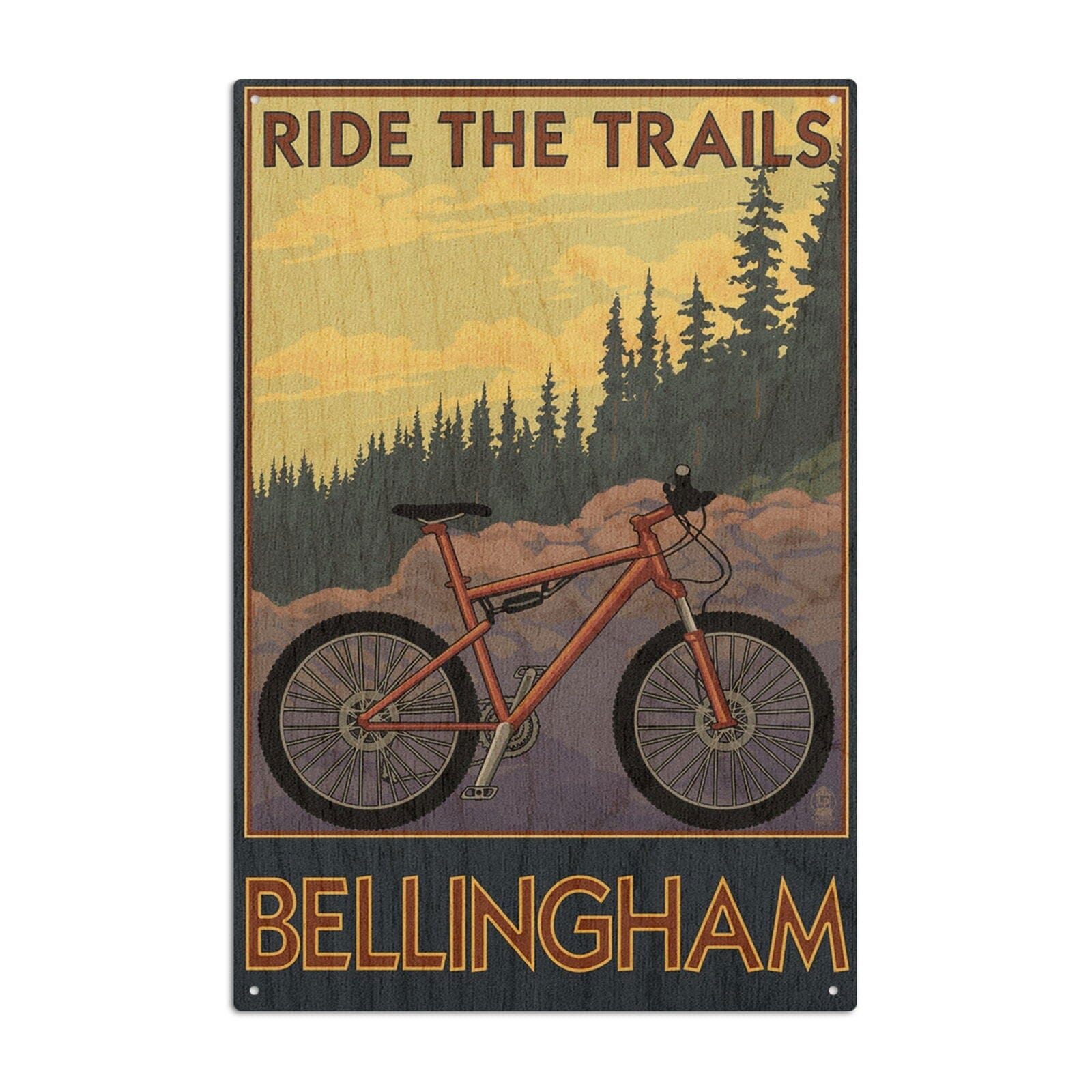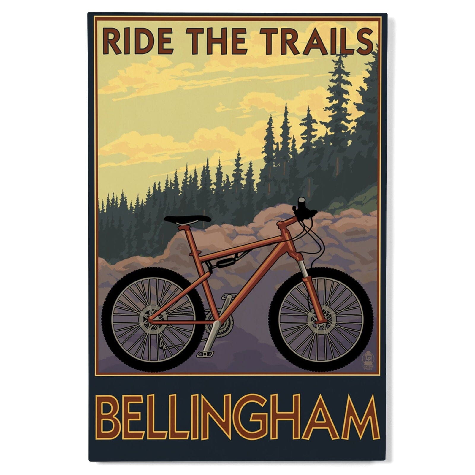 Bellingham, Washington, Ride the Trails, Lantern Press Artwork, Wood Signs and Postcards Wood Lantern Press