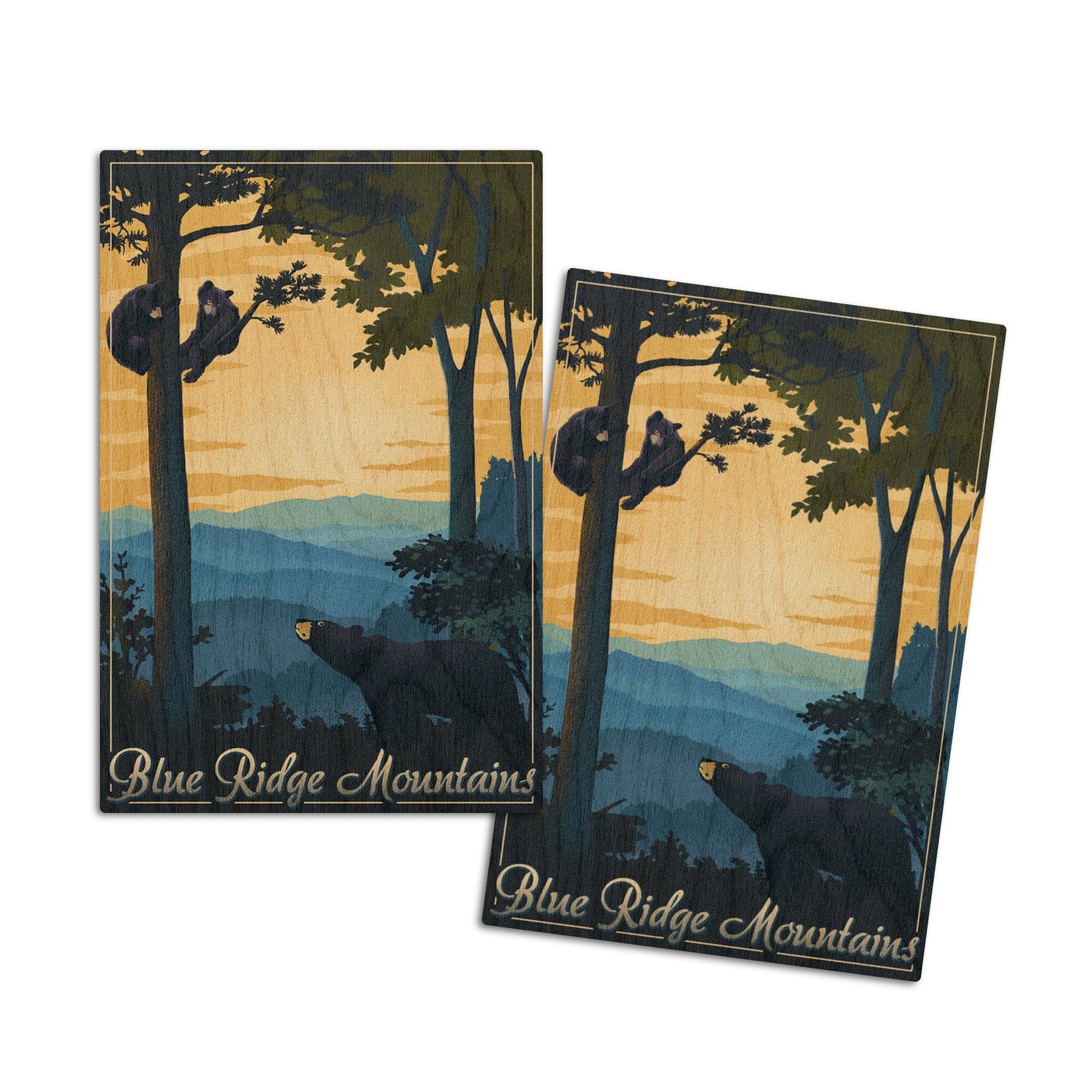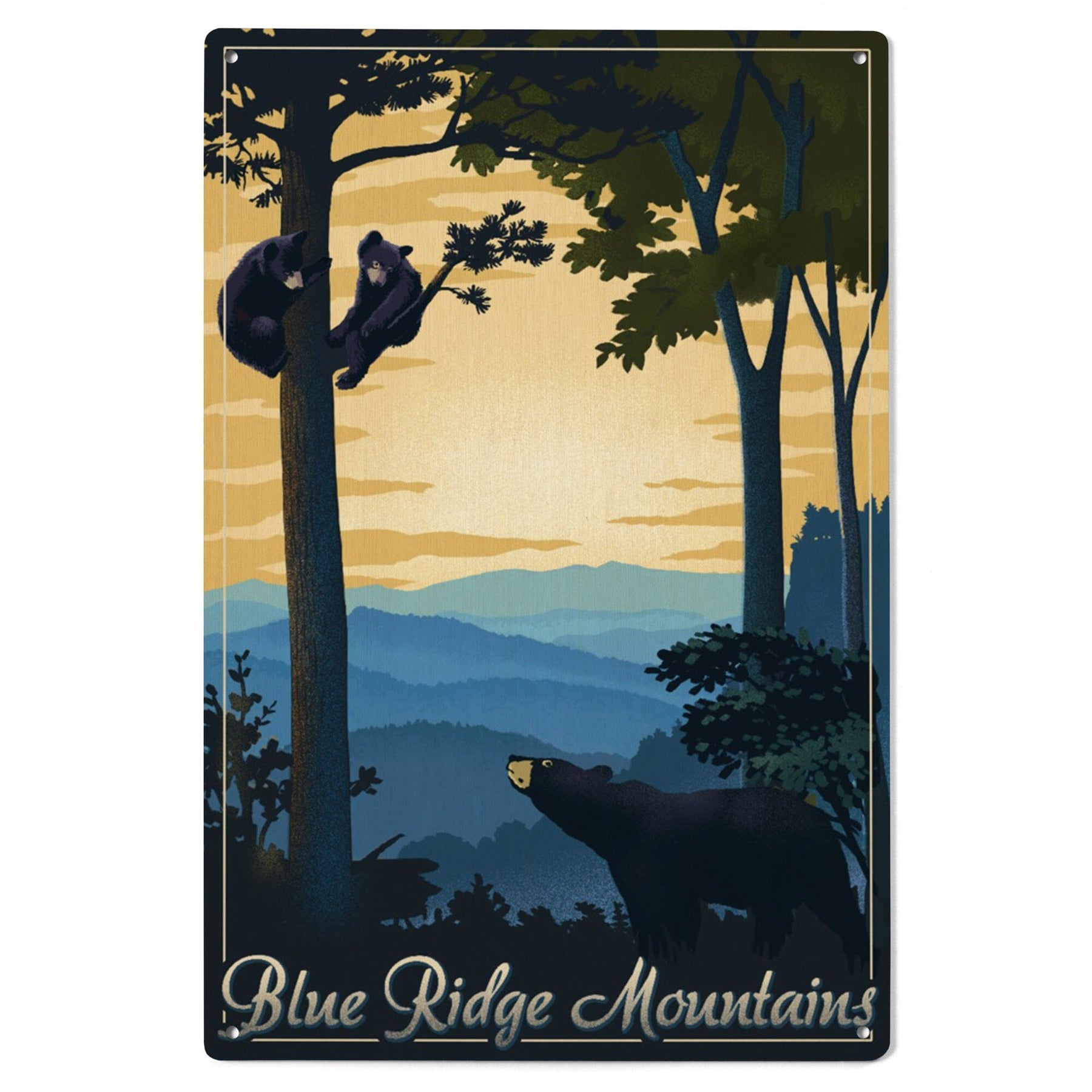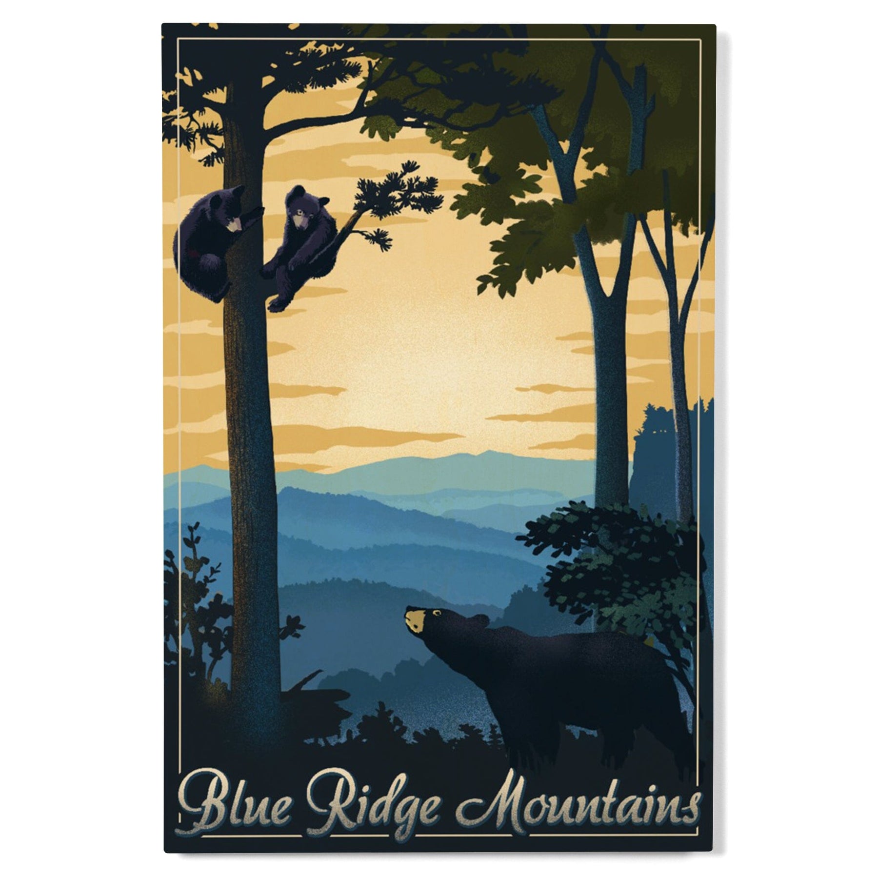Blue Ridge Mountains, Black Bear at Sunset, Lithograph, Lantern Press Artwork, Wood Signs and Postcards - Lantern Press