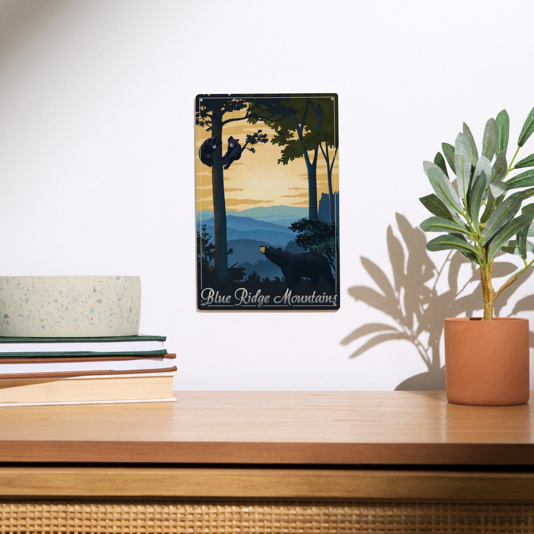 Blue Ridge Mountains, Black Bear at Sunset, Lithograph, Lantern Press Artwork, Wood Signs and Postcards