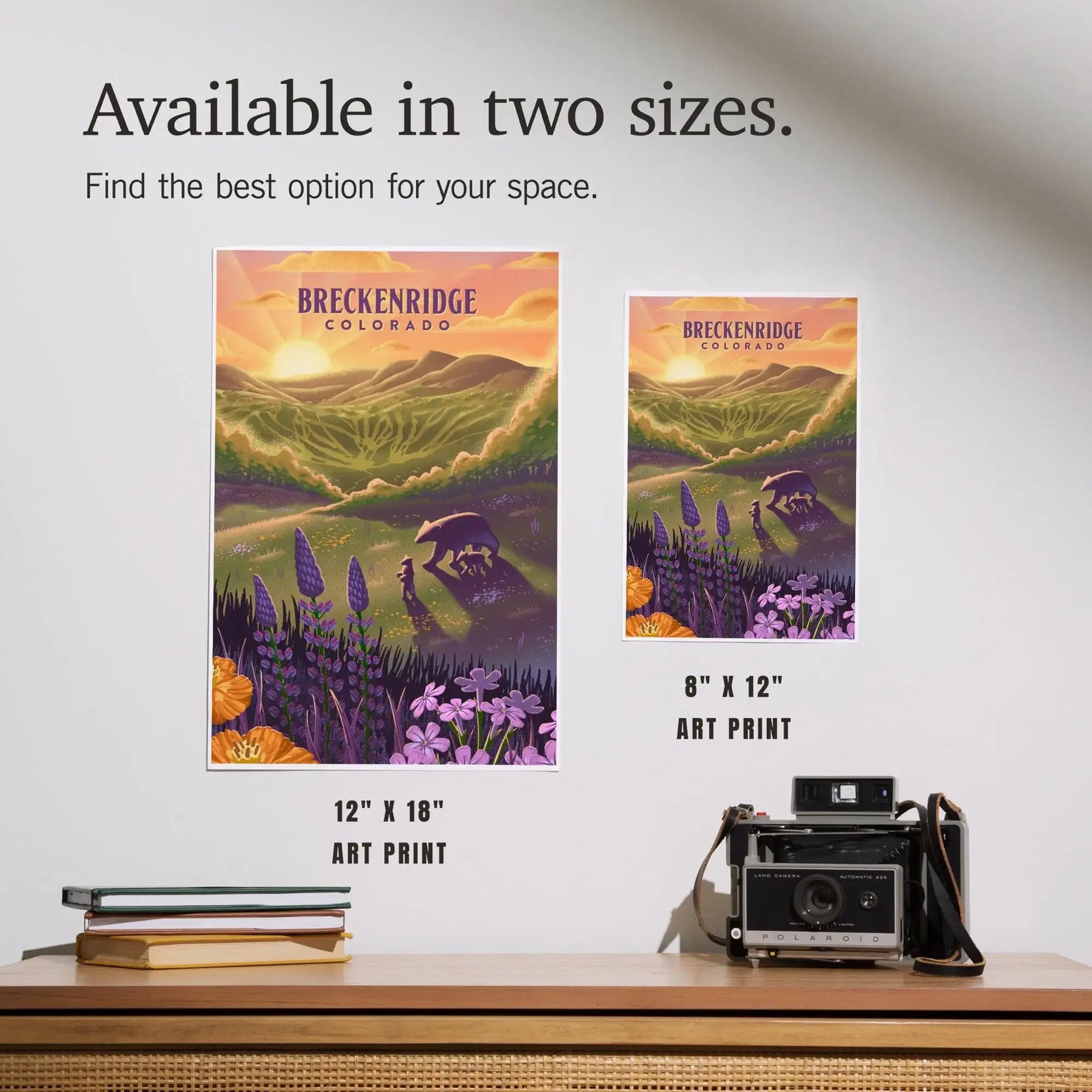 Breckenridge, Colorado, Bear and Spring Flowers, Ski Mountain, Lithograph, Art & Giclee Prints