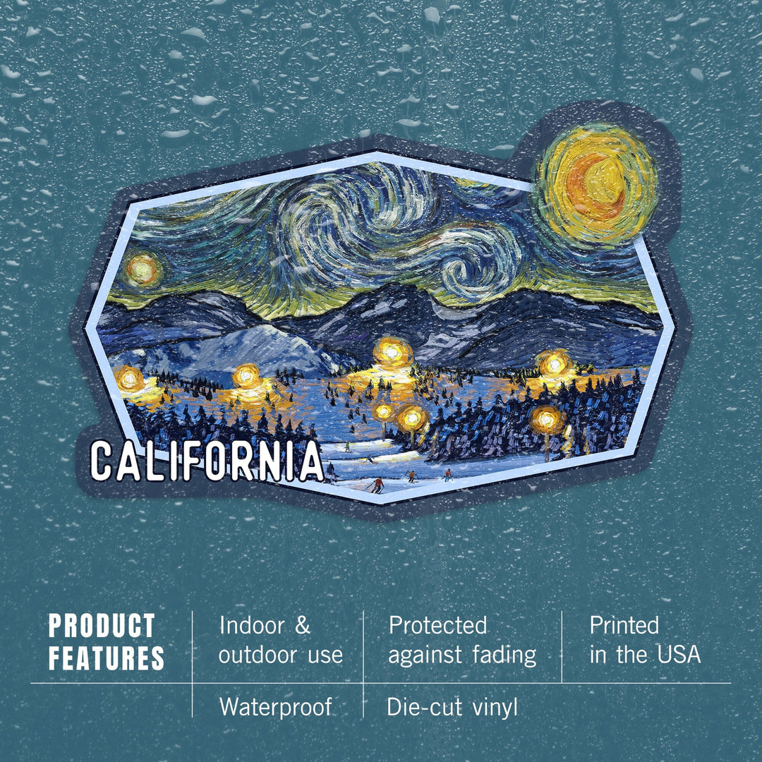 California, Starry Night, Ski Resort, Contour, Vinyl Sticker