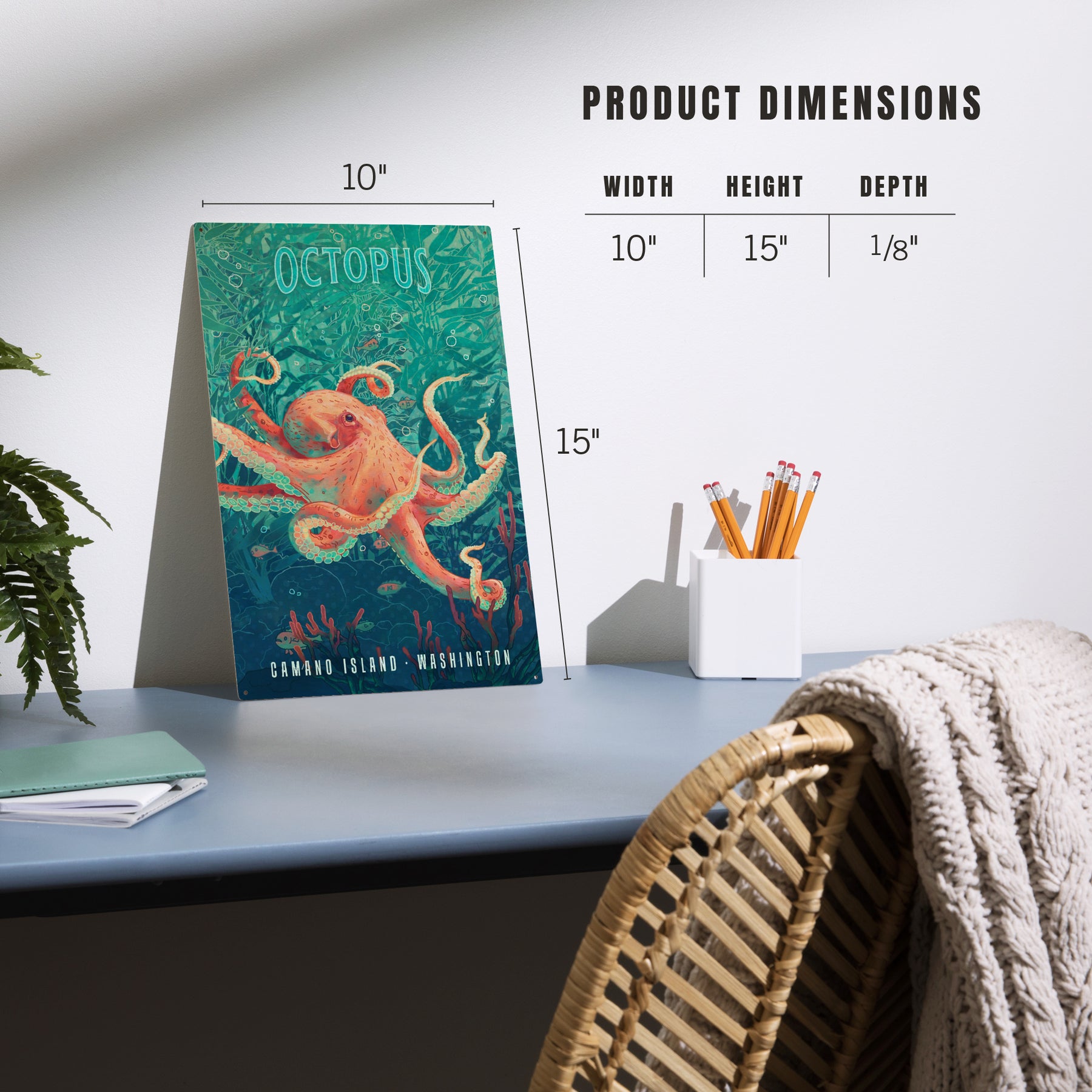 Camano Island, Washington, Fluid Linework, Octopus, Wood Signs and Postcards Wood Lantern Press