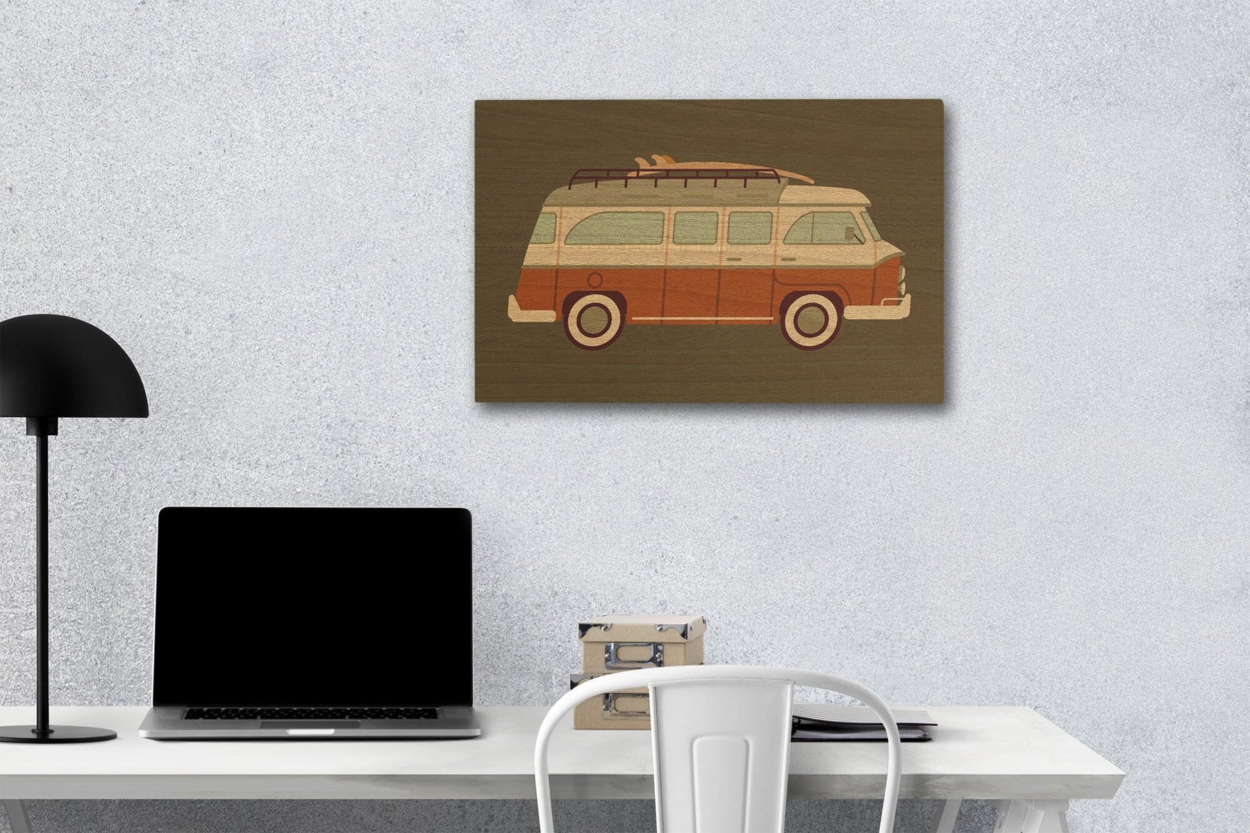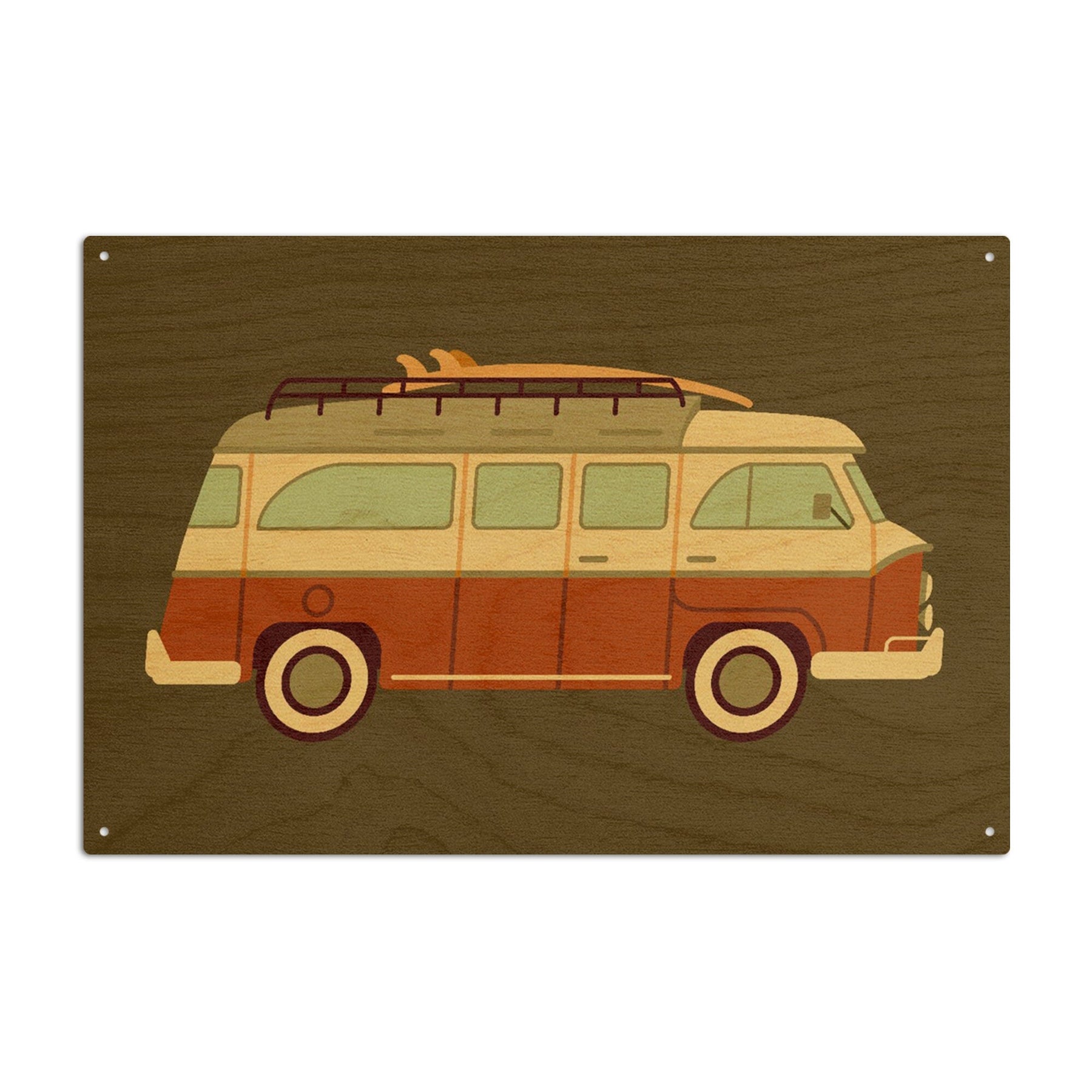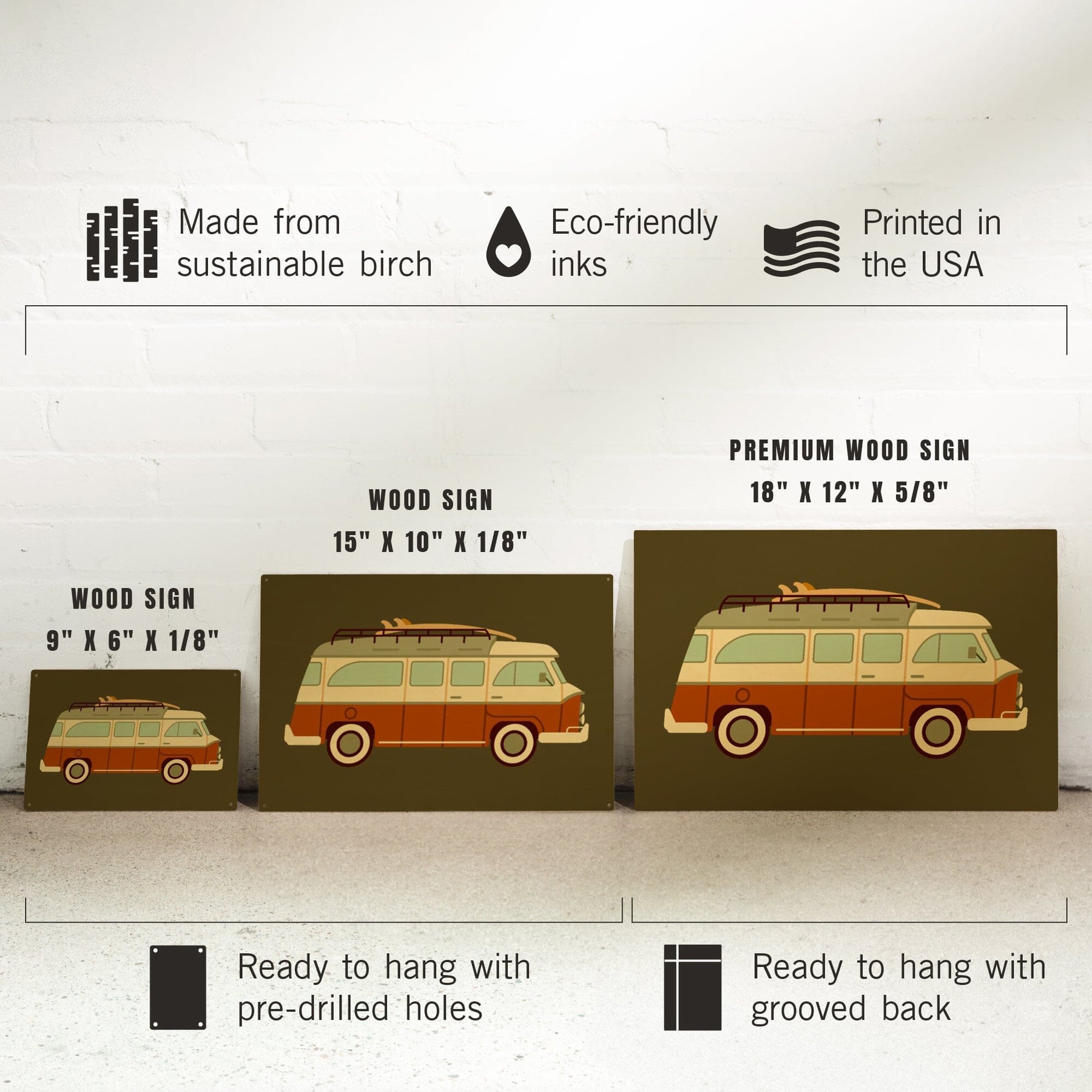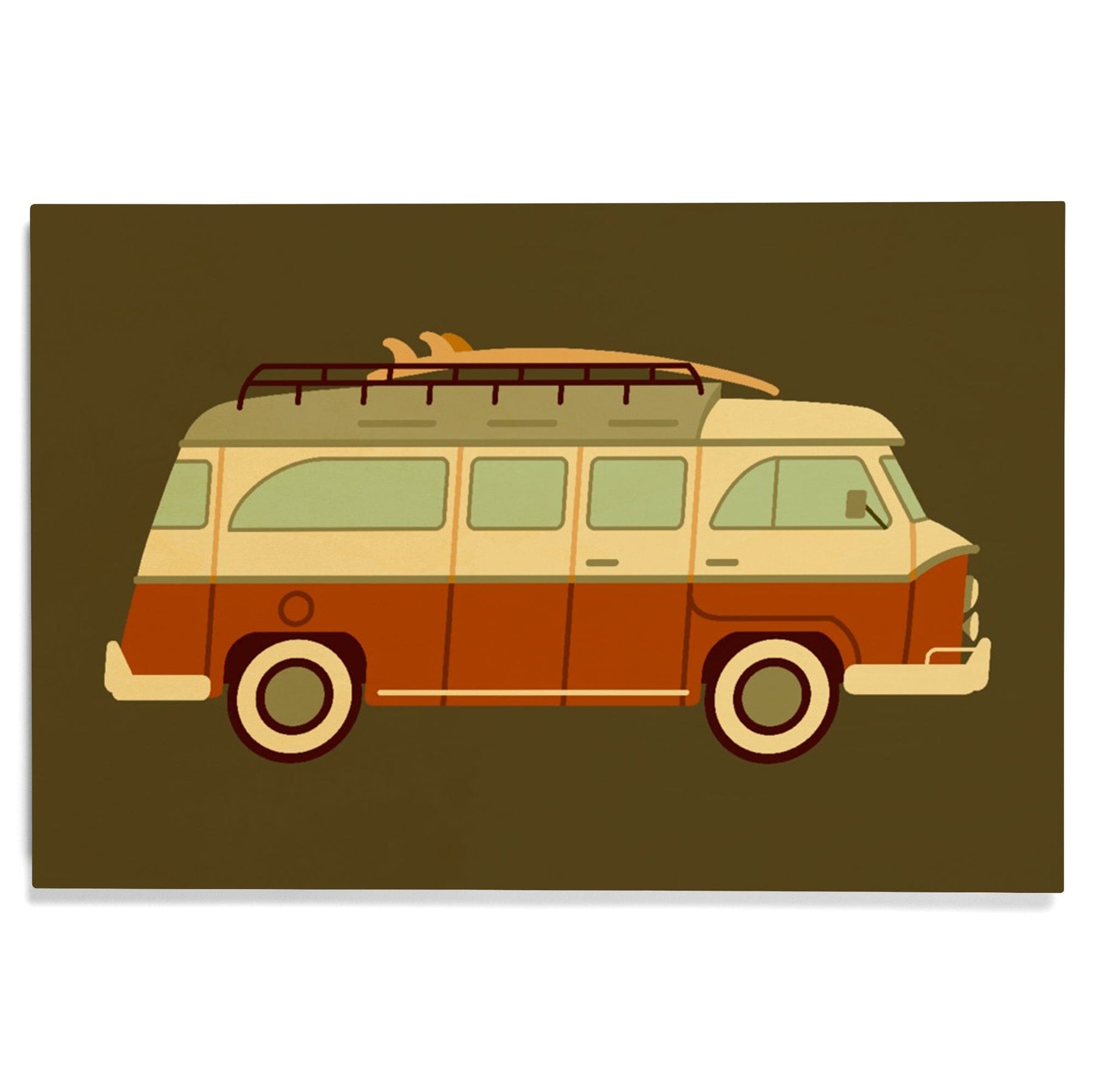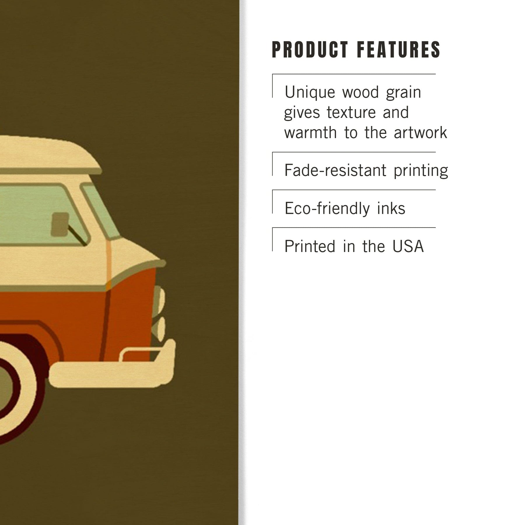 Camper Van with Surfboard, Geometric, Lantern Press Artwork, Wood Signs and Postcards