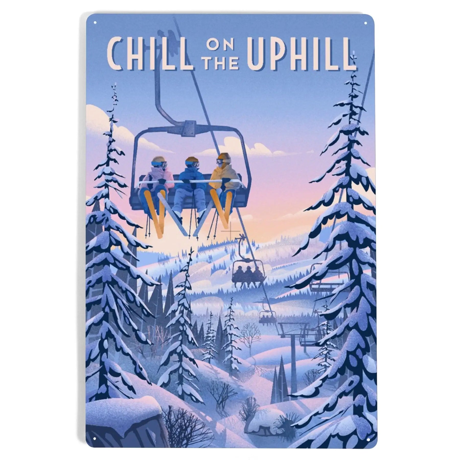 Chill on the Uphill, Ski Lift, Metal Signs Metal Lantern Press