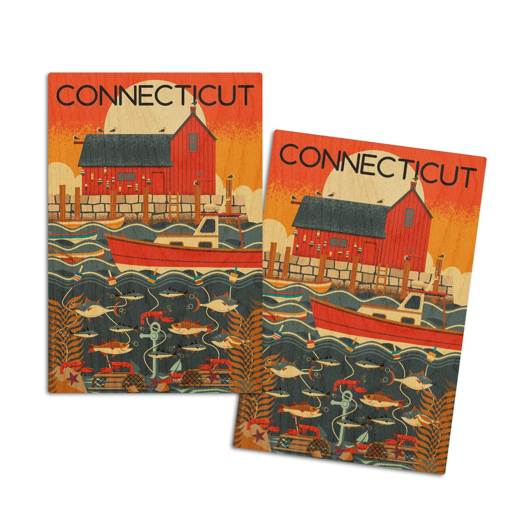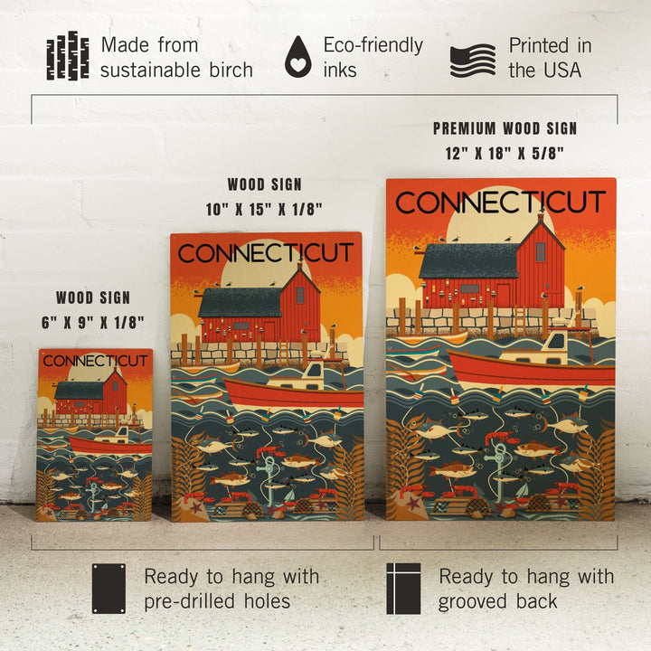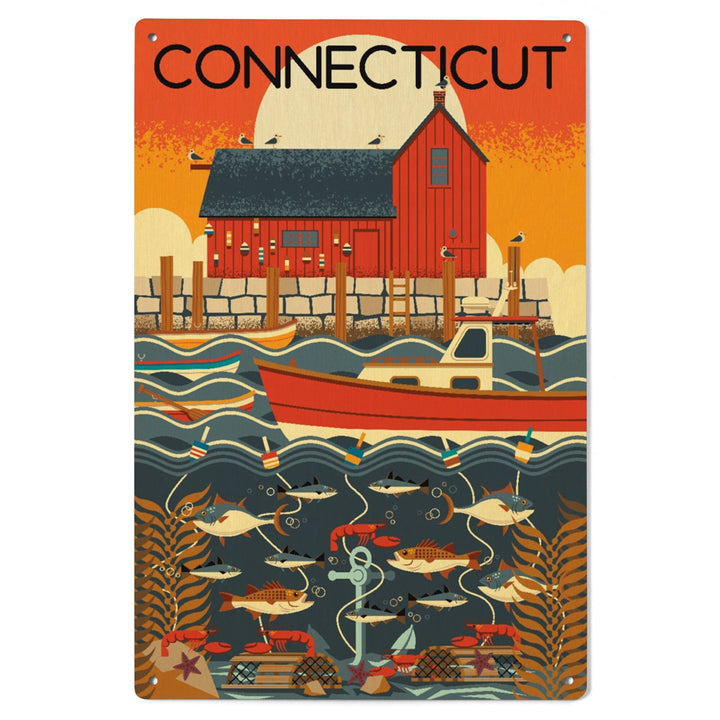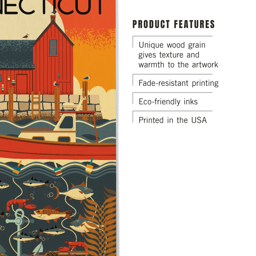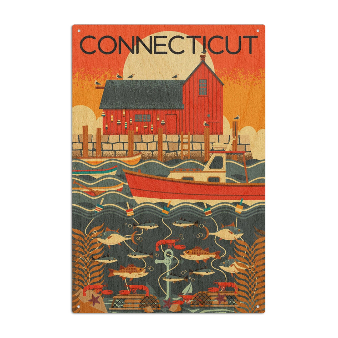 Connecticut, Nautical Geometric, Lantern Press Artwork, Wood Signs and Postcards