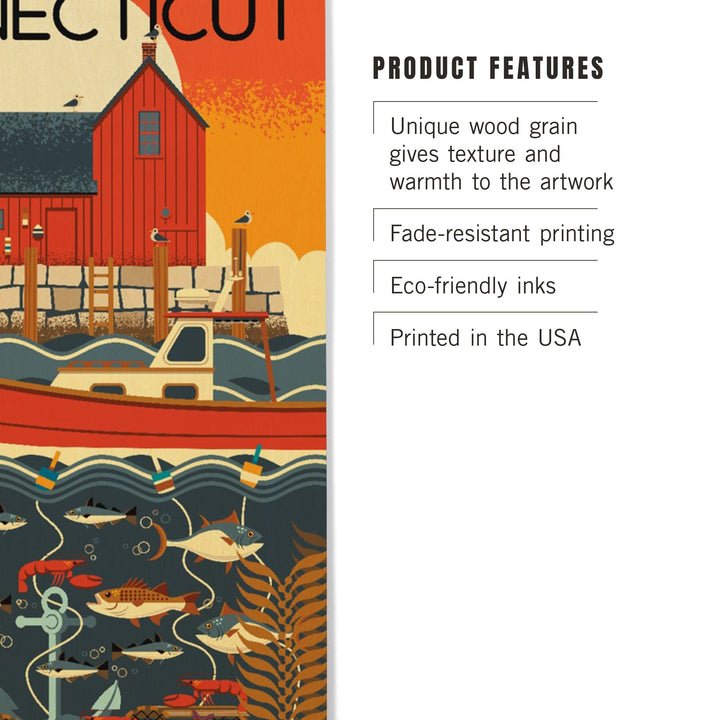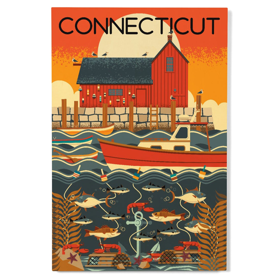 Connecticut, Nautical Geometric, Lantern Press Artwork, Wood Signs and Postcards - Lantern Press