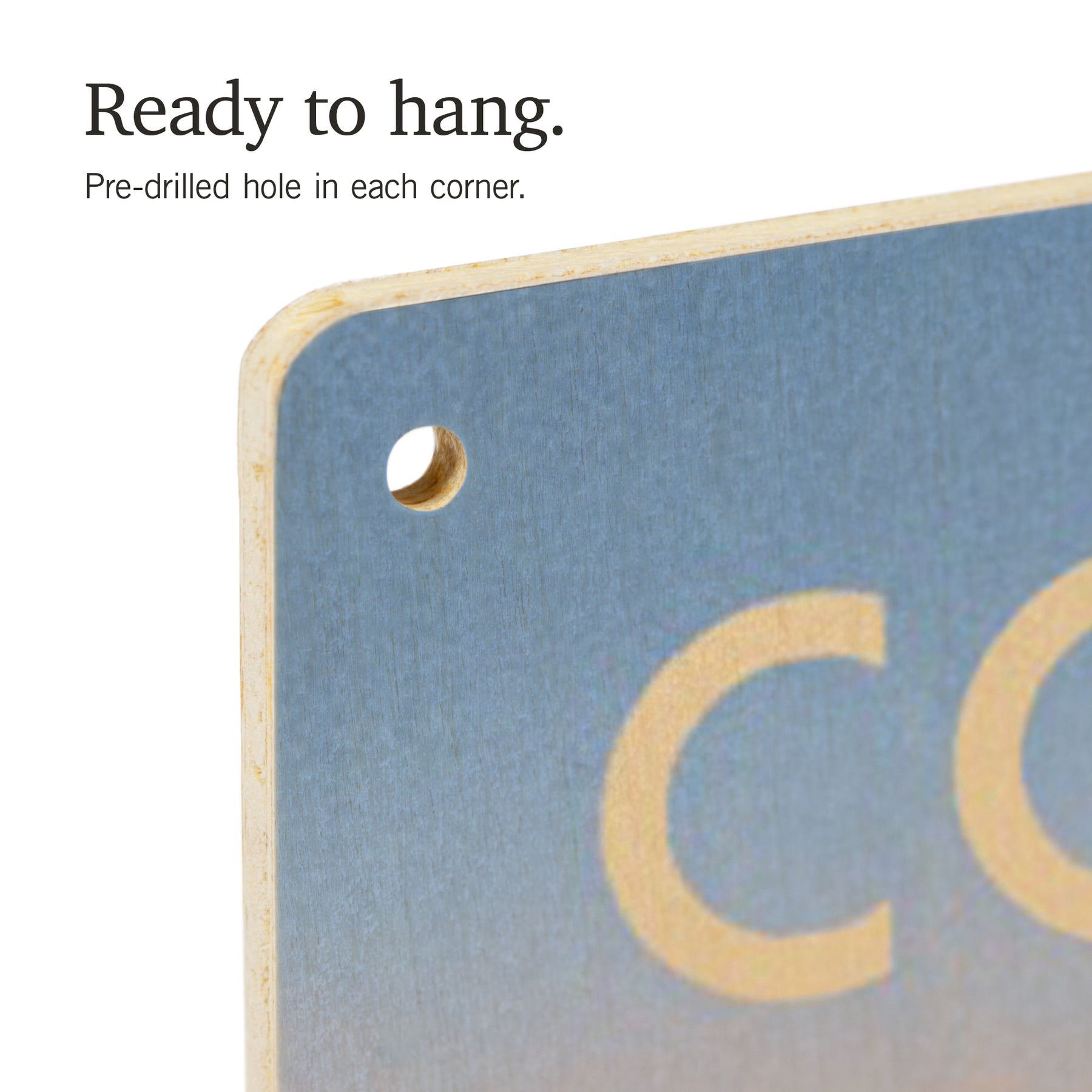 • Hole in each corner, ready to hang
