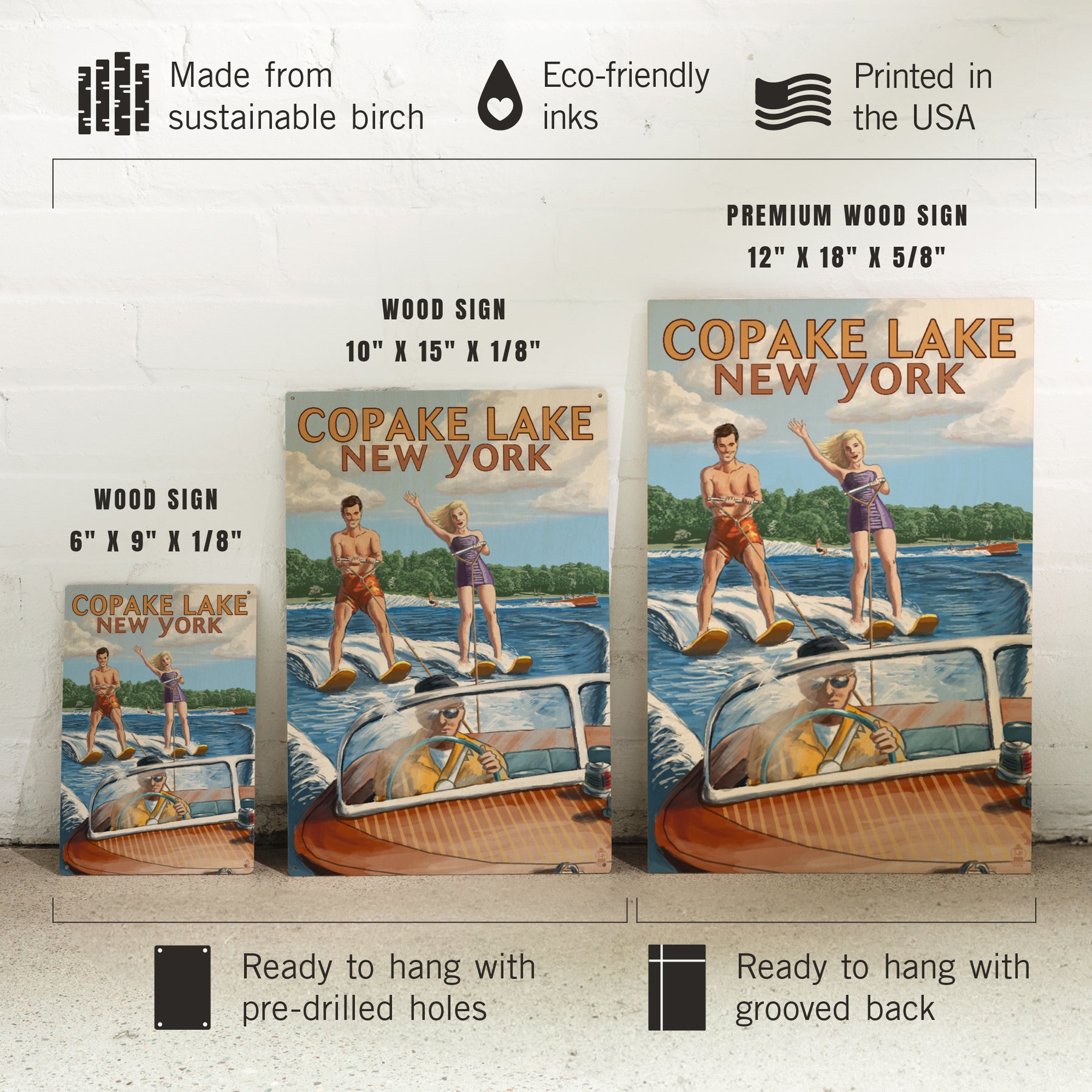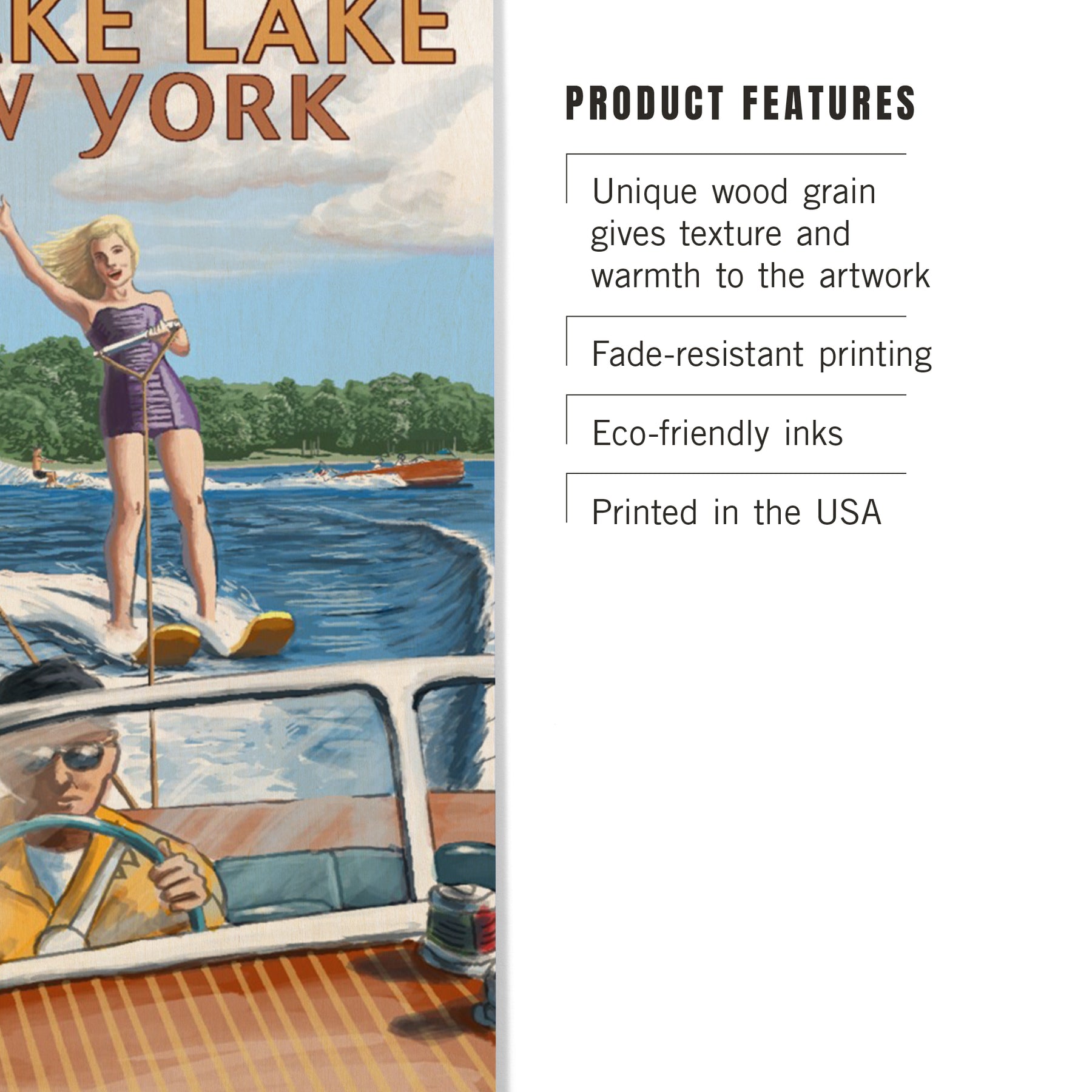 Copake Lake, New York, Painterly, Wake Ski, Wood Signs and Postcards Wood Lantern Press