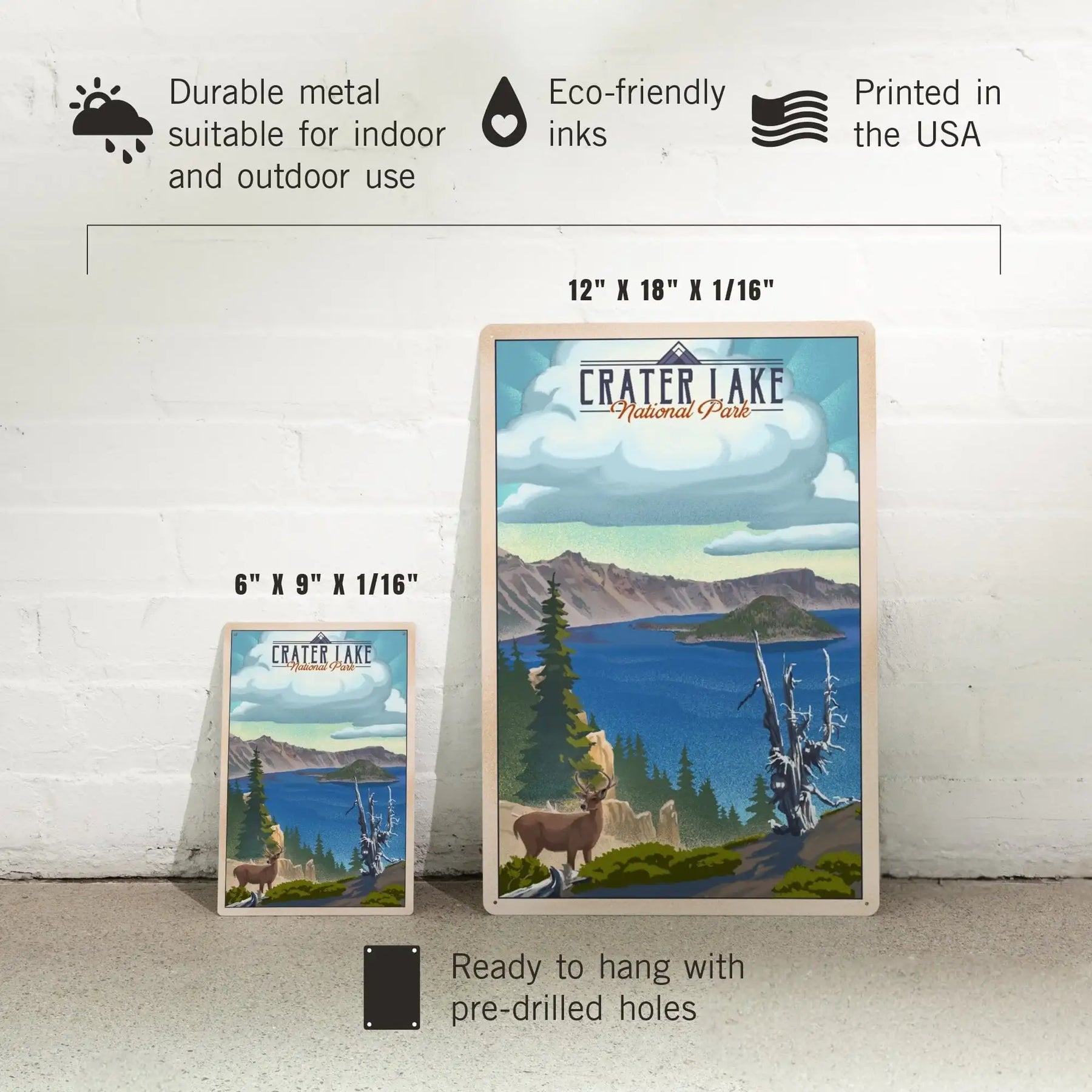 Crater Lake National Park, Lithograph National Park Series, Metal Signs