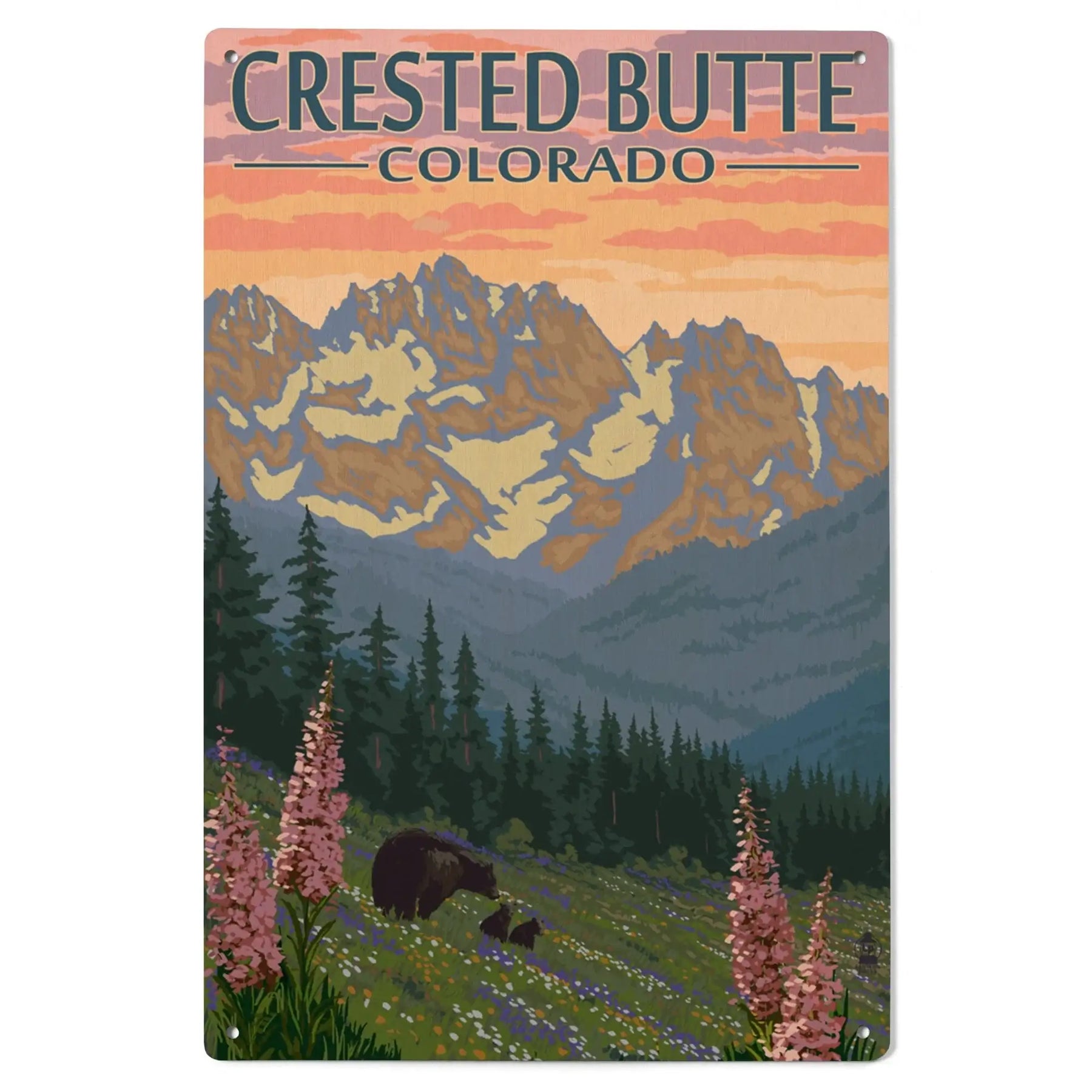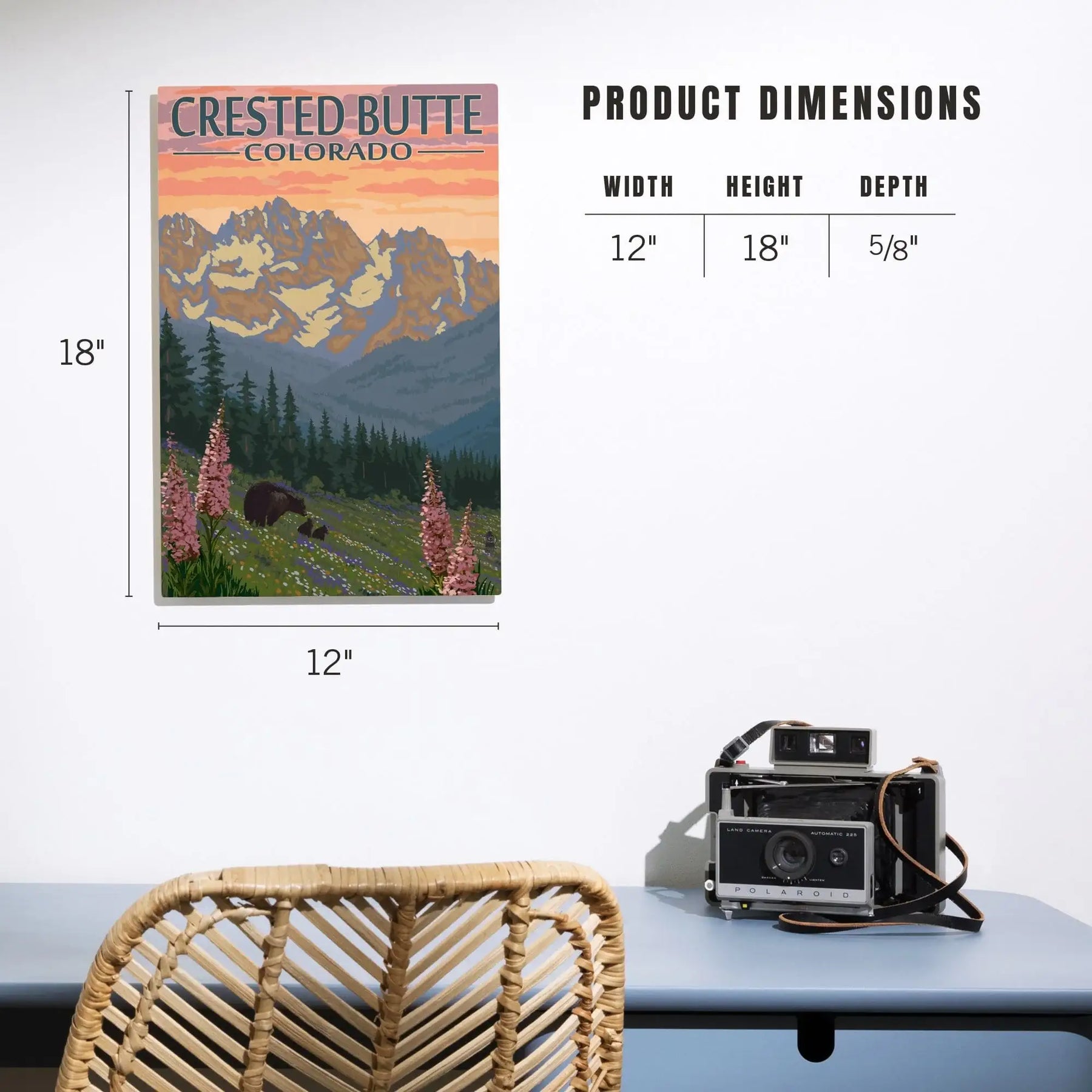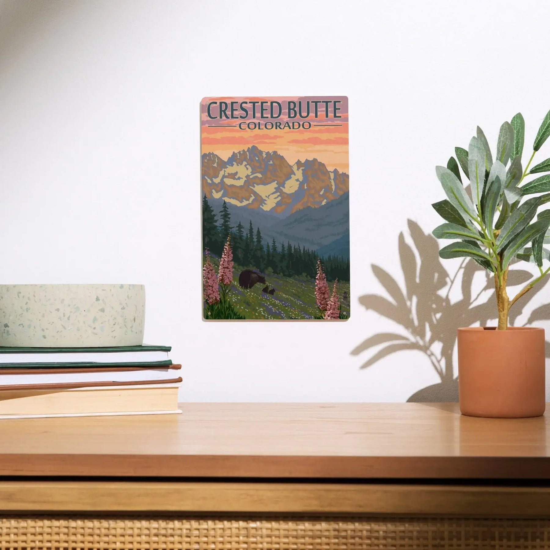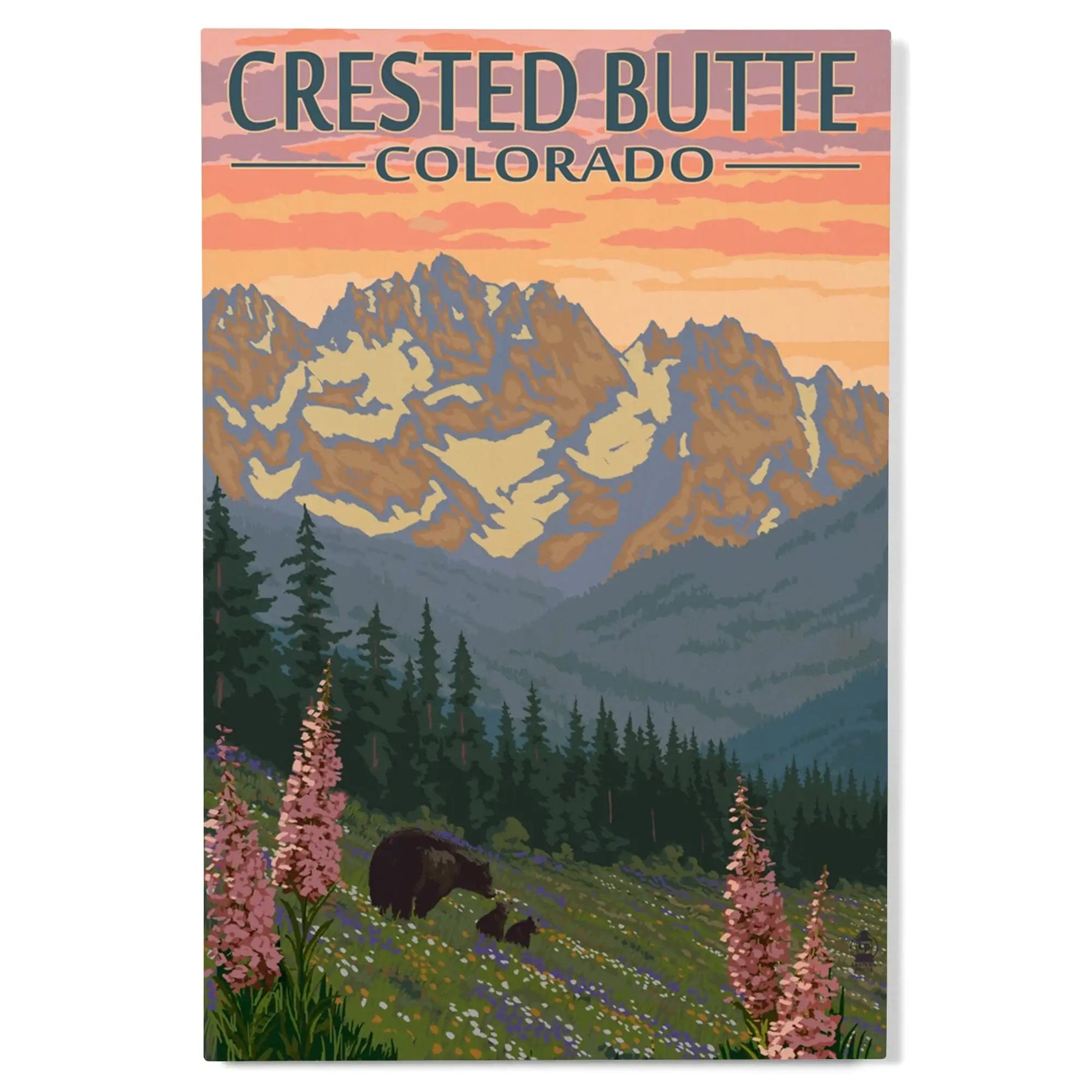 Crested Butte, Colorado, Bear and Cubs with Flowers, Lantern Press Artwork, Wood Signs and Postcards
