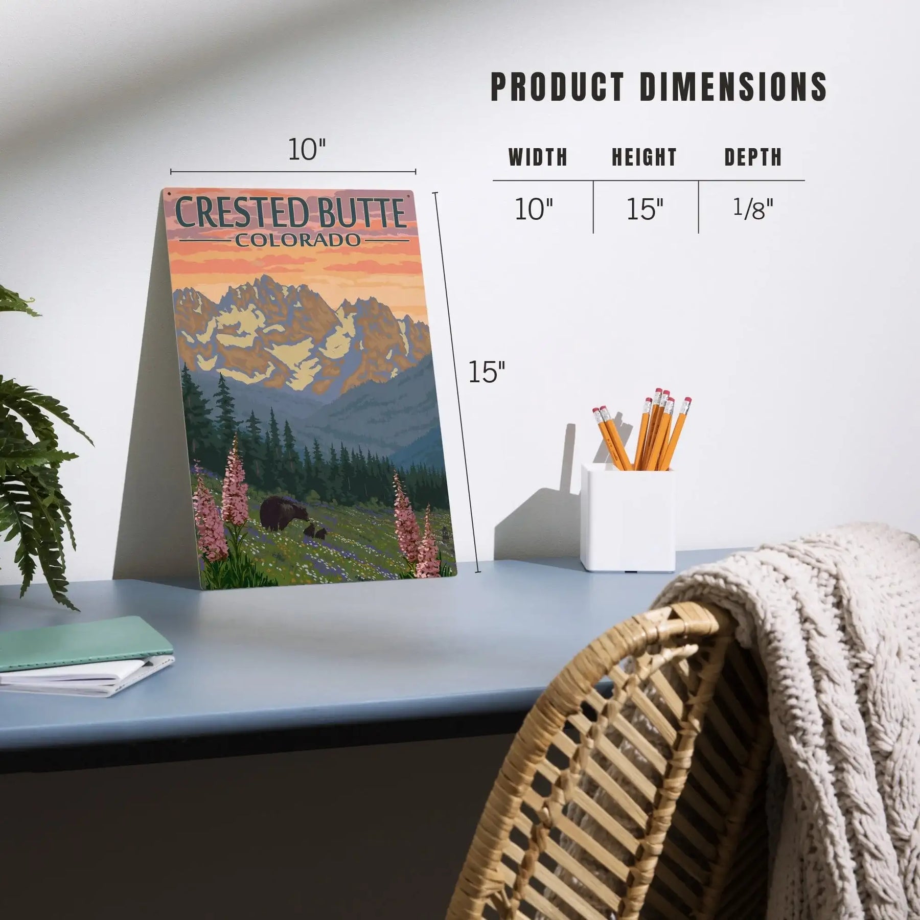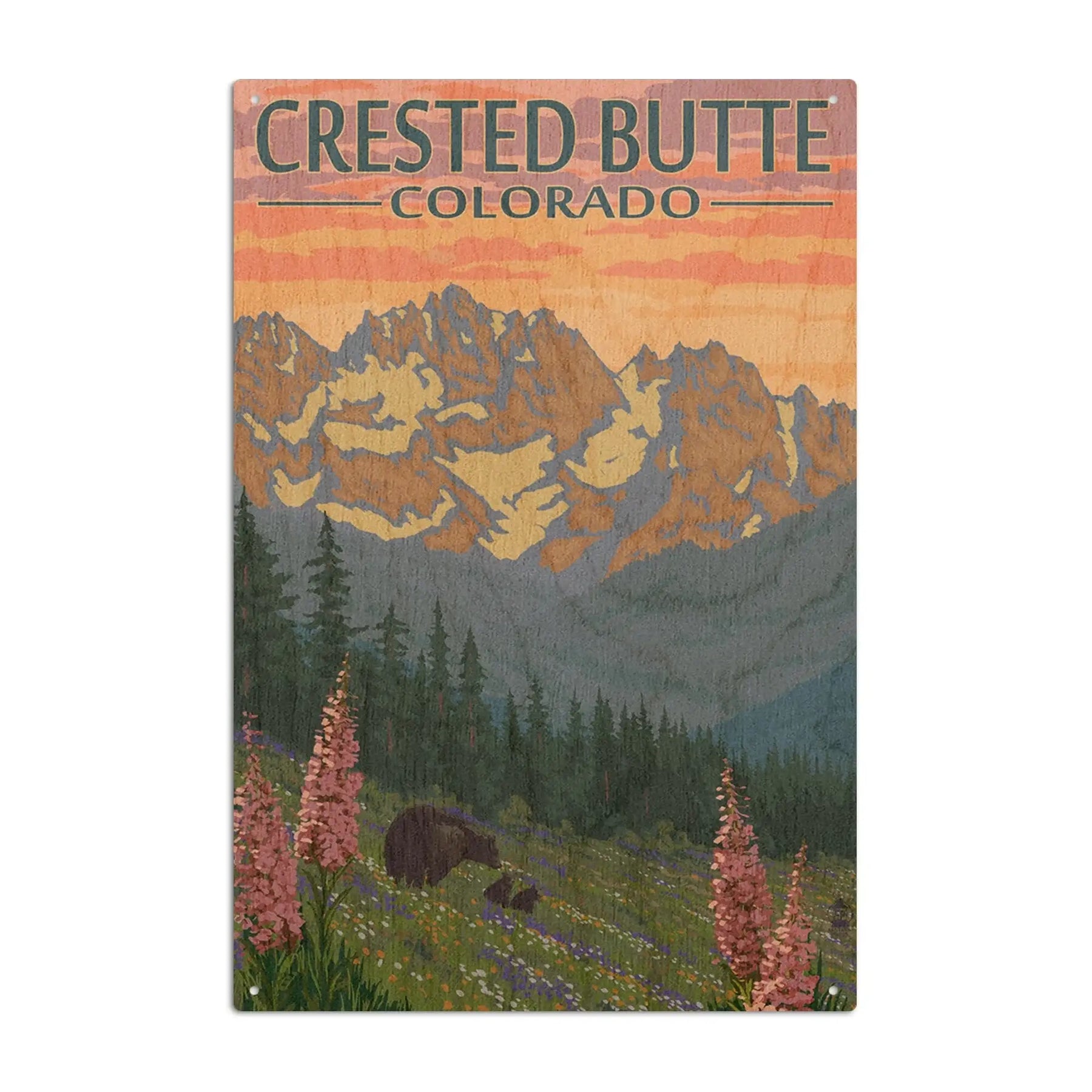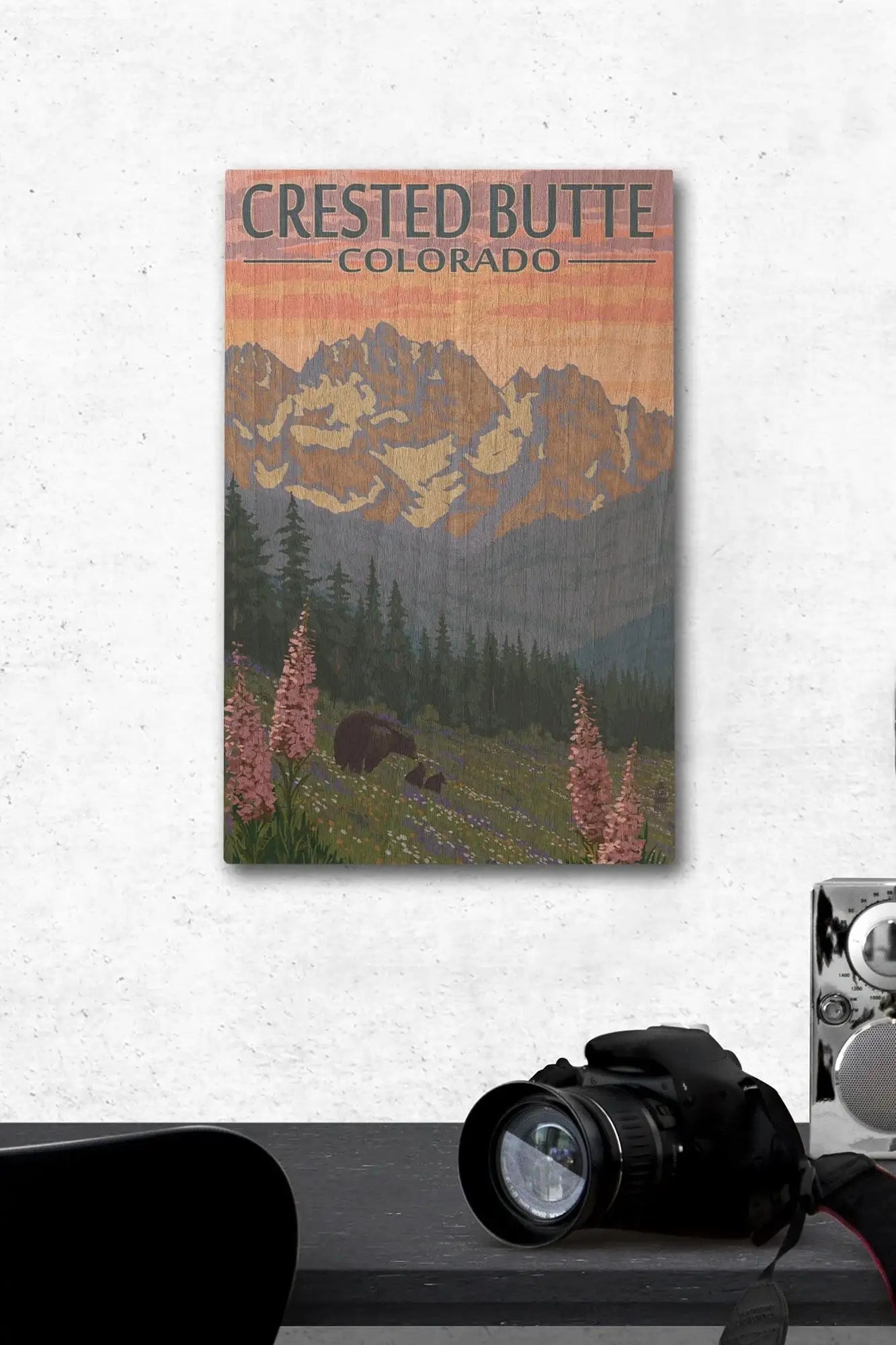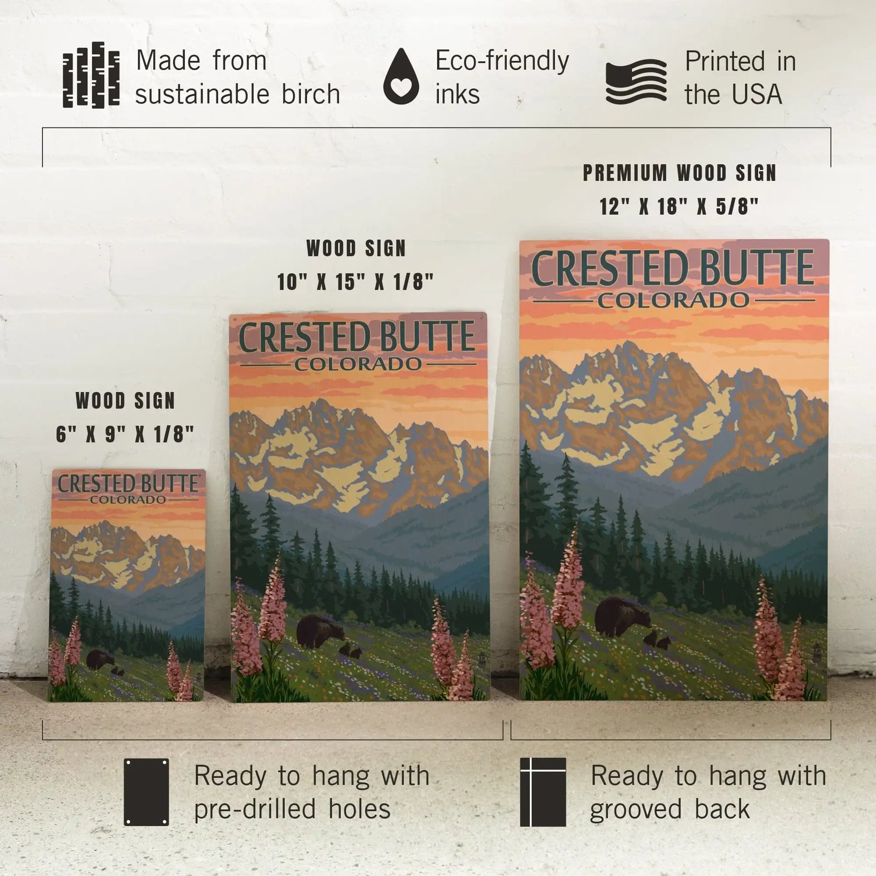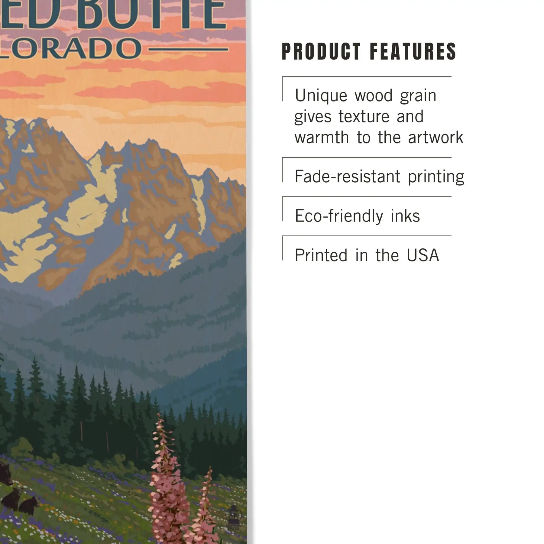 Crested Butte, Colorado, Bear and Cubs with Flowers, Lantern Press Artwork, Wood Signs and Postcards