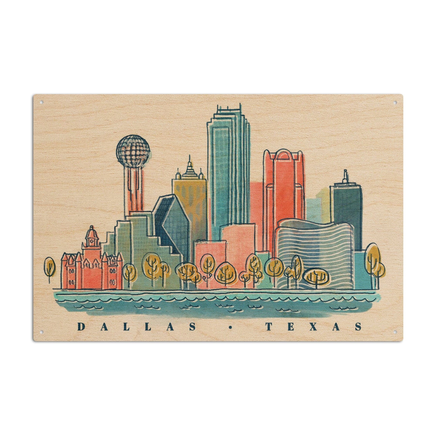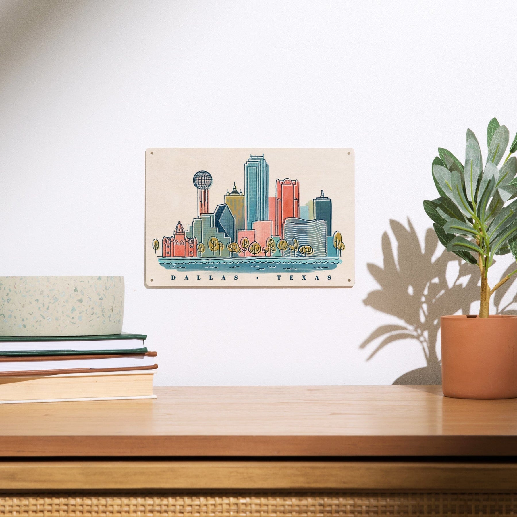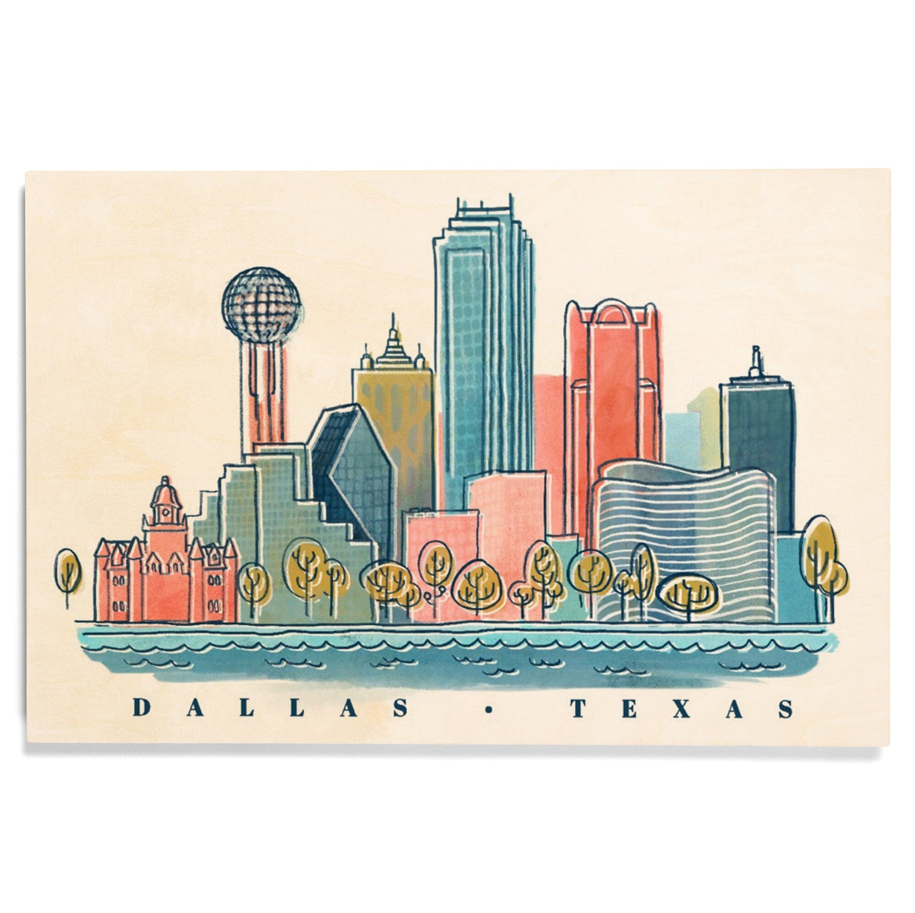 Dallas, Texas, Whimsy City Collection, Skyline, Wood Signs and Postcards - Lantern Press