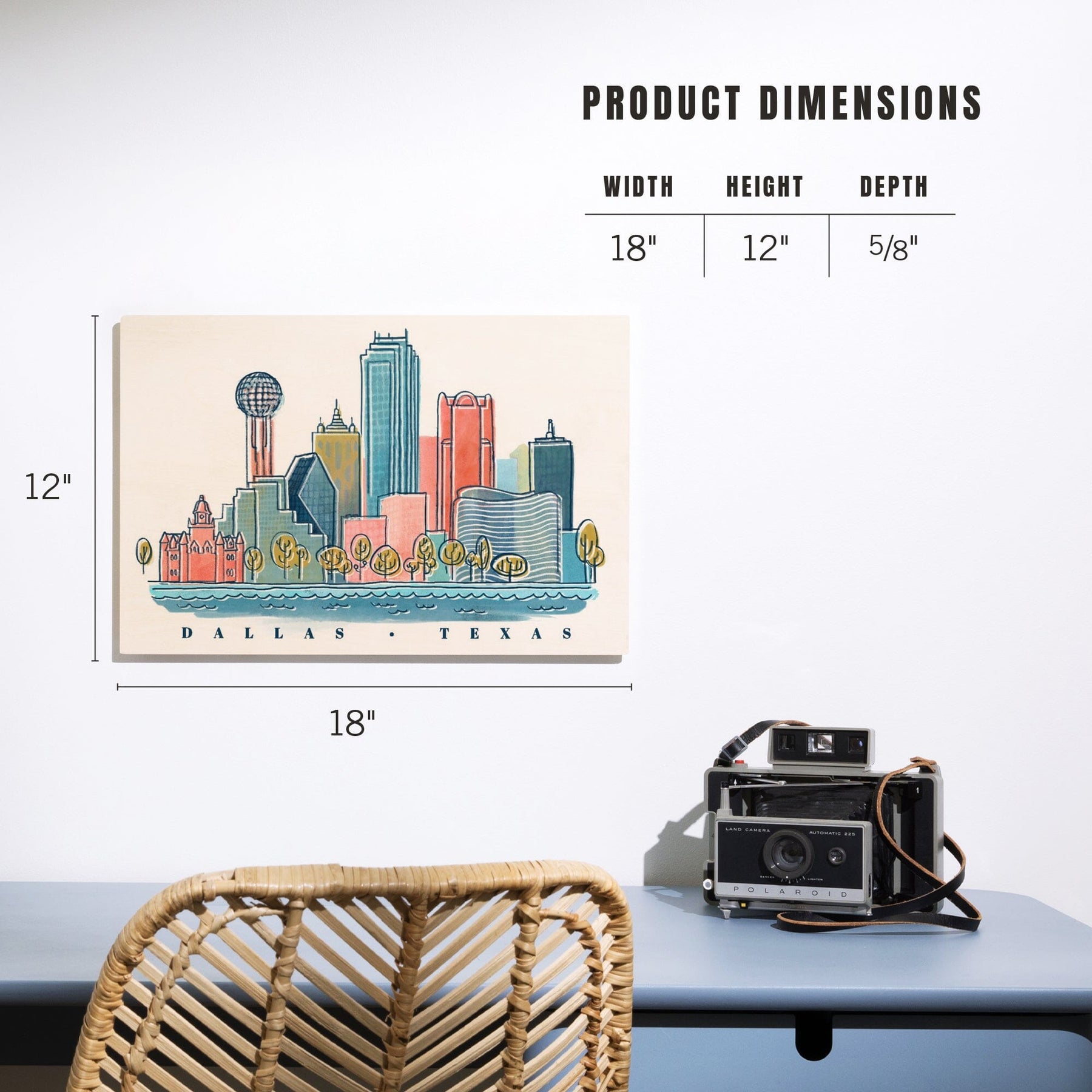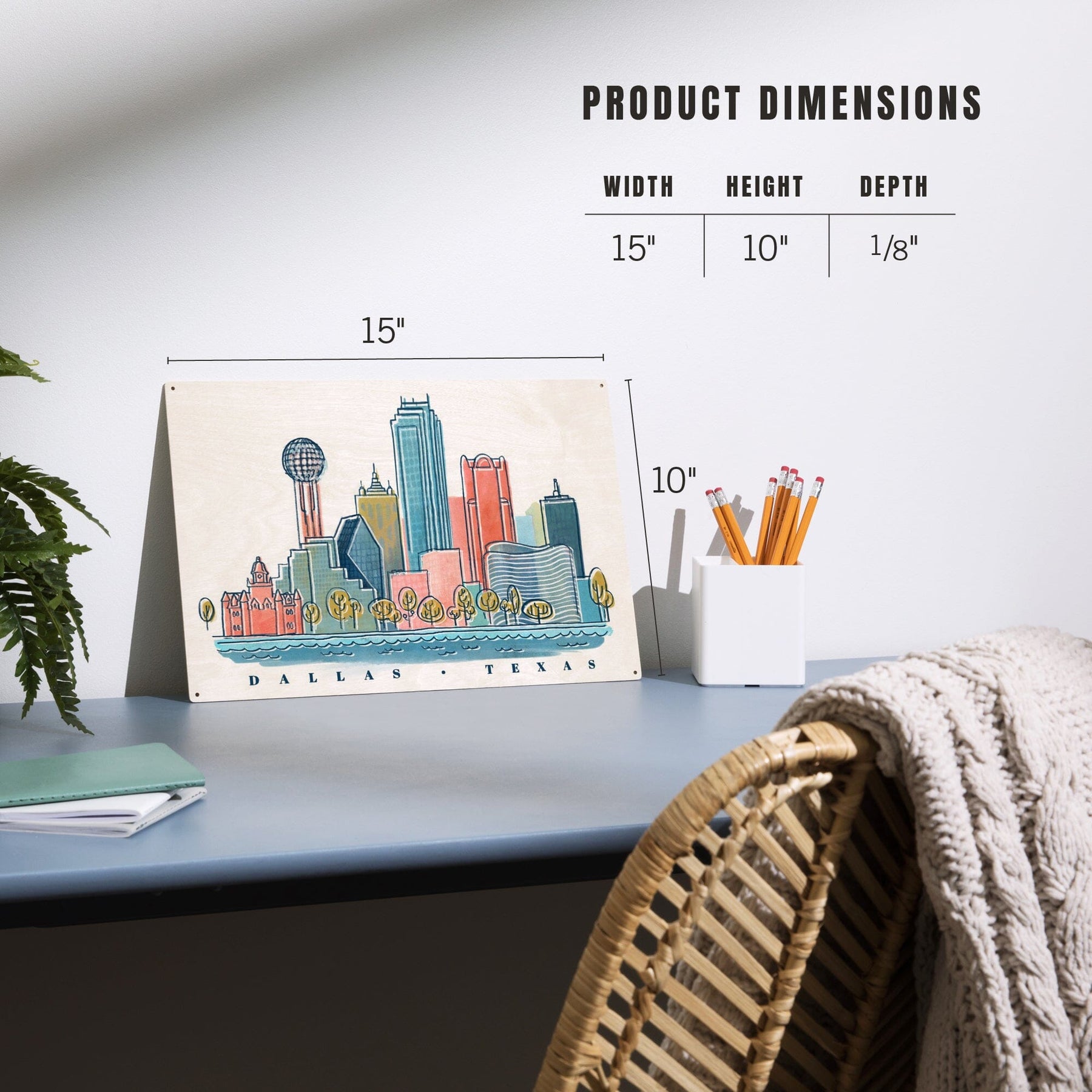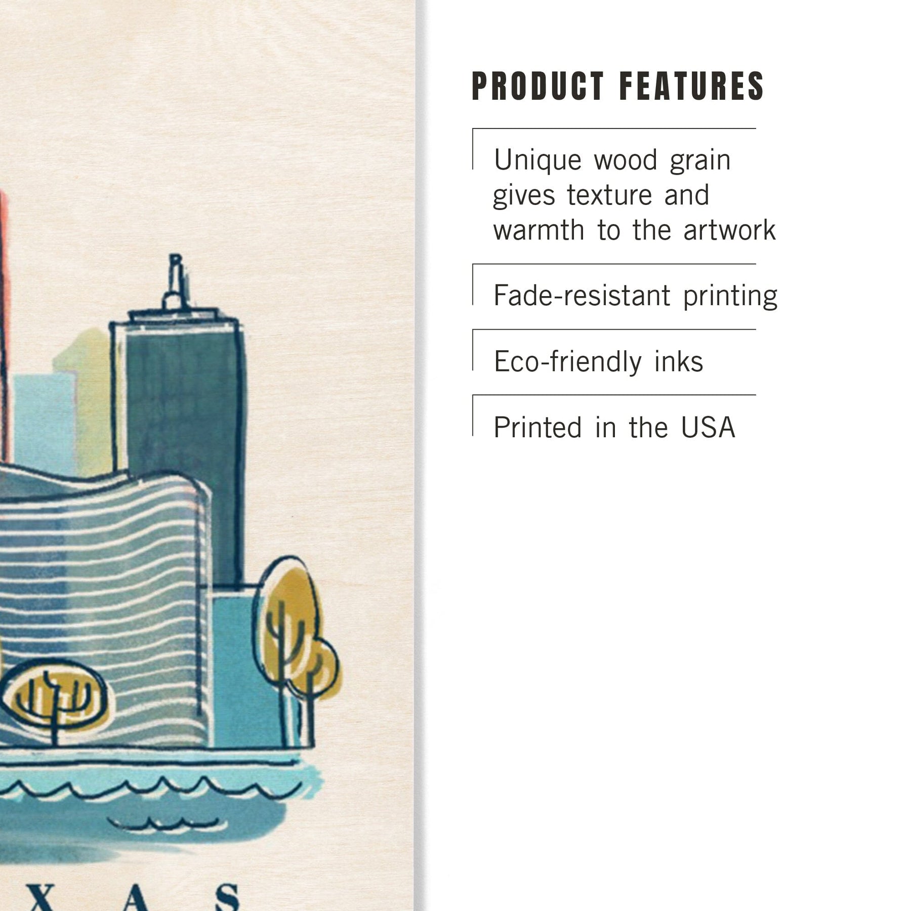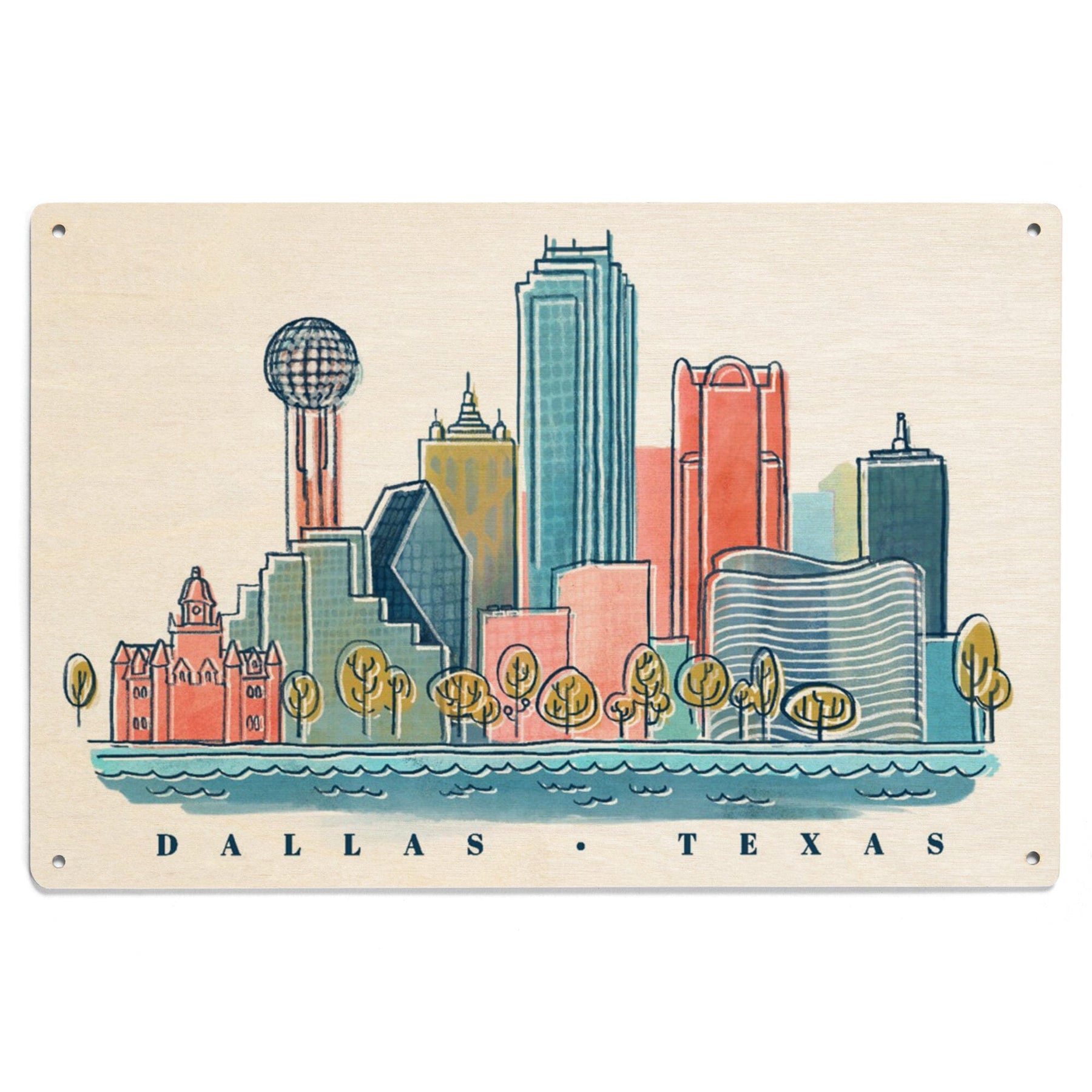 Dallas, Texas, Whimsy City Collection, Skyline, Wood Signs and Postcards - Lantern Press