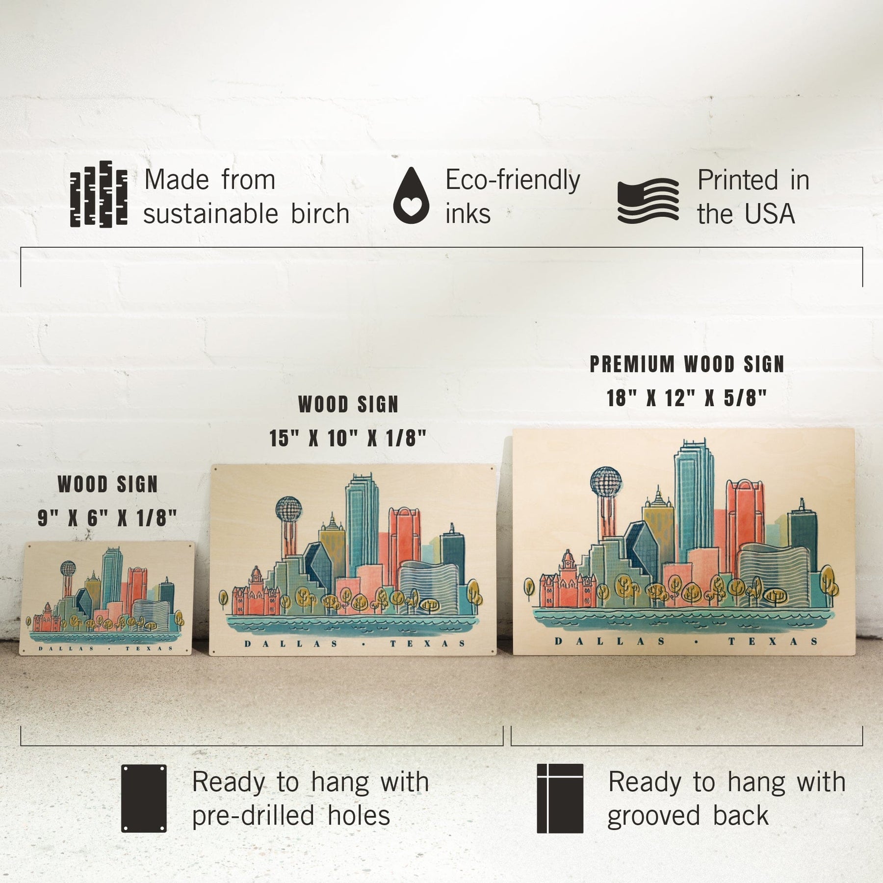 Dallas, Texas, Whimsy City Collection, Skyline, Wood Signs and Postcards