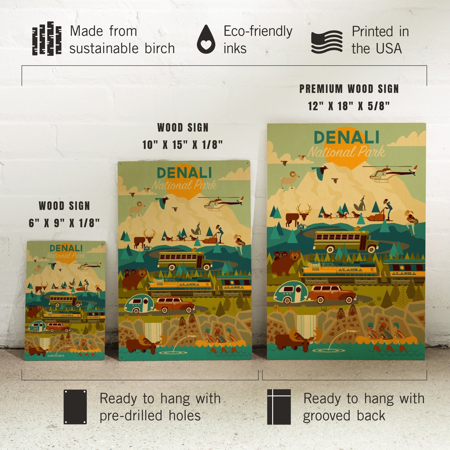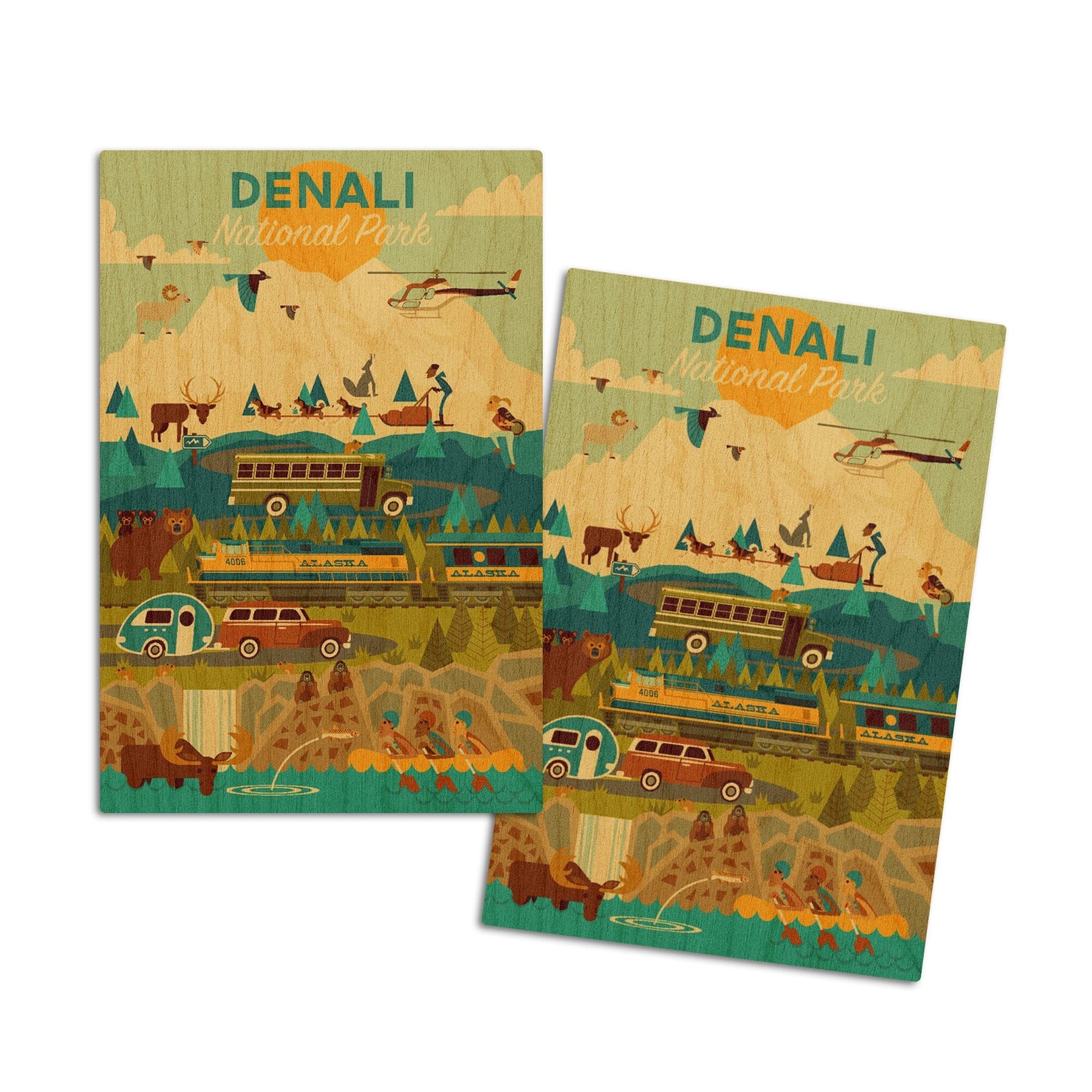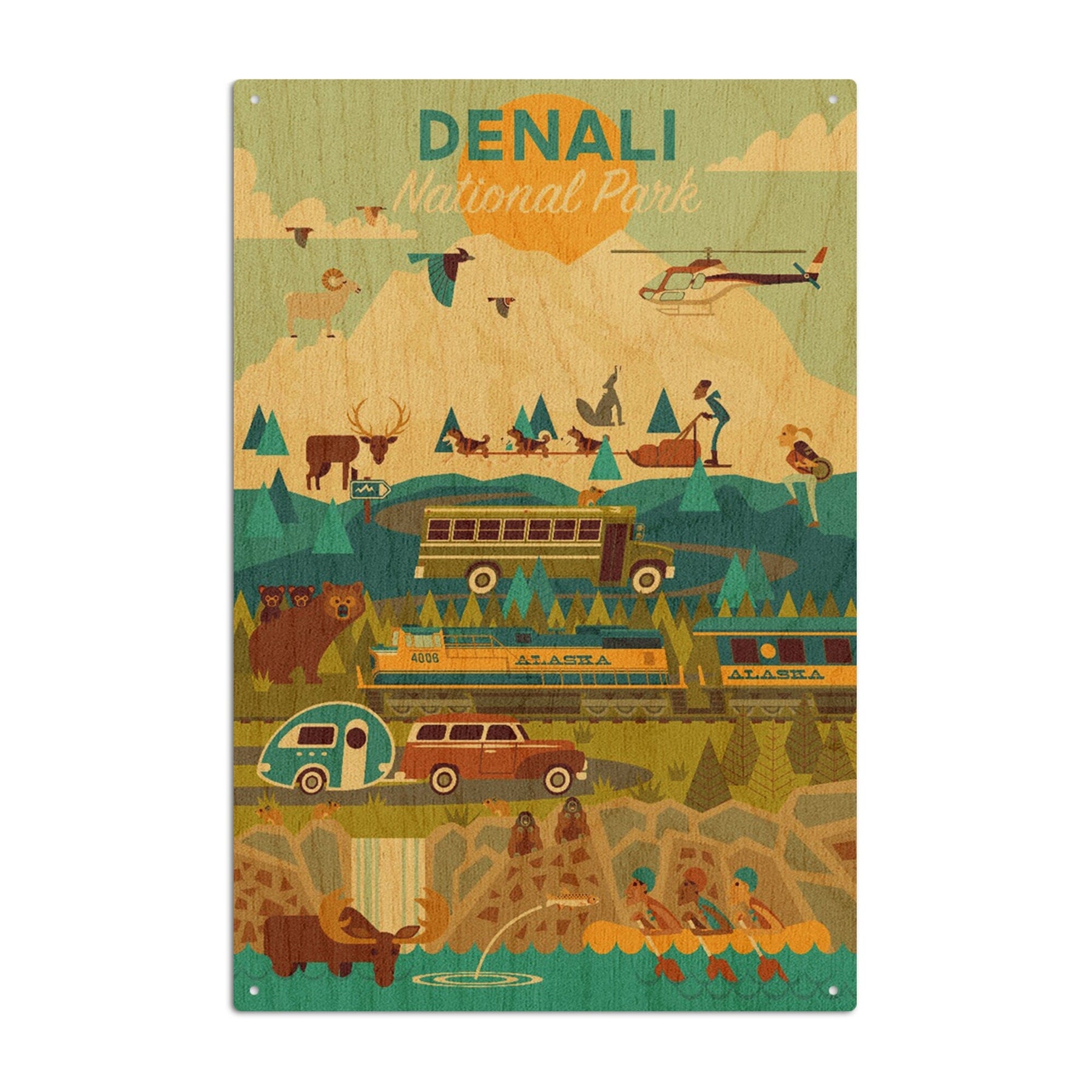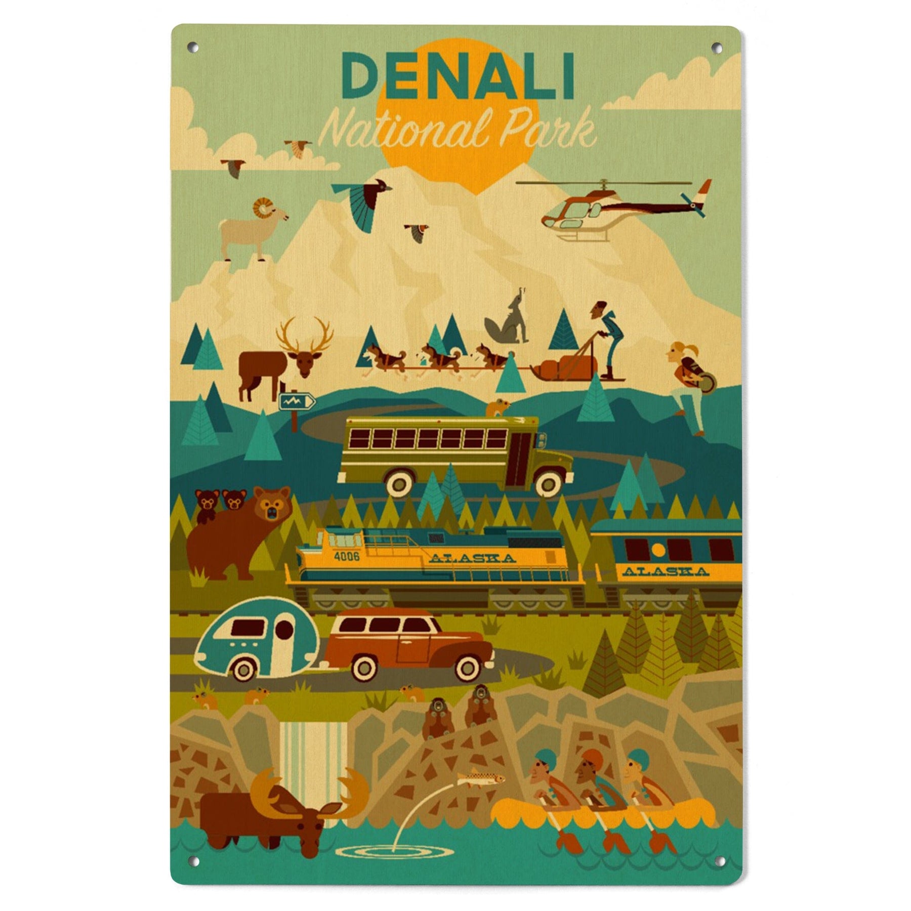 Denali National Park, Geometric National Park Series, Lantern Press Artwork, Wood Signs and Postcards