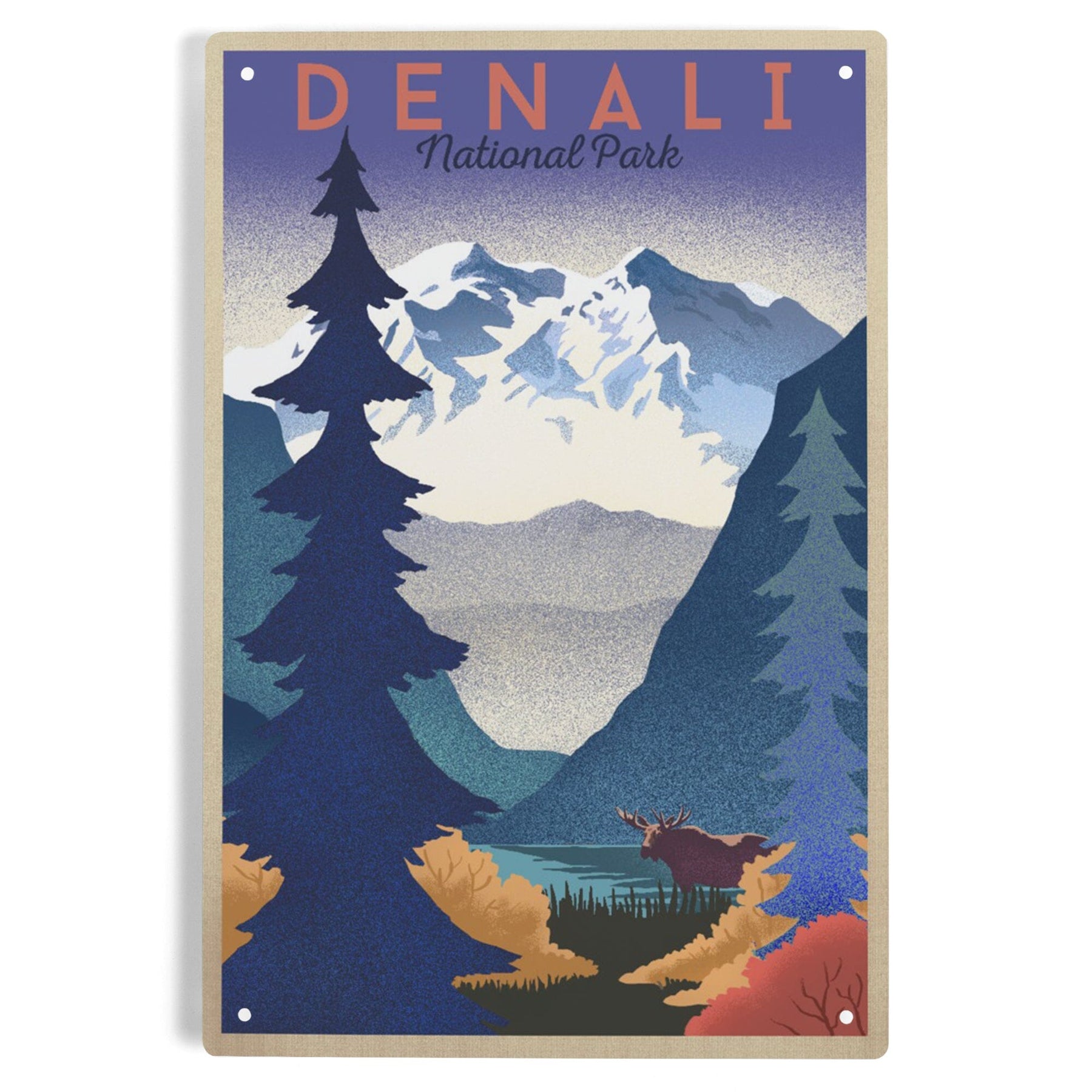 Denali National Park, Mountain Scene, Lithograph, Metal Signs