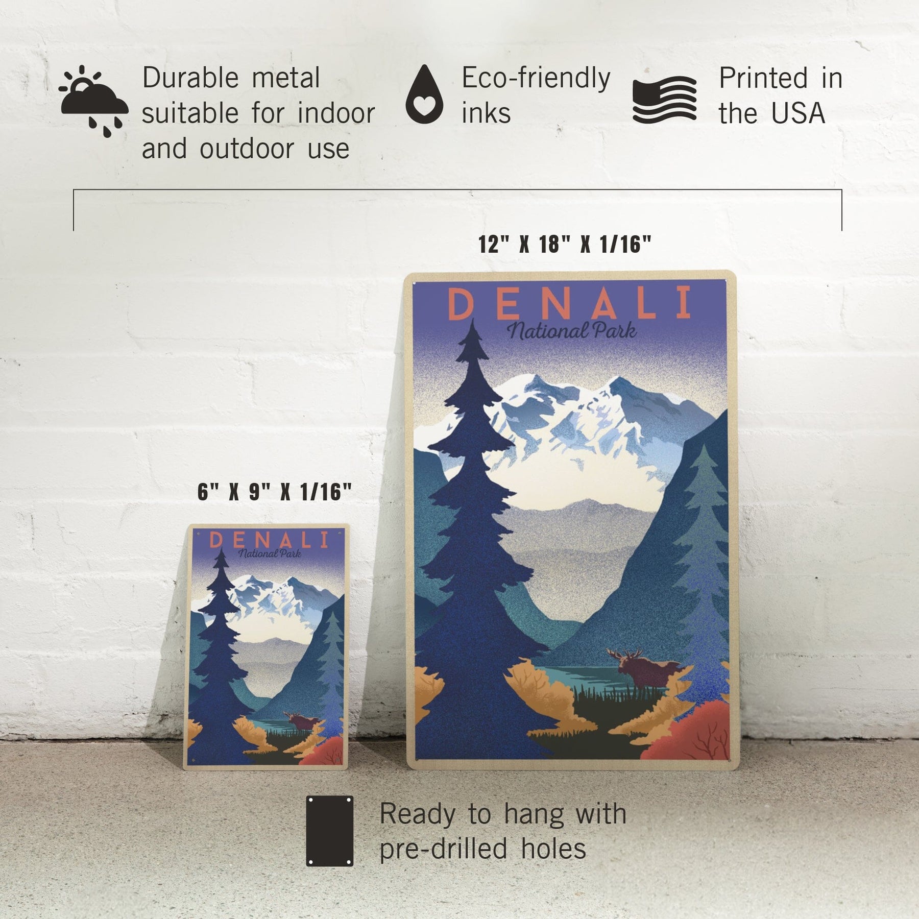 Denali National Park, Mountain Scene, Lithograph, Metal Signs Metal Lantern Press